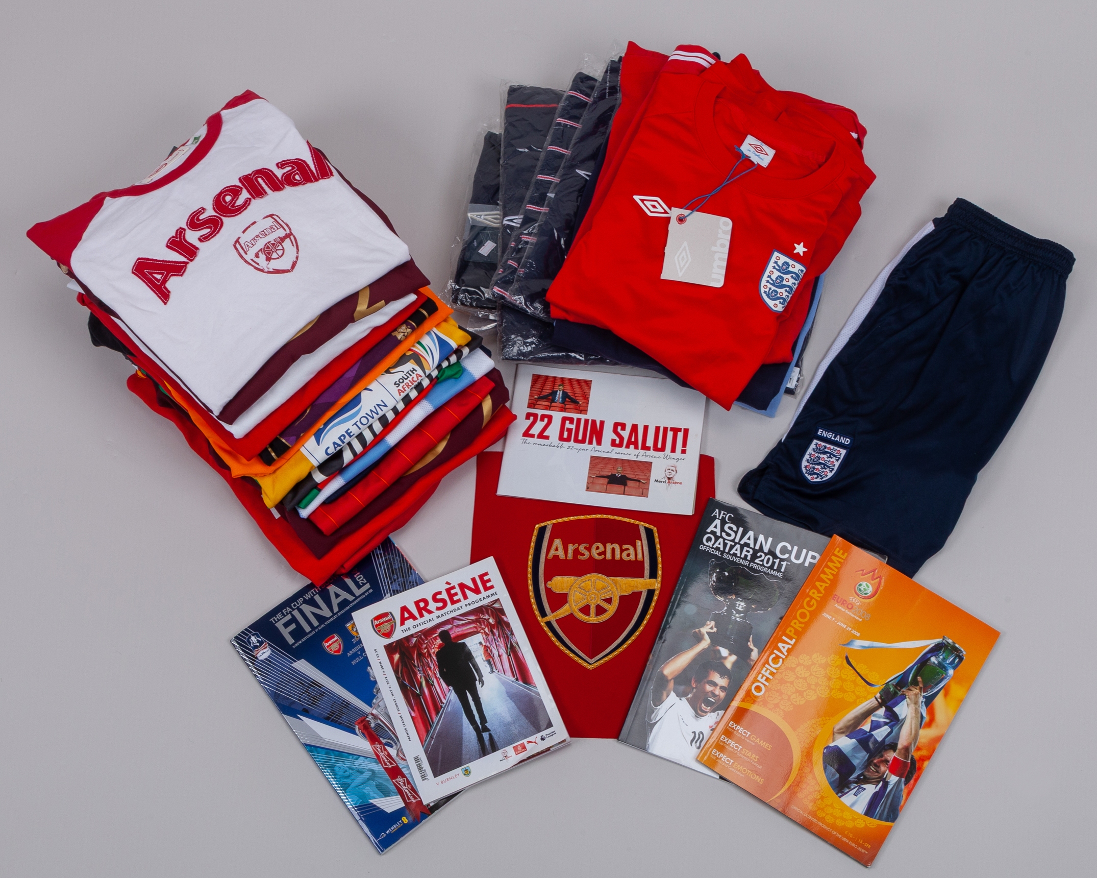 Large David Dein collection of England, Arsenal and International football shirts and ties, with scarves and programmes