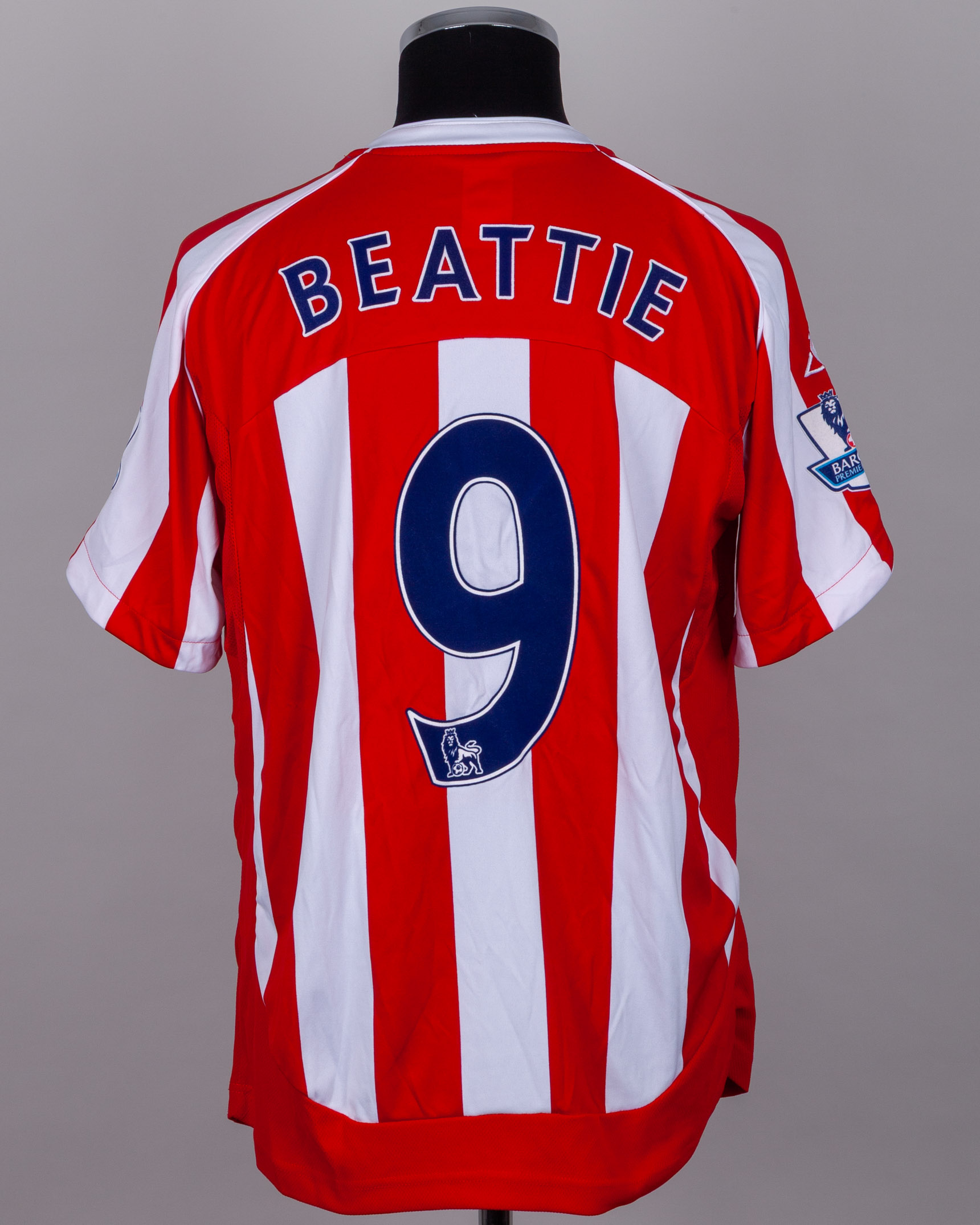 James Beattie red and white No.9 Stoke City short-sleeved shirt, 2009-10