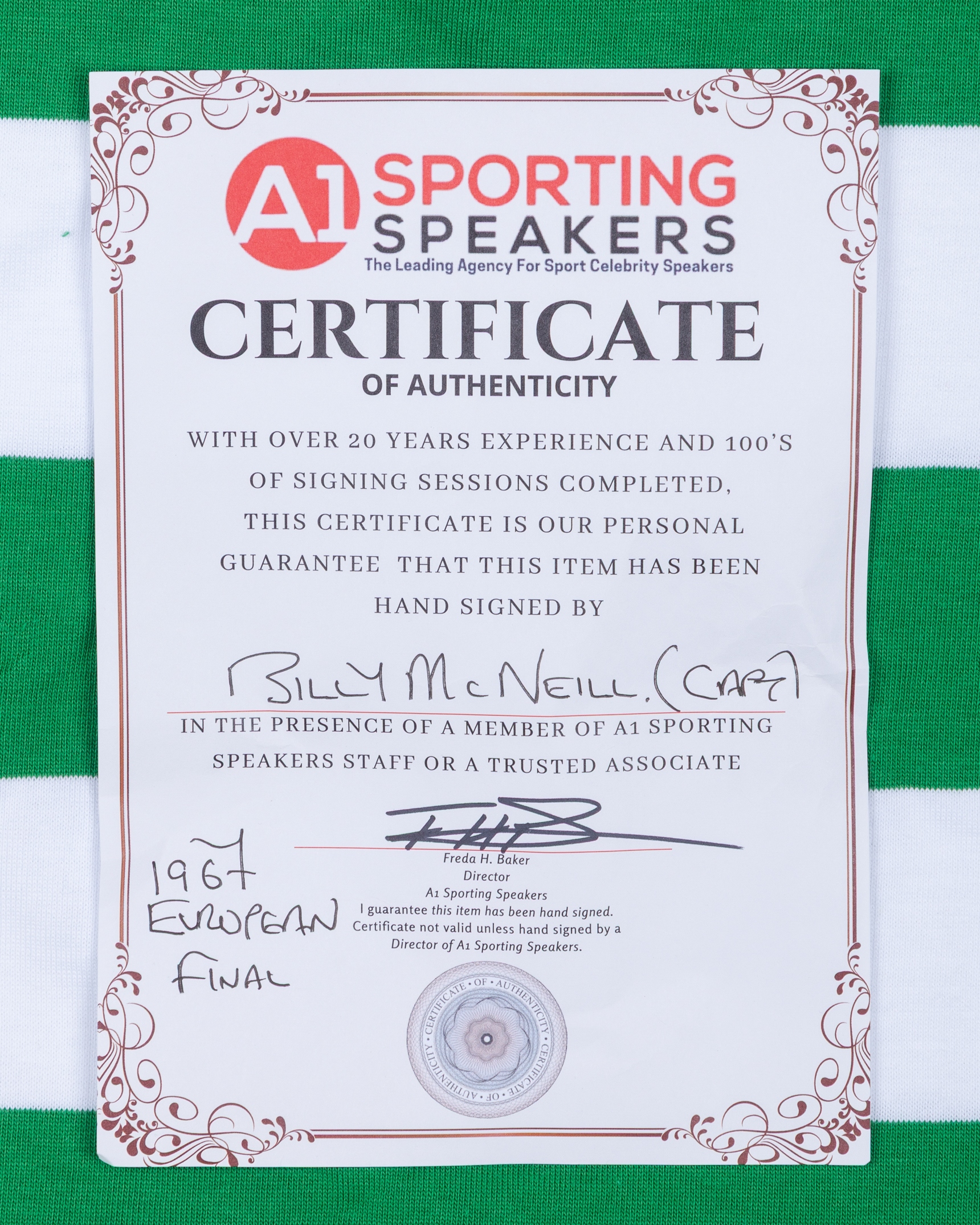 TOFFS replica autographed Celtic shirt, autographed by Billy McNeill with A1 COA