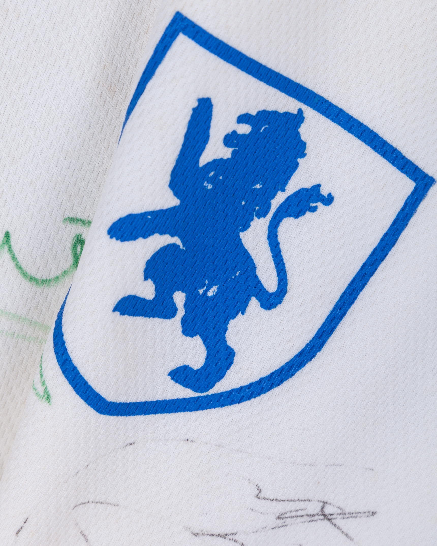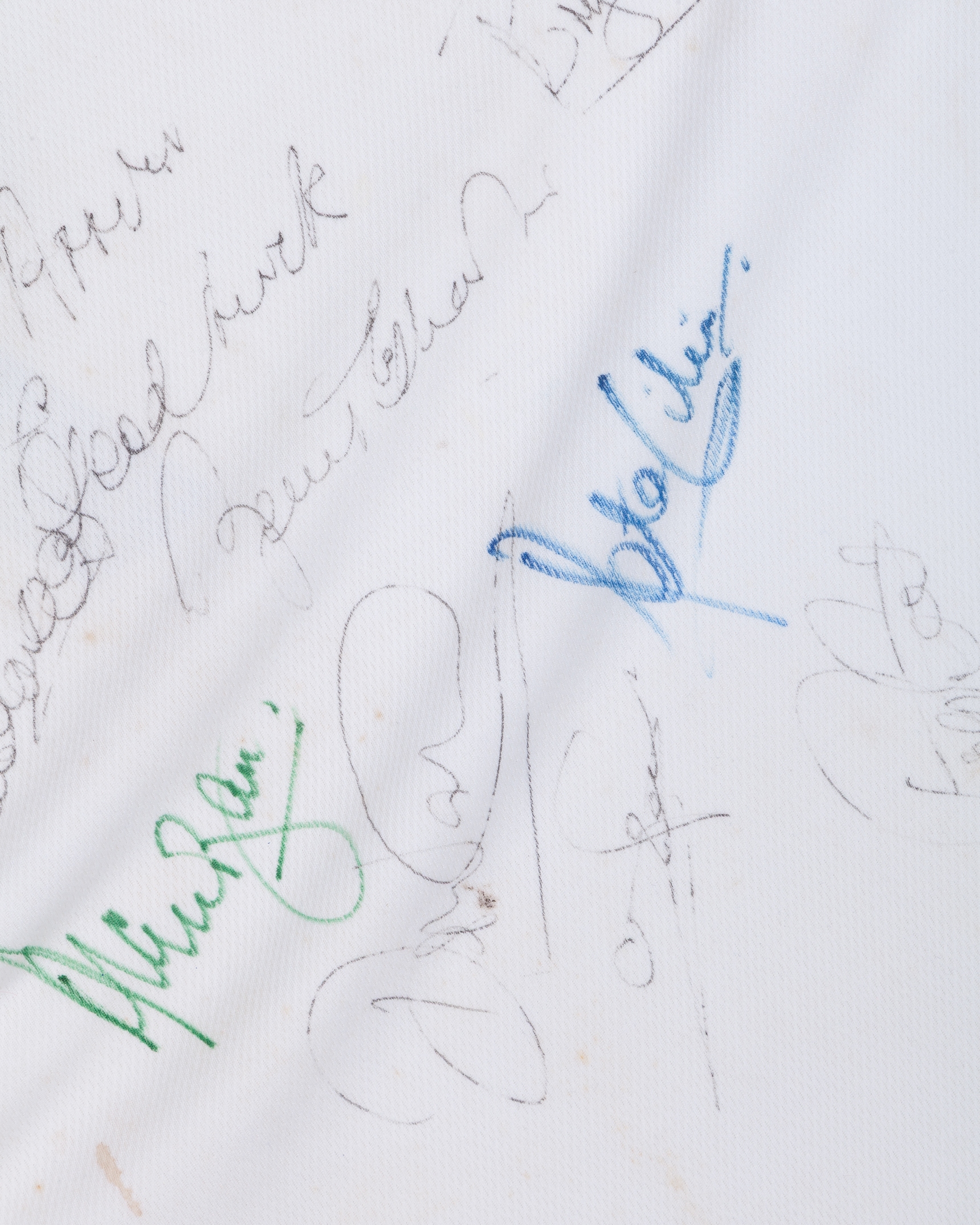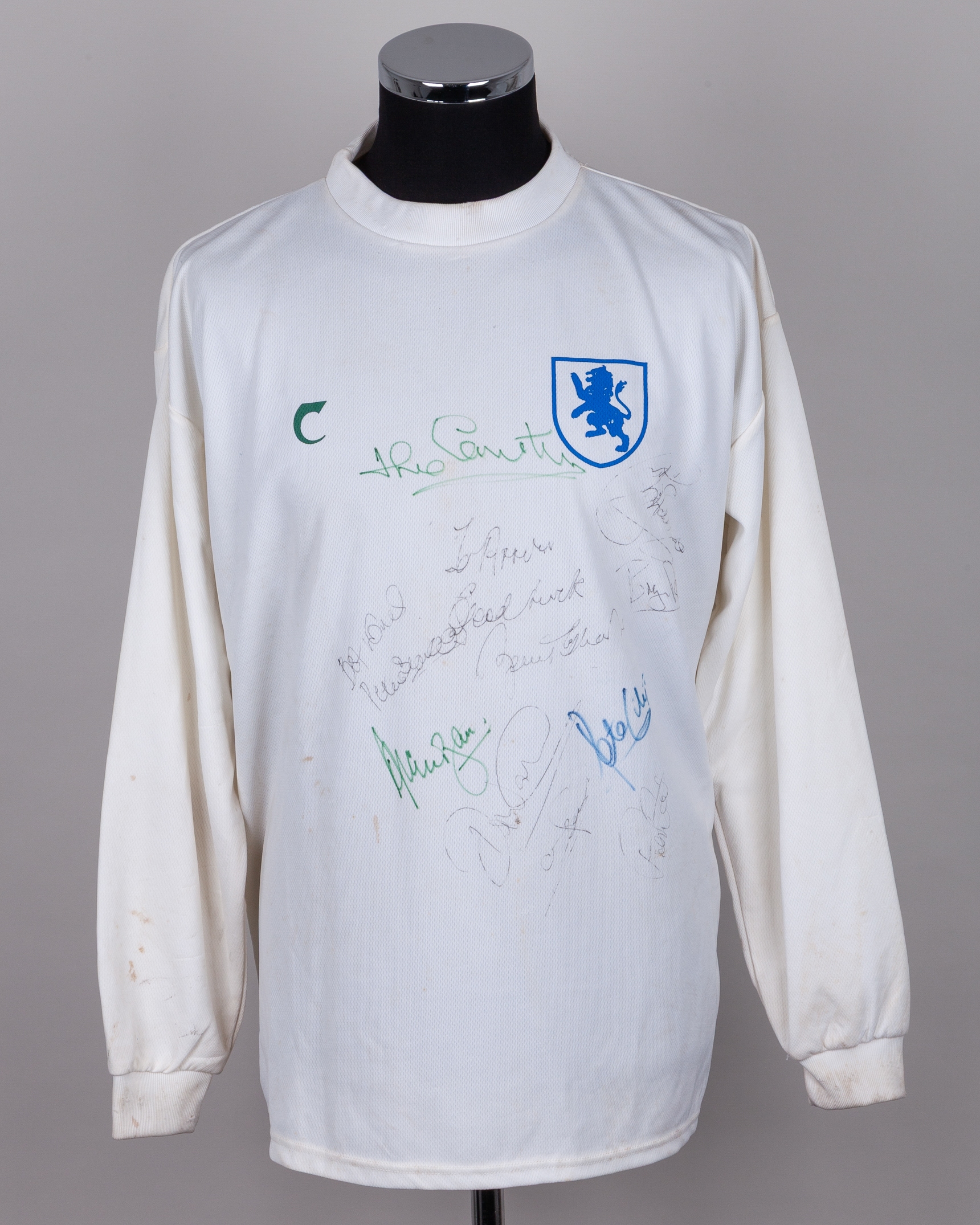 Bobby Charlton white No.9 Carlsberg Old Lions autographed long-sleeved shirt
