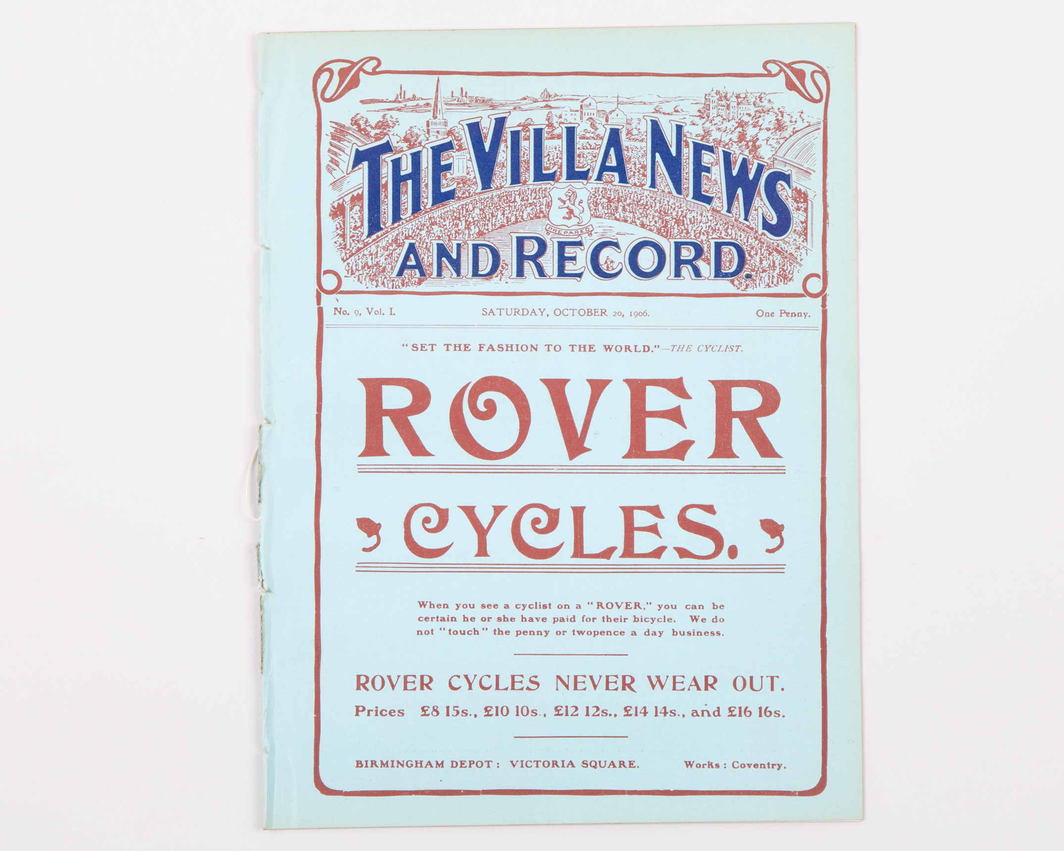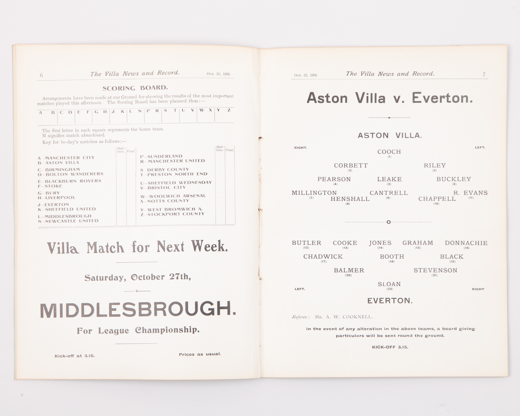 Aston Villa Reserves v. Everton Reserves, match programme, 20th October 1906, ex bound volume