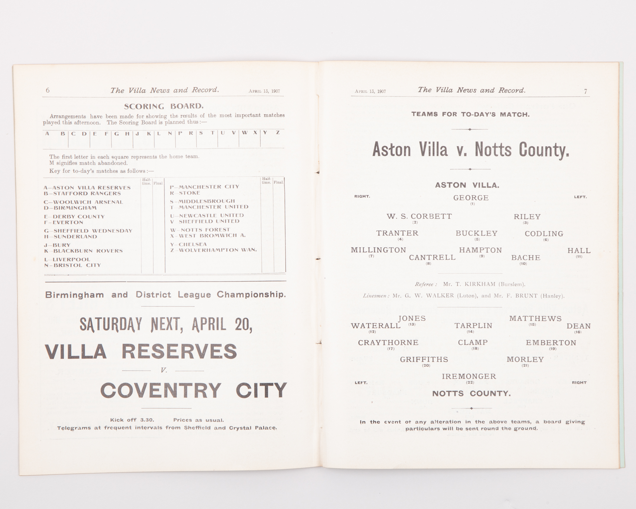 Aston Villa v. Notts County, match programme, 13th April 1907