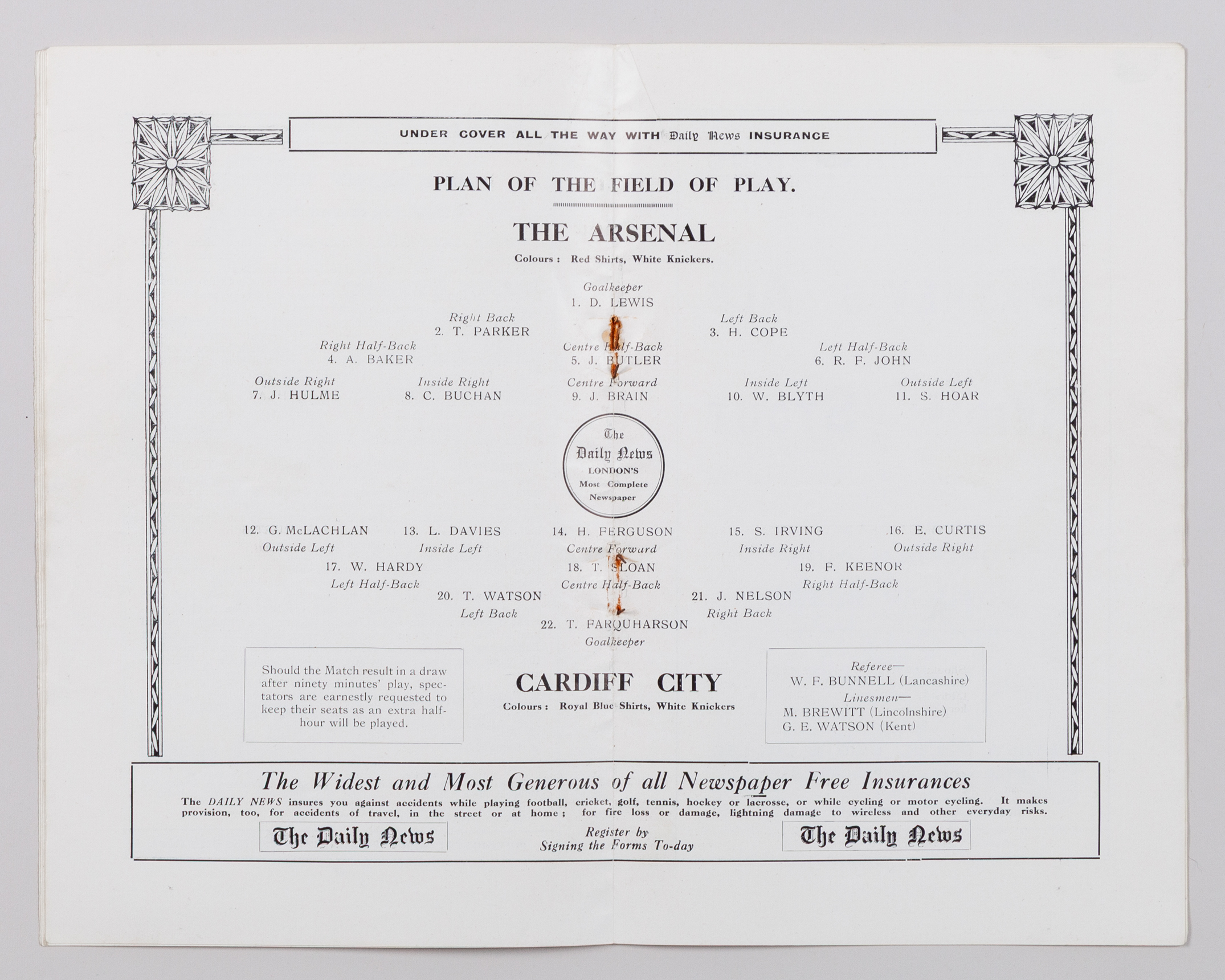 Arsenal v. Cardiff City 1927 F.A.Cup final match programme, 23rd April 1927