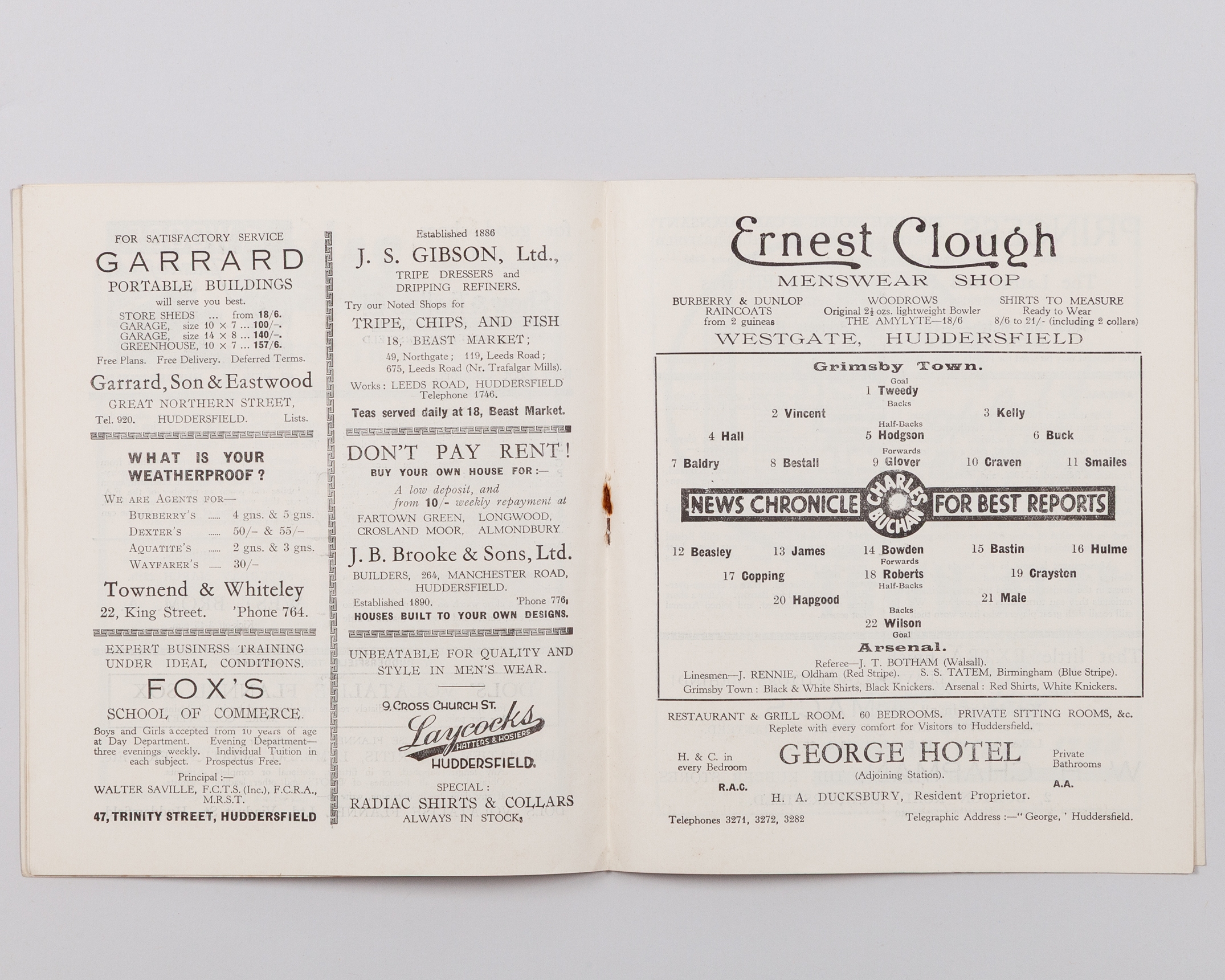 Arsenal v Grimsby Town F.A. Cup semi-final match programme, 21st March 1936, match played at Huddersfield Town's Leeds Road ground, some foxing