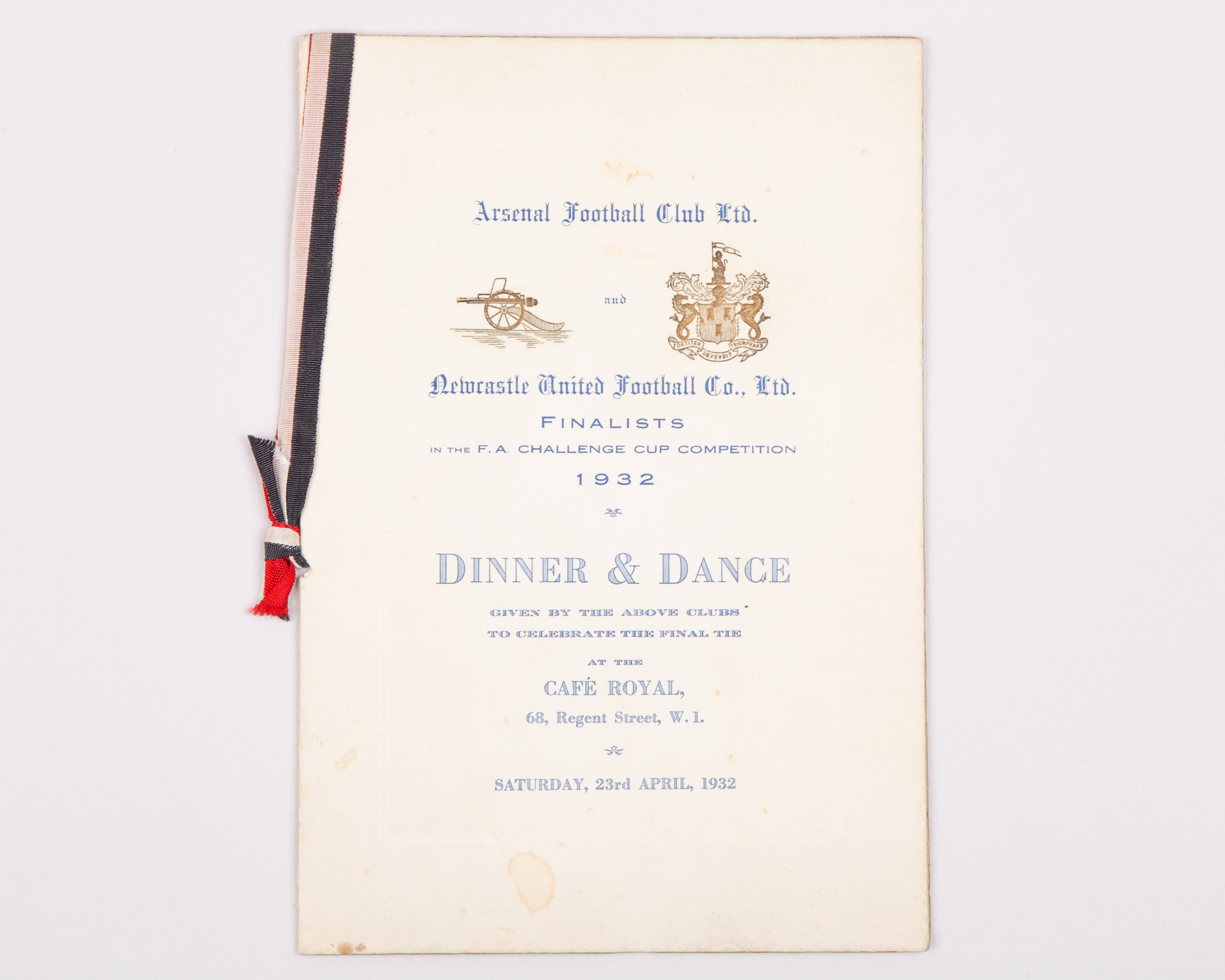 1932 Arsenal and Newcastle United F.A.Cup Final VIP Dinner & Dance menu card