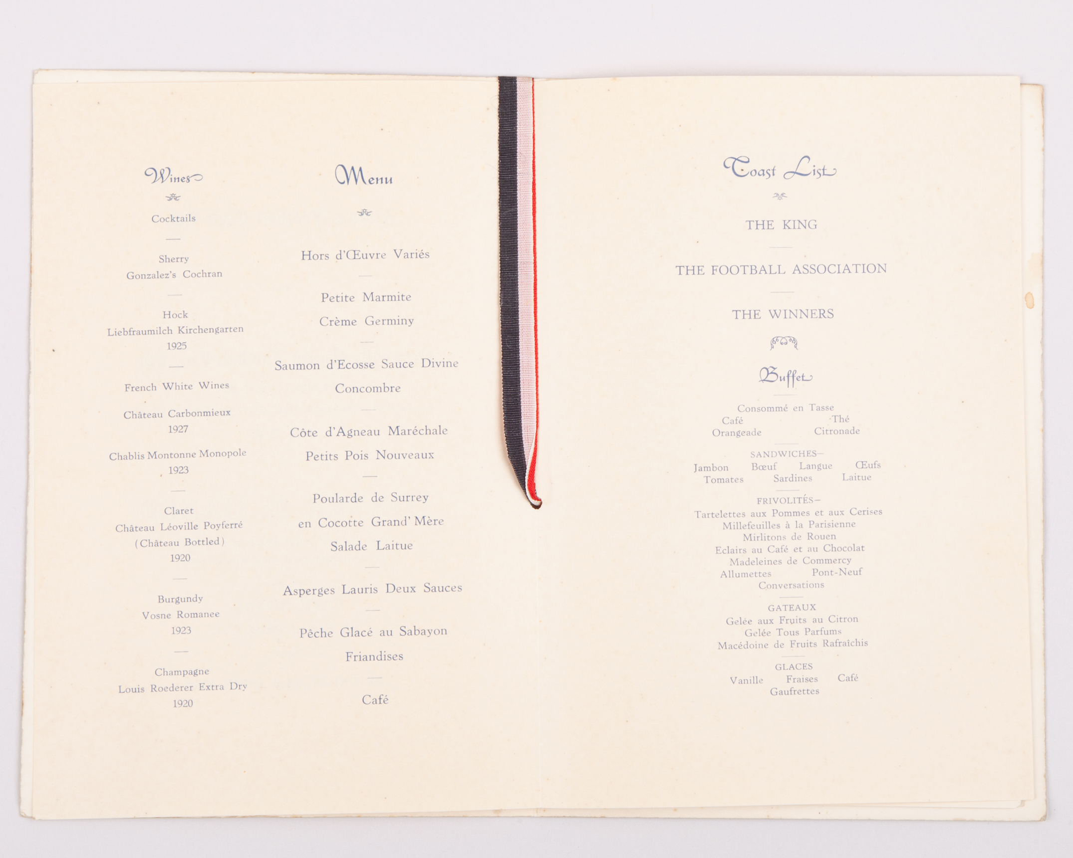 1932 Arsenal and Newcastle United F.A.Cup Final VIP Dinner & Dance menu card, the inside cover autographed by Alex James, held at Cafe Royal, 23rd April 1932
