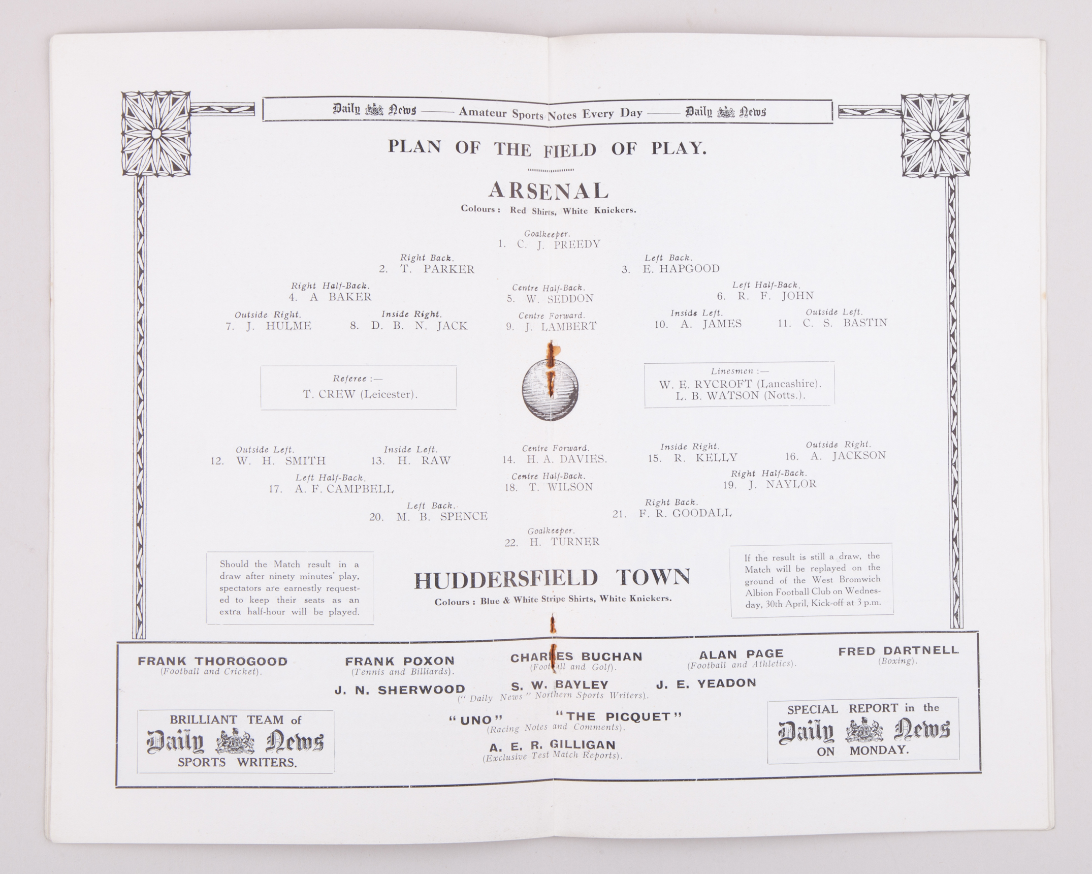 Arsenal v. Huddersfield Town FA Cup Final programme 26th April 1930
