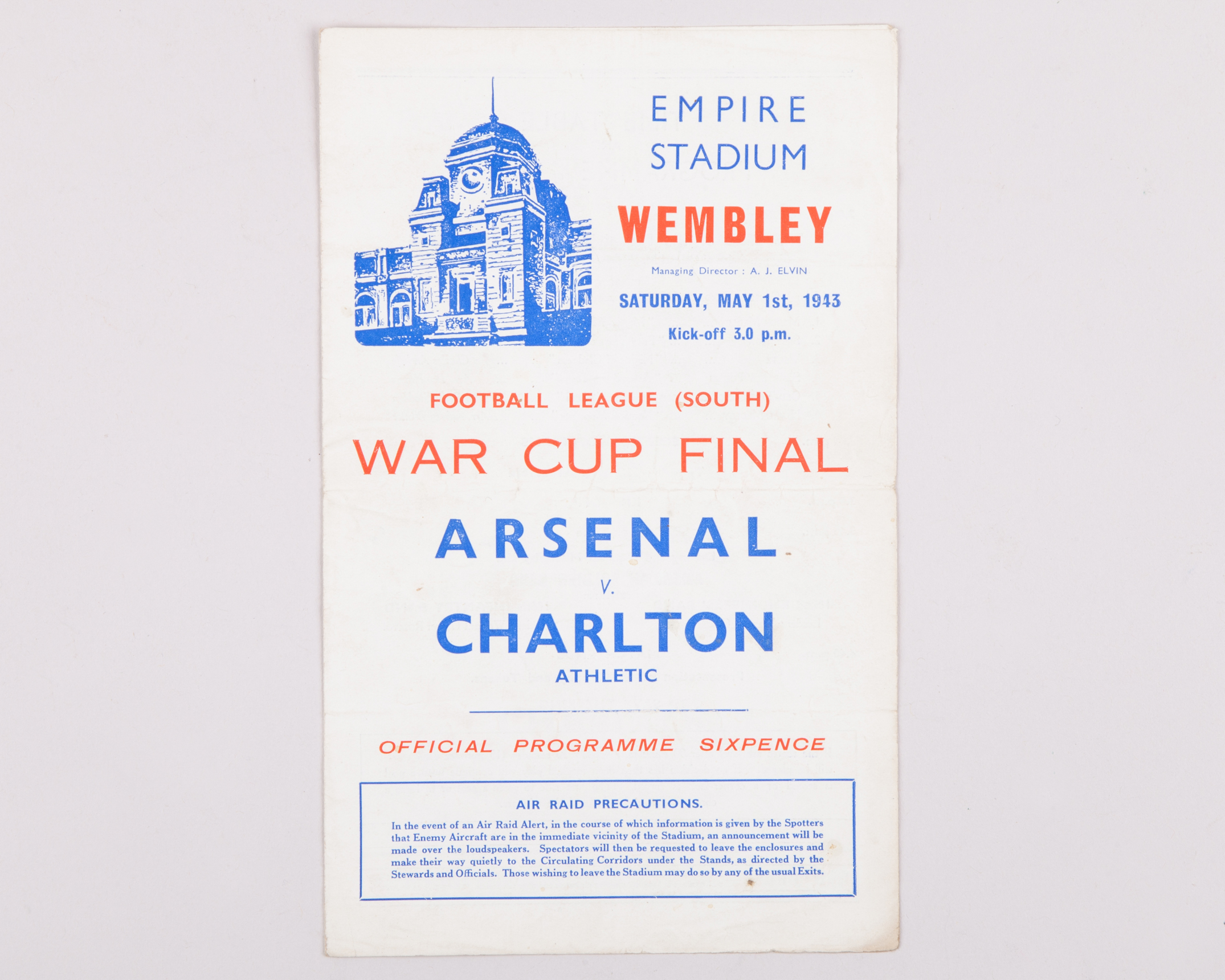 Arsenal v. Charlton Athletic War Cup Final programme 1st May 1943, with fold creases and some staining