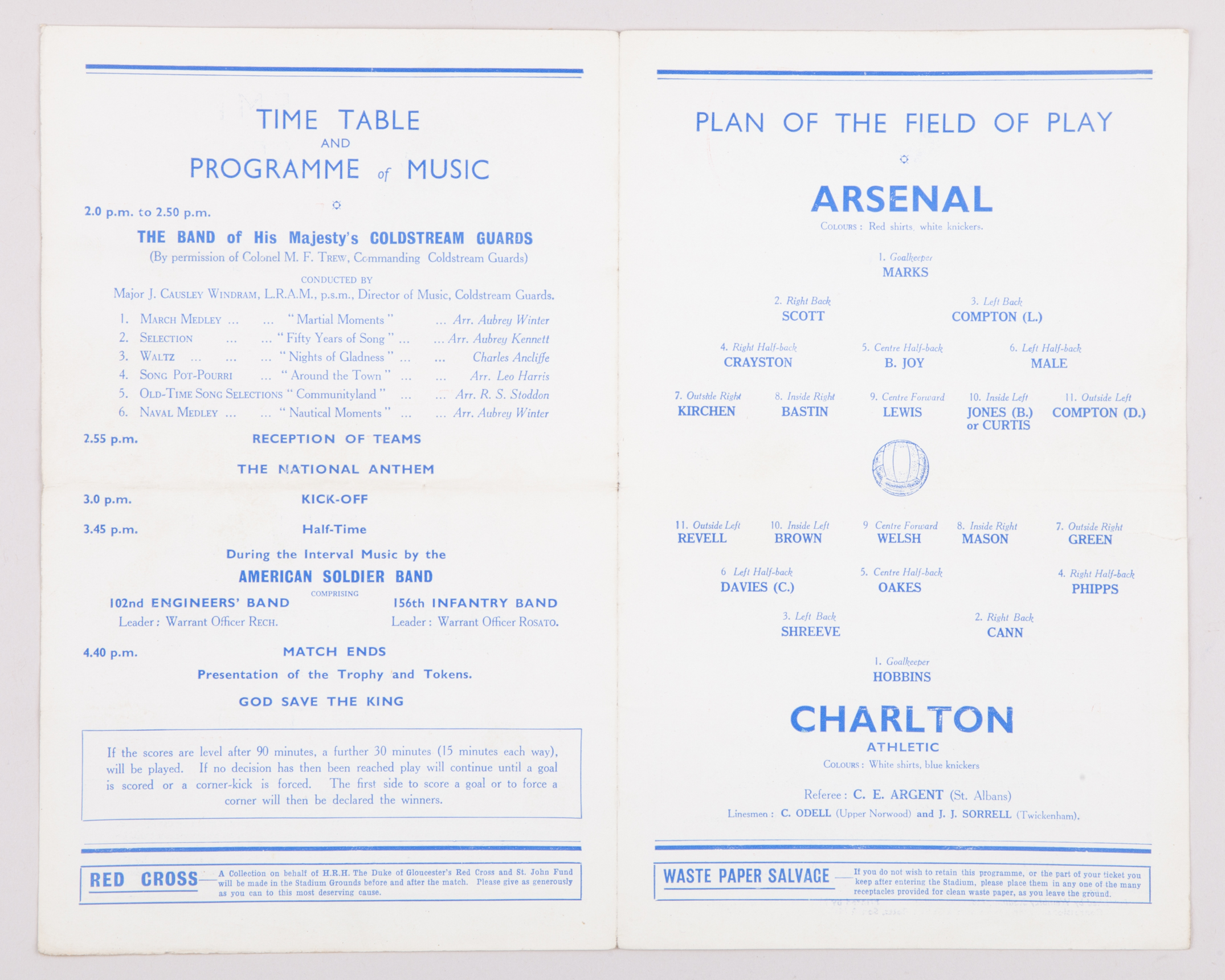 Arsenal v. Charlton Athletic War Cup Final programme 1st May 1943