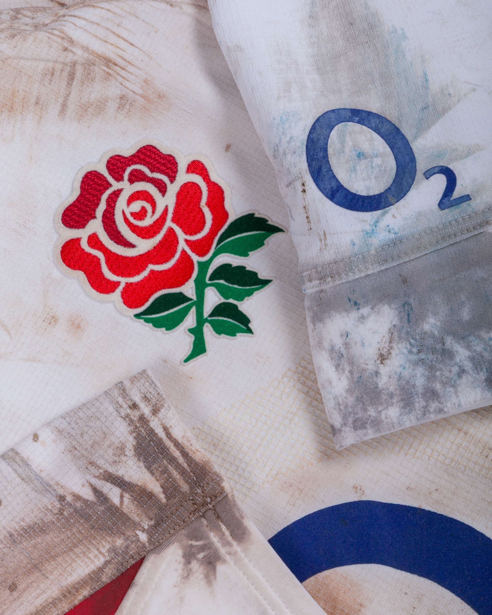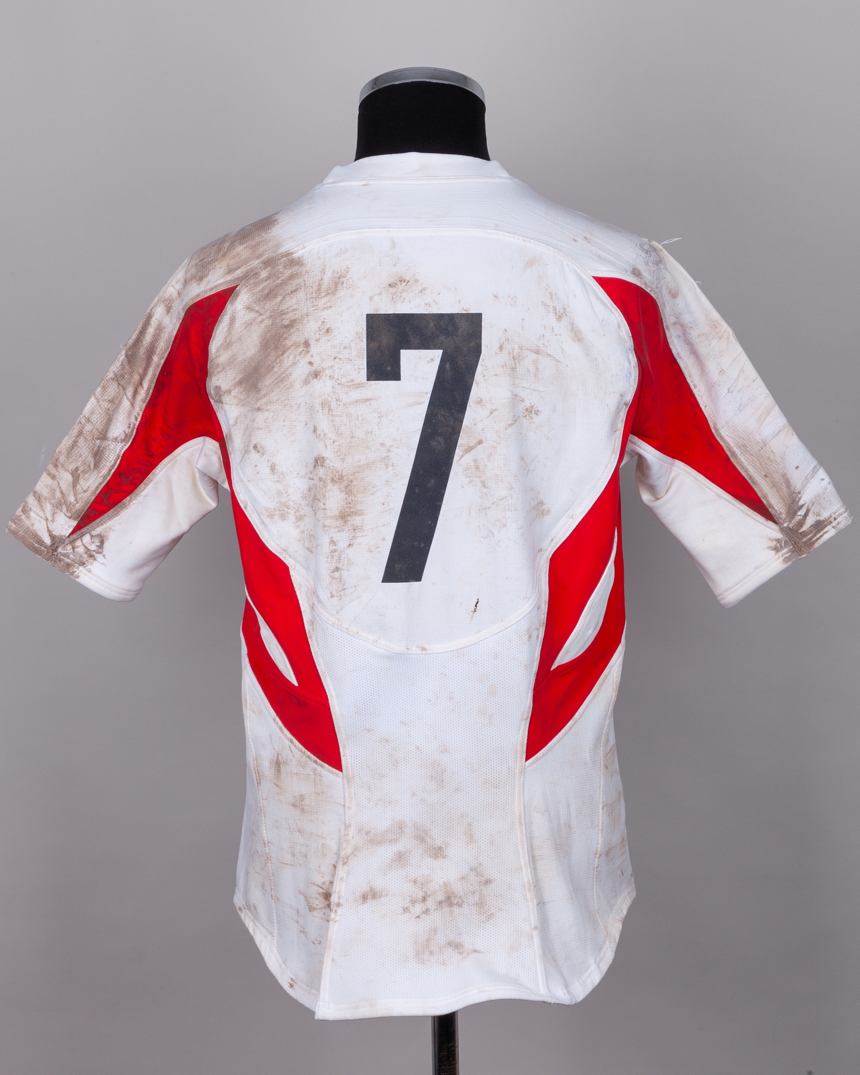 White and red No.7 England rugby union short-sleeved shirt, 2005-06
