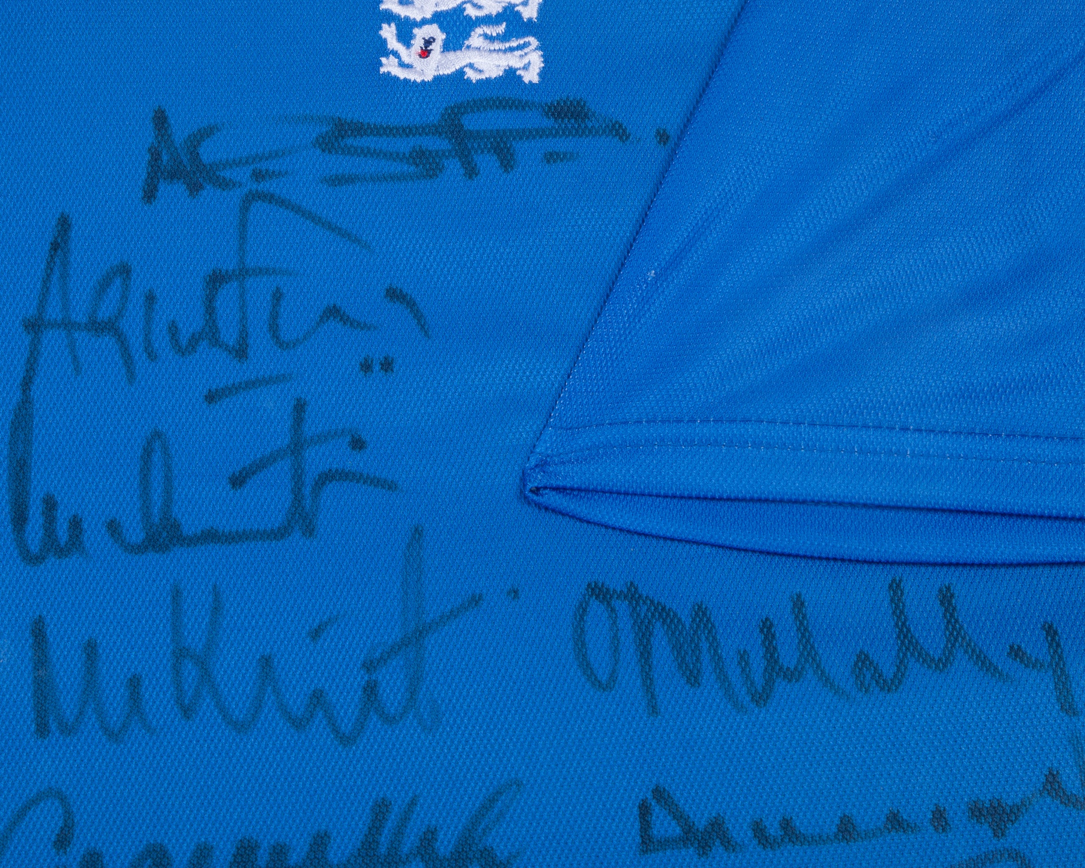 Blue and red England ODI Cricket autographed short-sleeved shirt, 1999
