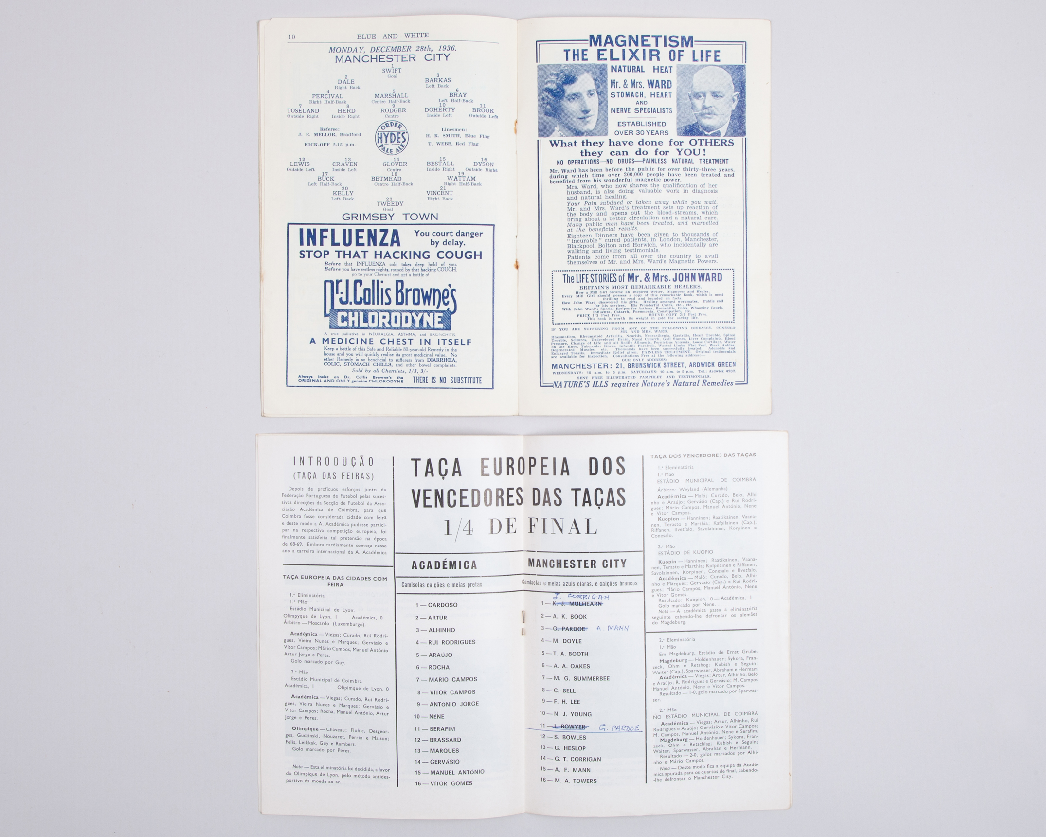Academica v. Manchester City, Cup Winners Cup quarter-final match programme, 1970
