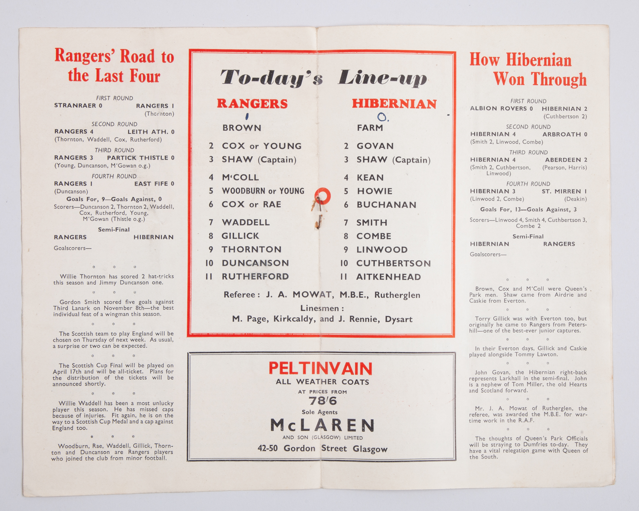 Rangers v. Hibernian Scottish Cup Semi-Final, match programme, 27th March 1948, match played at Hampden Park