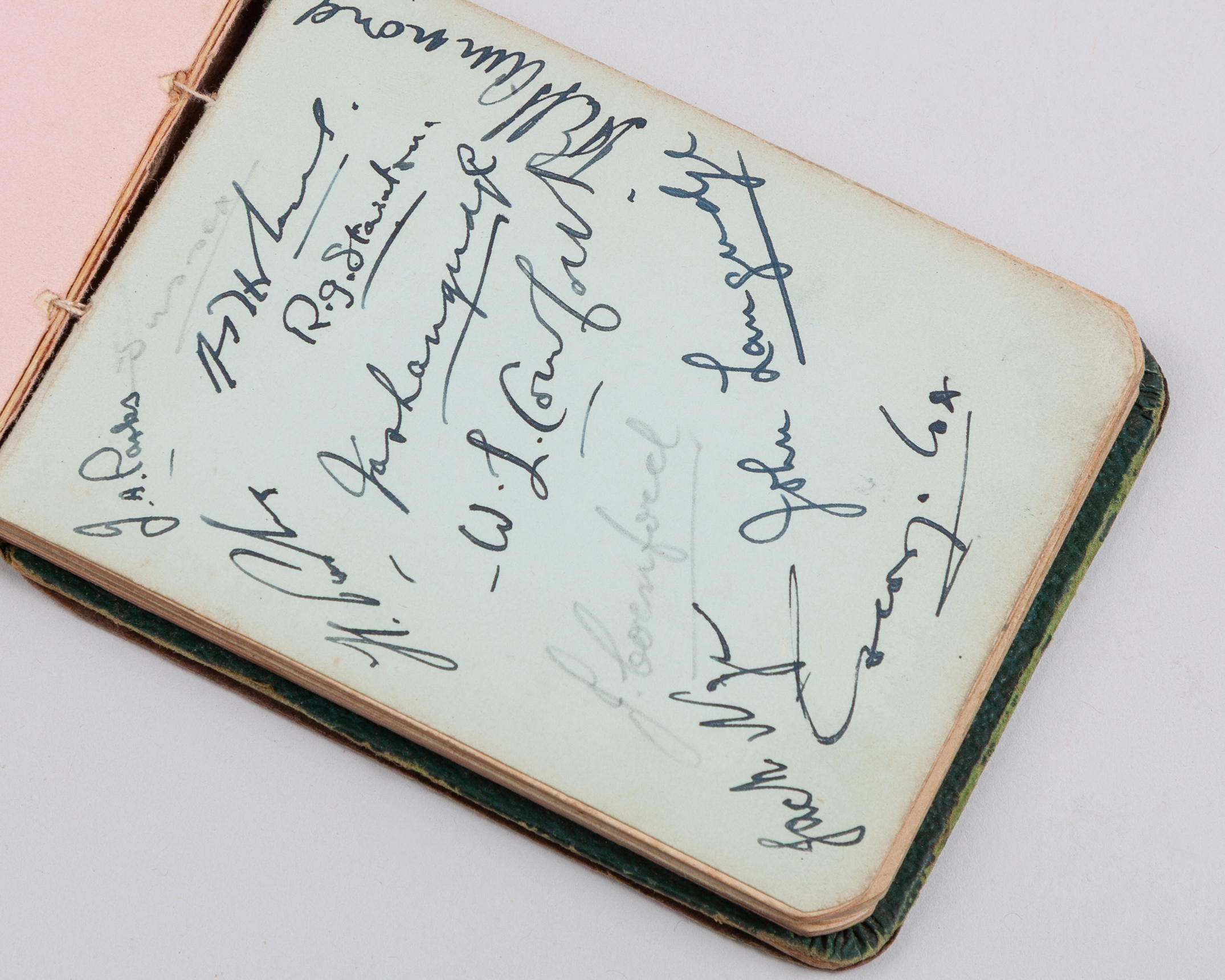 An interesting collection of cricket autographs from 1920s to 1950s including Clay, Valentine, Washbrook, Oldfield, J.H. Parks, James and John Langridge, Hammond, Cyril Turner, Don Bradman etc (full list available please contact department)