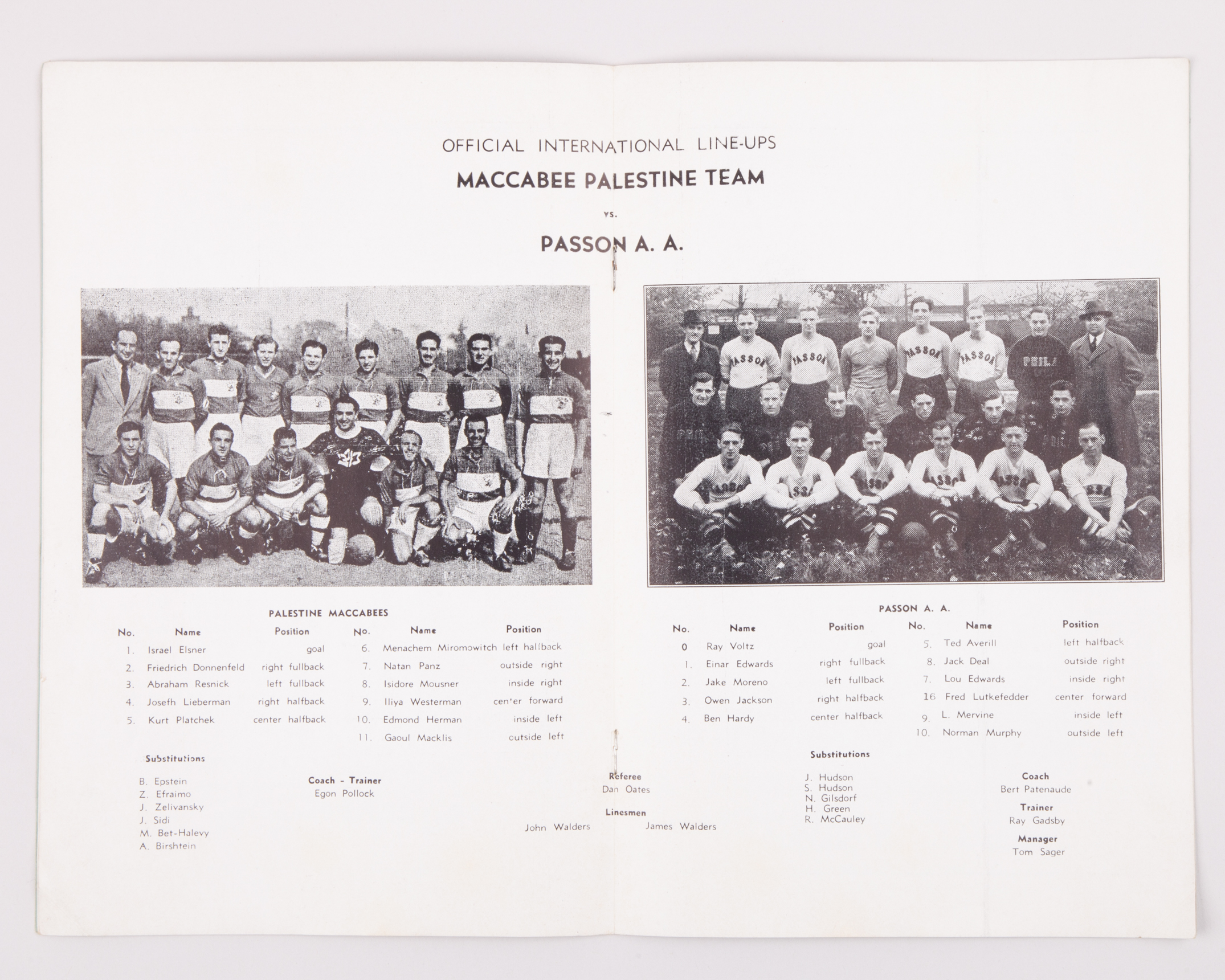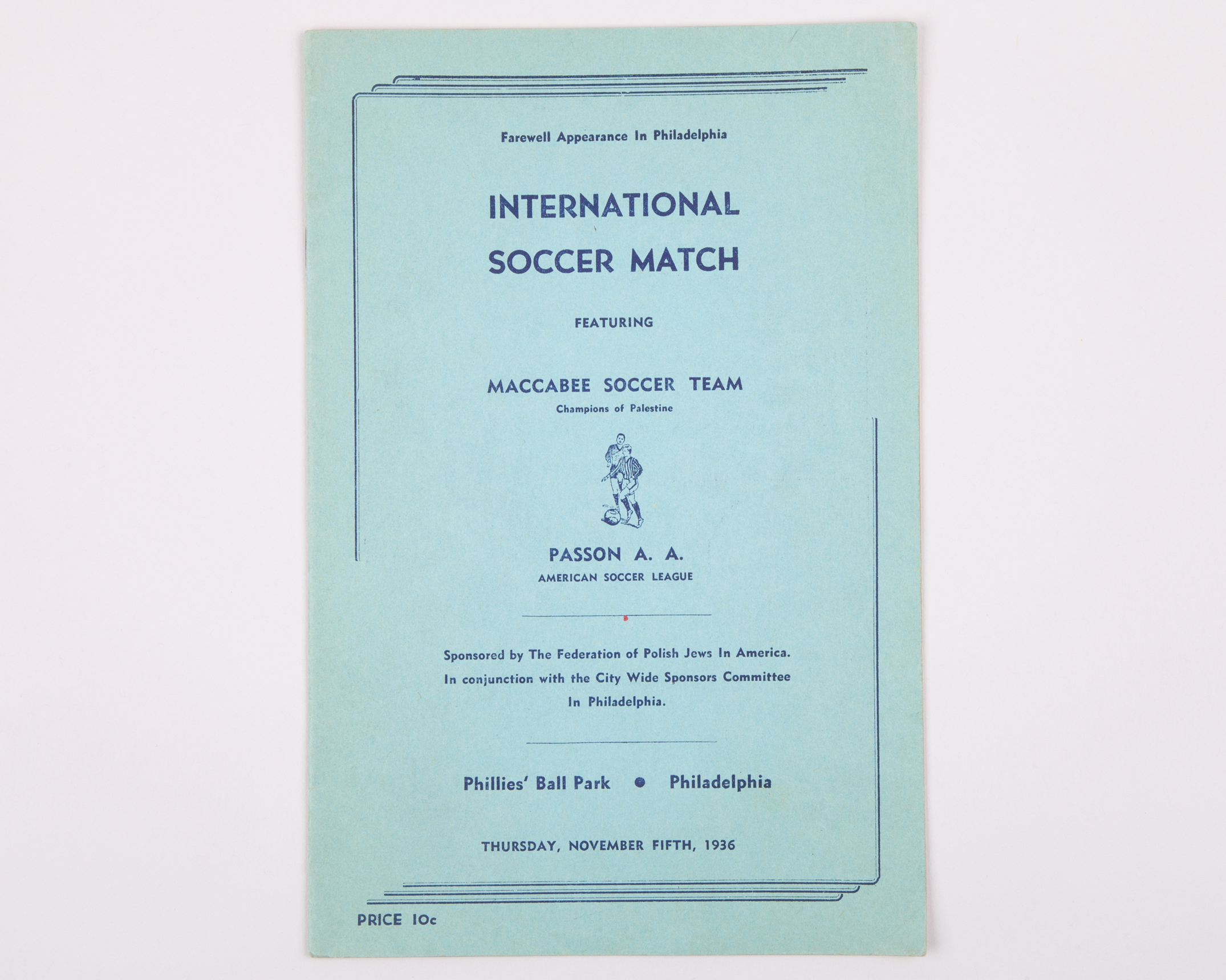 Maccabee v. Passon A.A. American Tour match programme, 5th November 1936, played at Phillies' Ball Park, Maccabee played 12 matches during the tour, Passon was in it's first year of in the 2nd iteration of American Soccer League