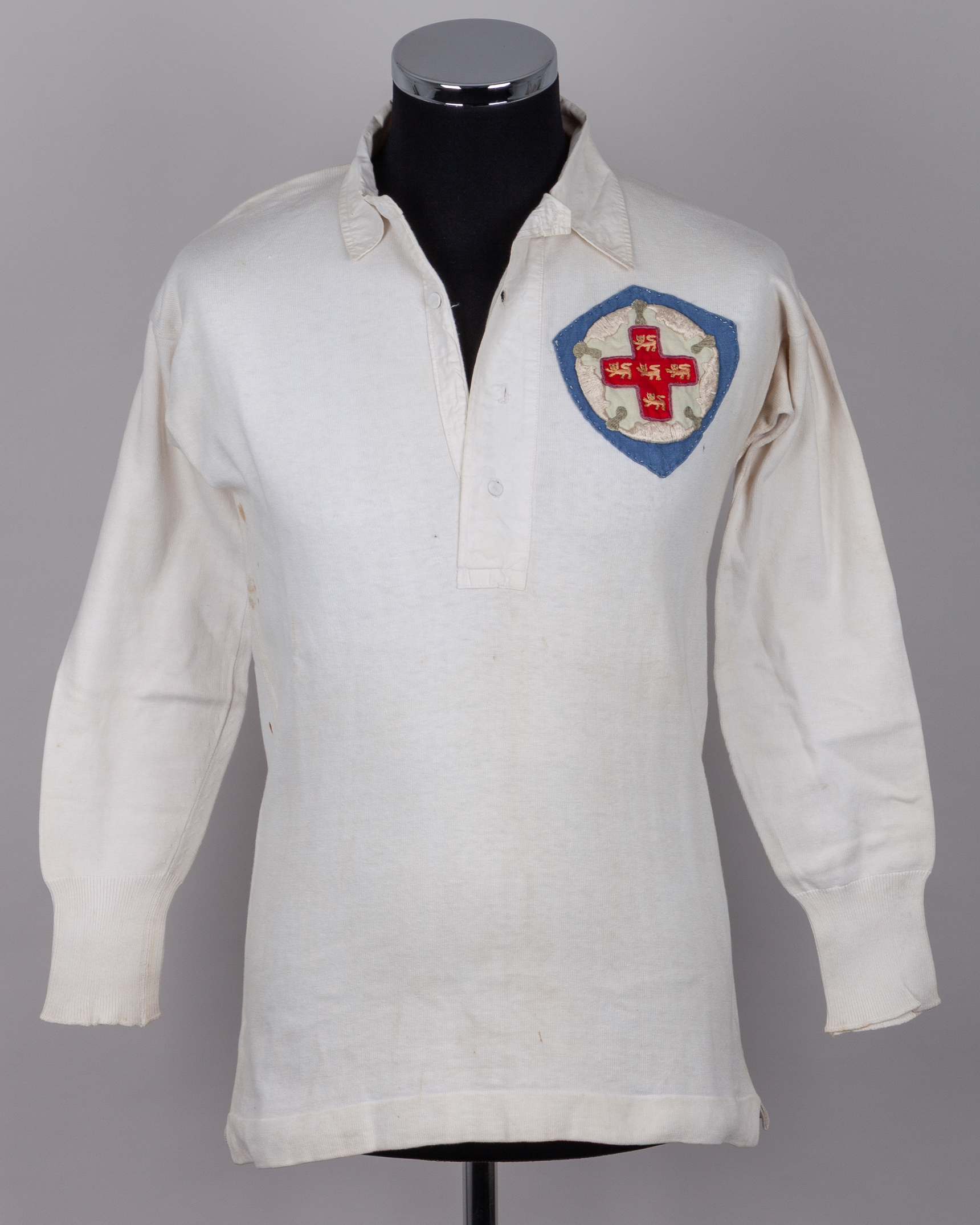 A very rare white Manningham FC long-sleeved rugby league shirt, c.1900