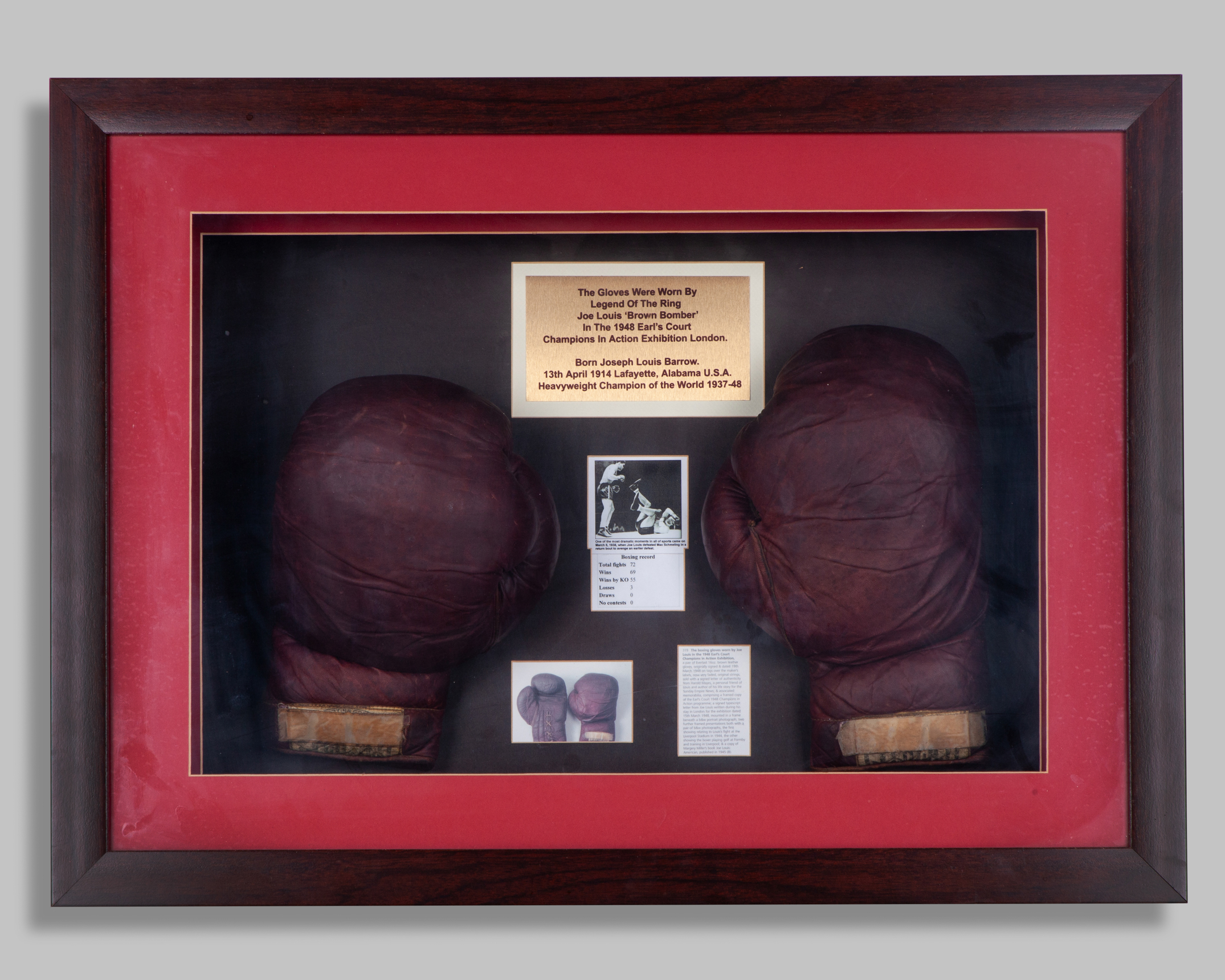 Joe Louis exhibition worn Everlast gloves Earls Court London, 1948