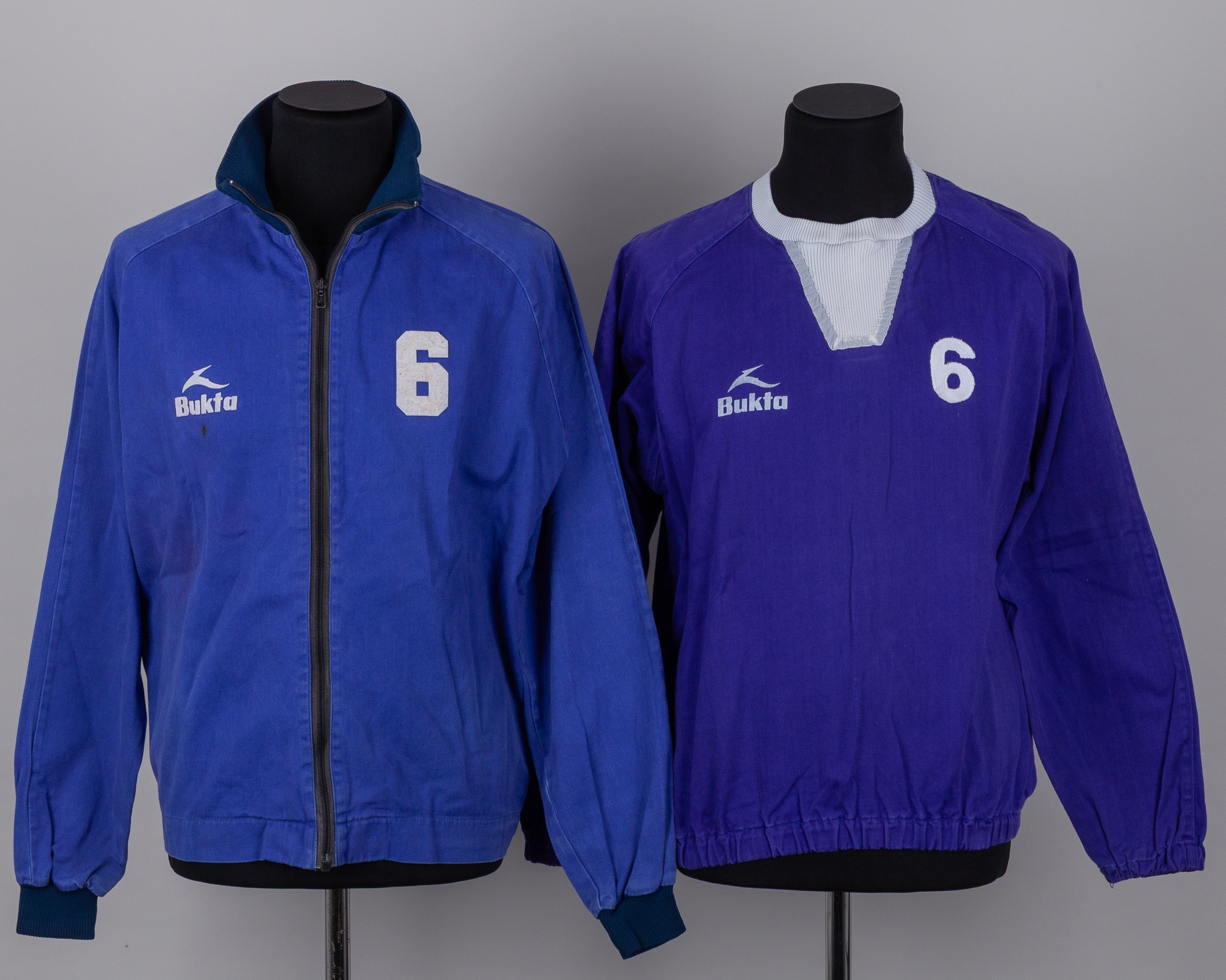 Blue No.6 Sheffield Wednesday training top and tracksuit top, Bukta, LARGE, some staining and discolouration (2)