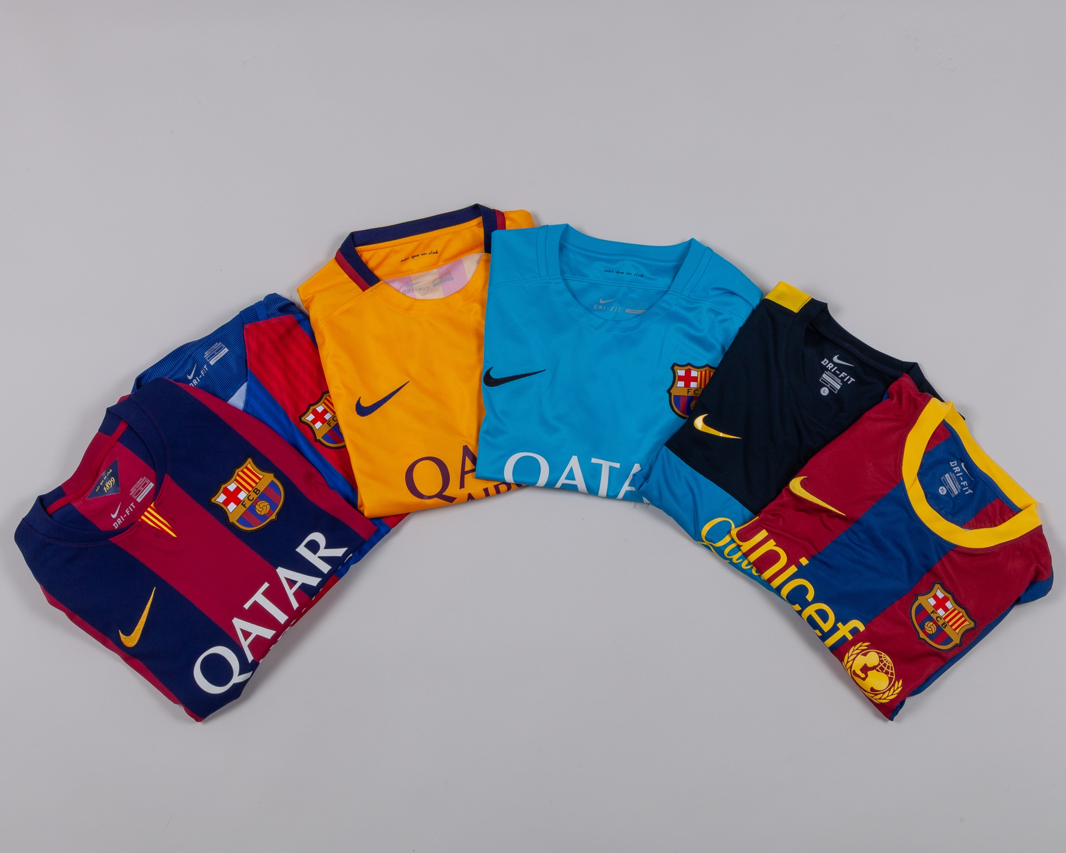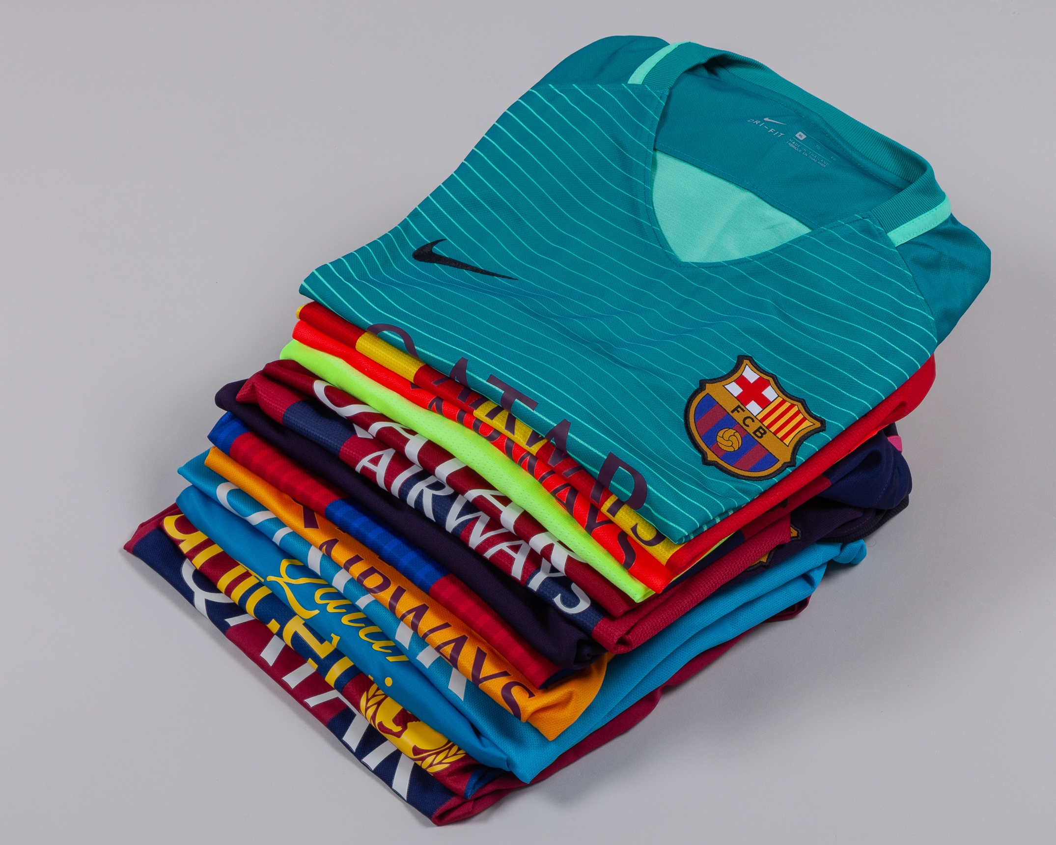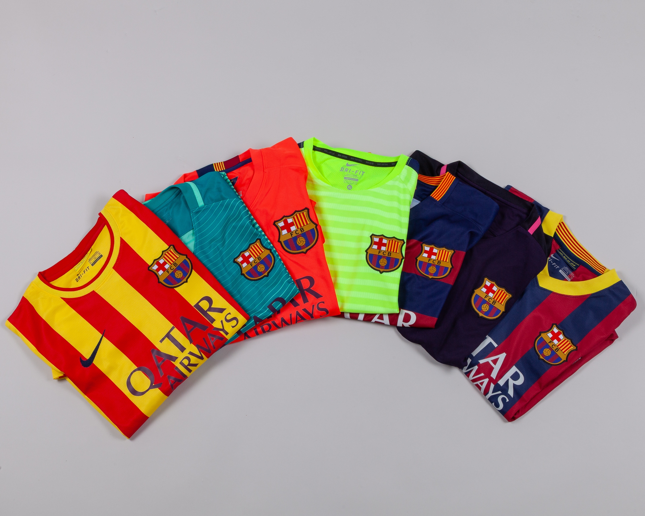 Thirteen various Barcelona shirts including training tops, Nike, various sizes, three with the reverse lettered MESSI and one with the reverse lettered A. INESTA