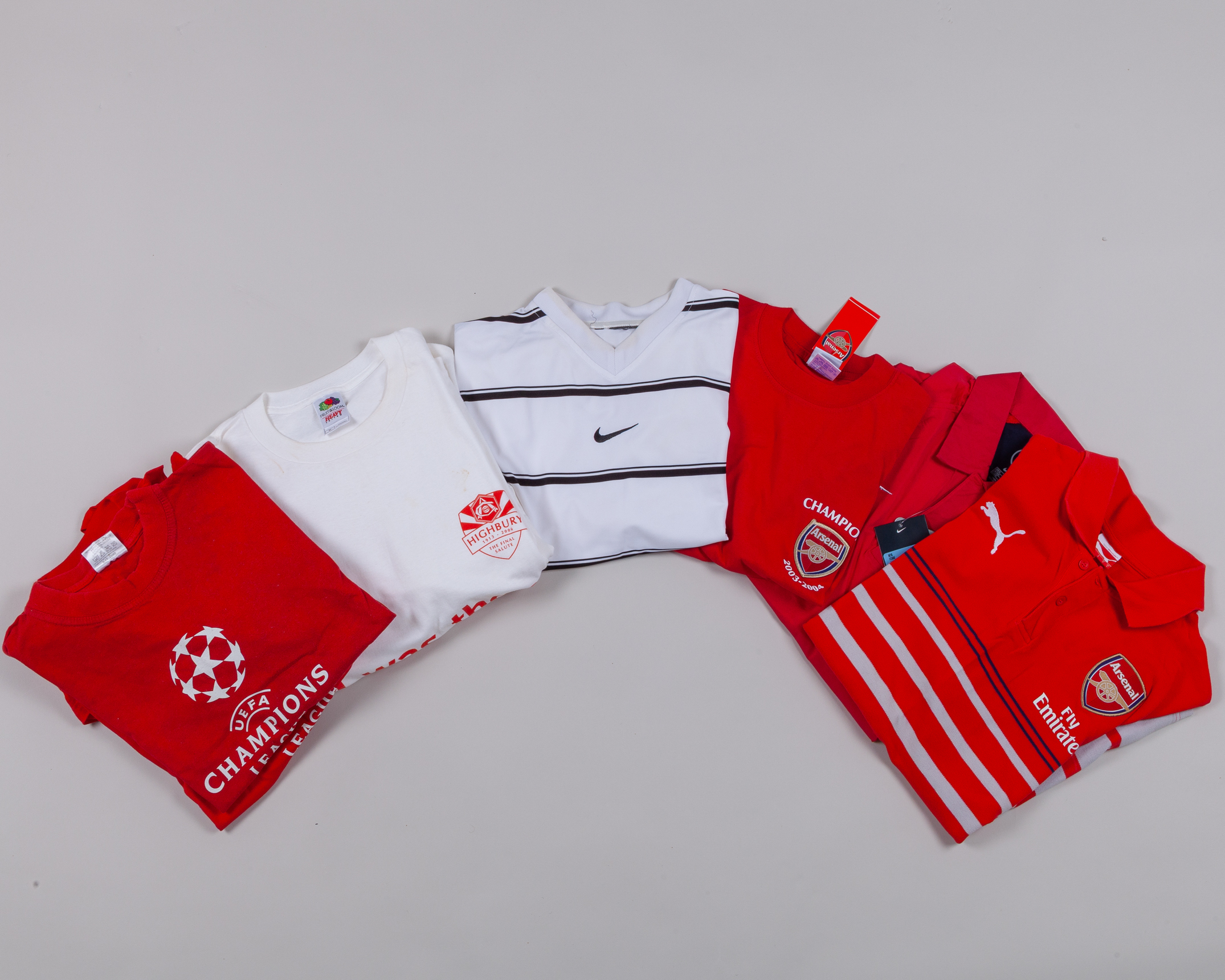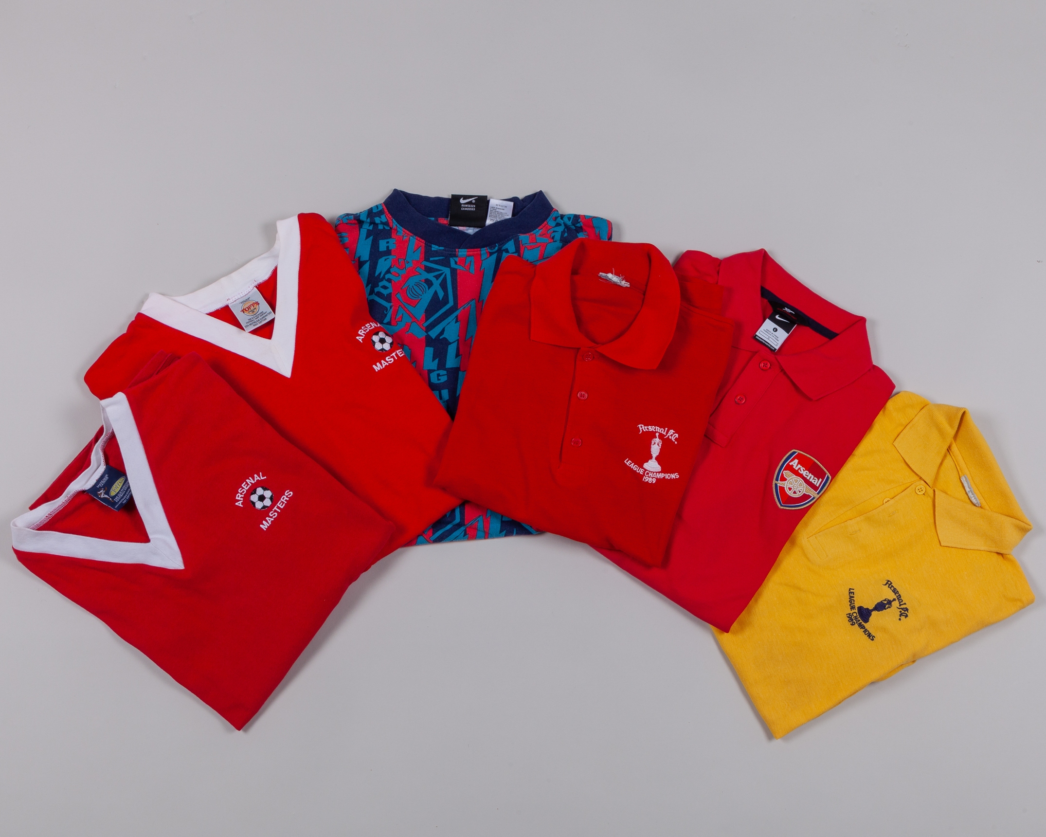 Fourteen various Arsenal tops, including two Highbury The Final Salute I was there tops, two Arsenal F.C. League Champions 1989 polo tops, two Masters football Arsenal tops, Champions 2003-2004 top and two red Champions League tops etc., some staining and discolouration (14)