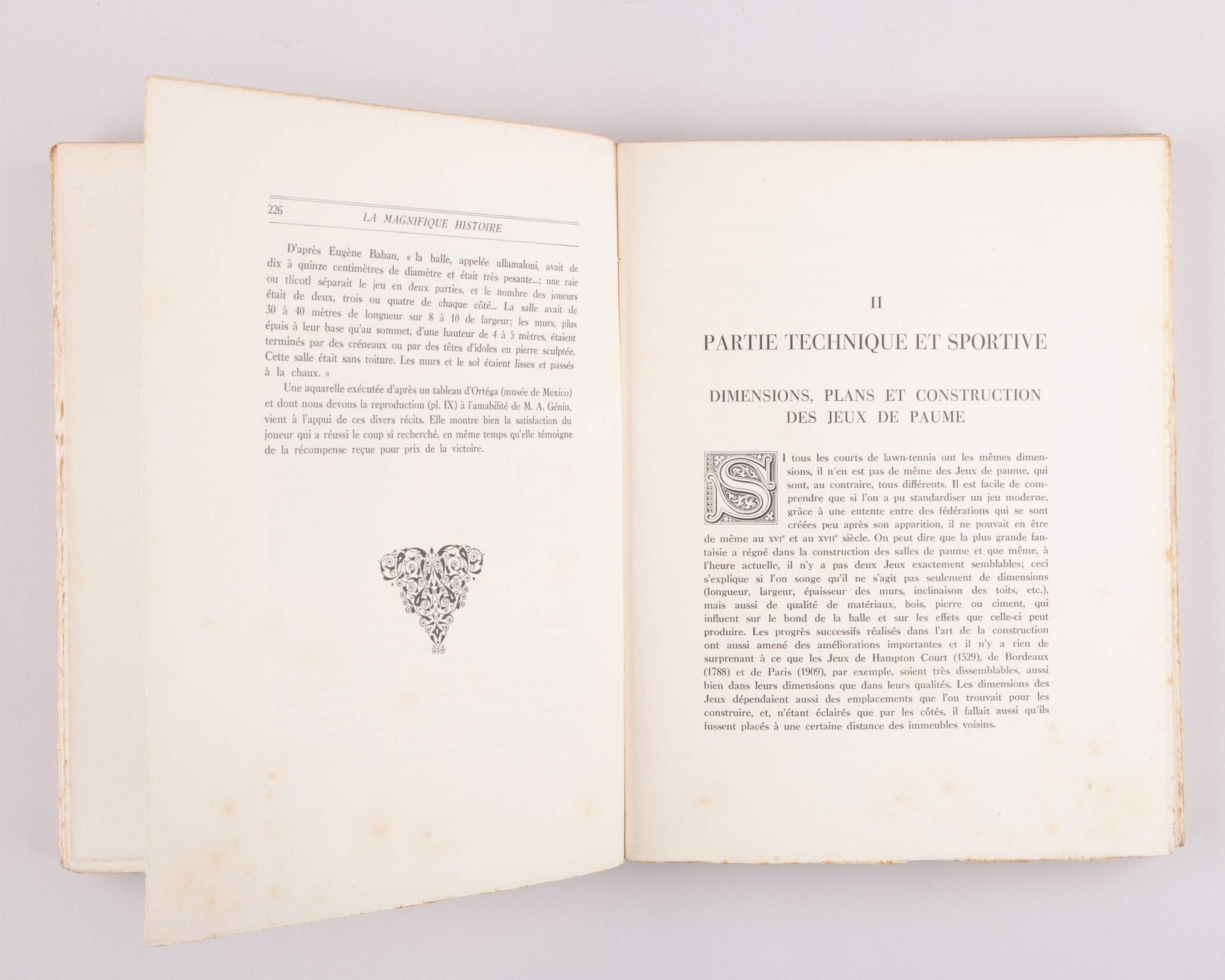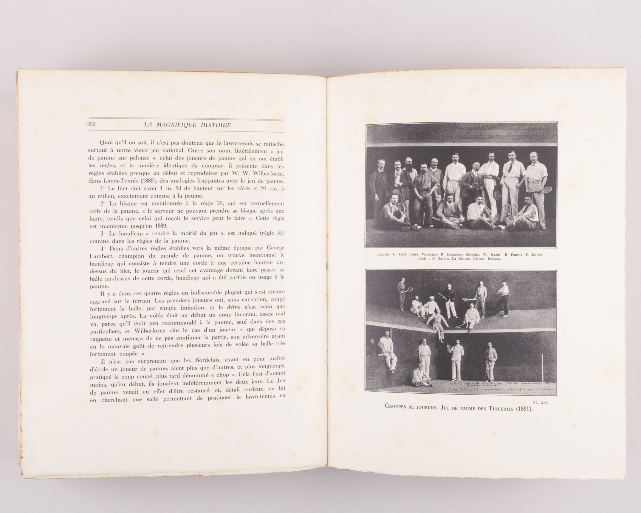The Magnificent History of the Tennis Court by Albert de Luze, 1933, one of 100 luxury copies on Arches vellum No. XXXV. Delmas Bordeaux. Bossard Paris. Numerous illustrations, some of the book's pages uncut