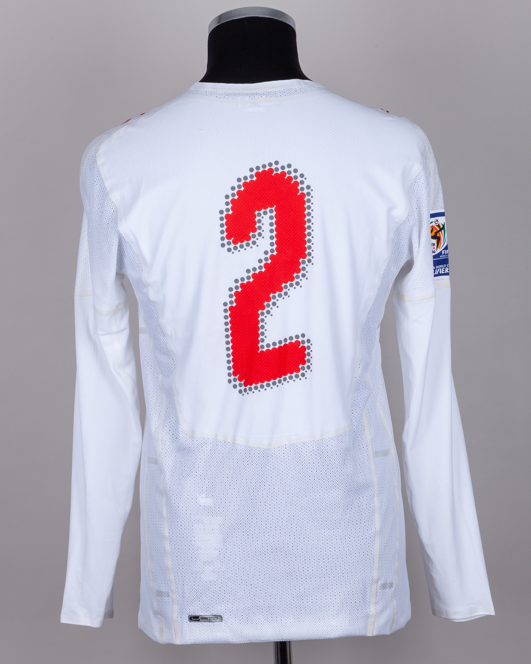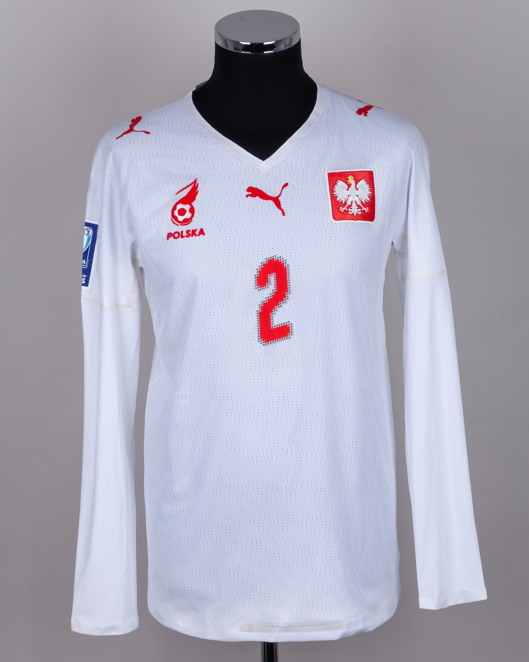 Grzegorz Wojtkowiak white and red No.2 Poland short-sleeved shirt, Puma, M, with v-neck collar, the right sleeve with FIFA 2010 World Cup qualifiers flash