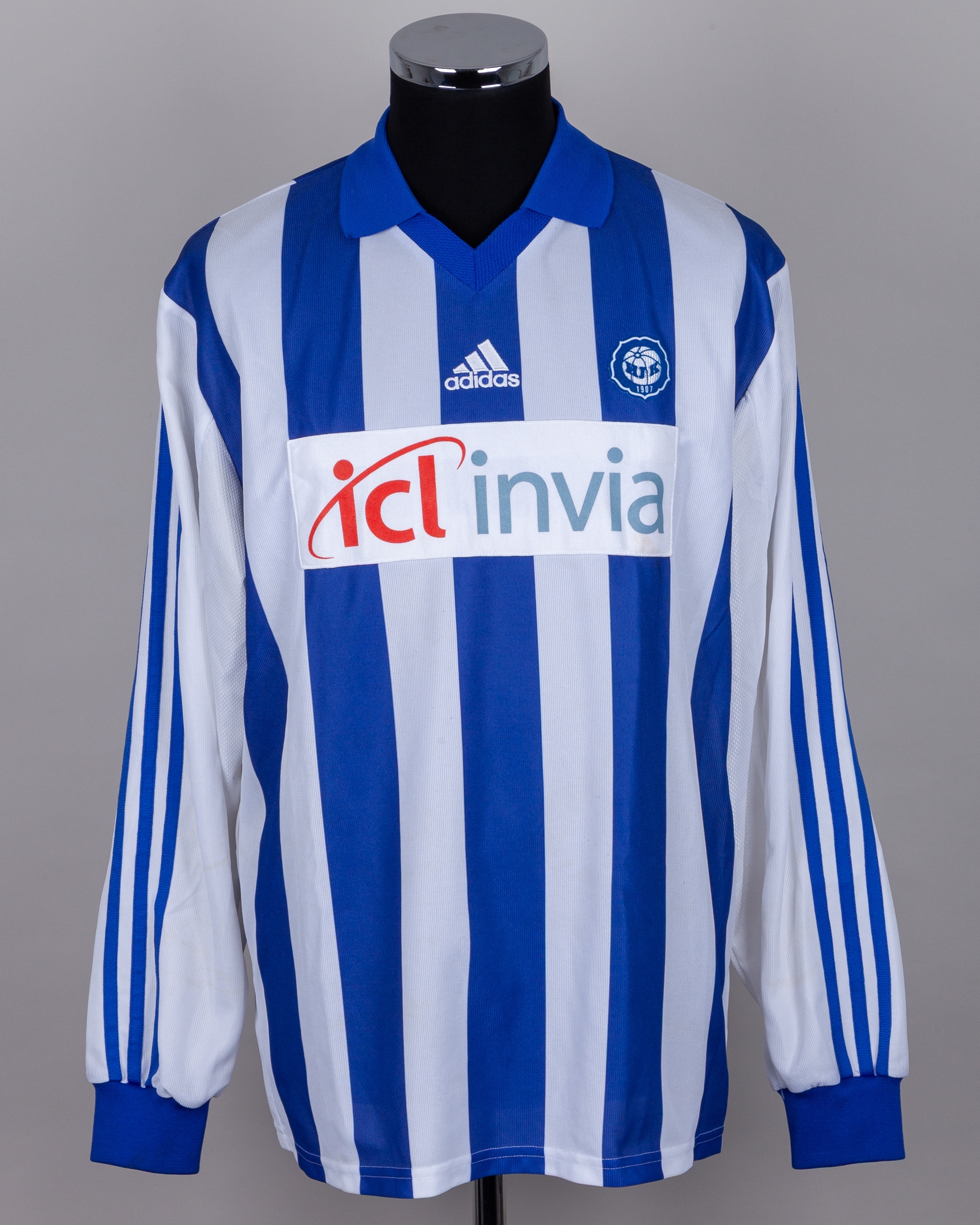 Janne Saarinen blue and white No.17 HJK Helsinki v. Celtic long-sleeved shirt, 2000