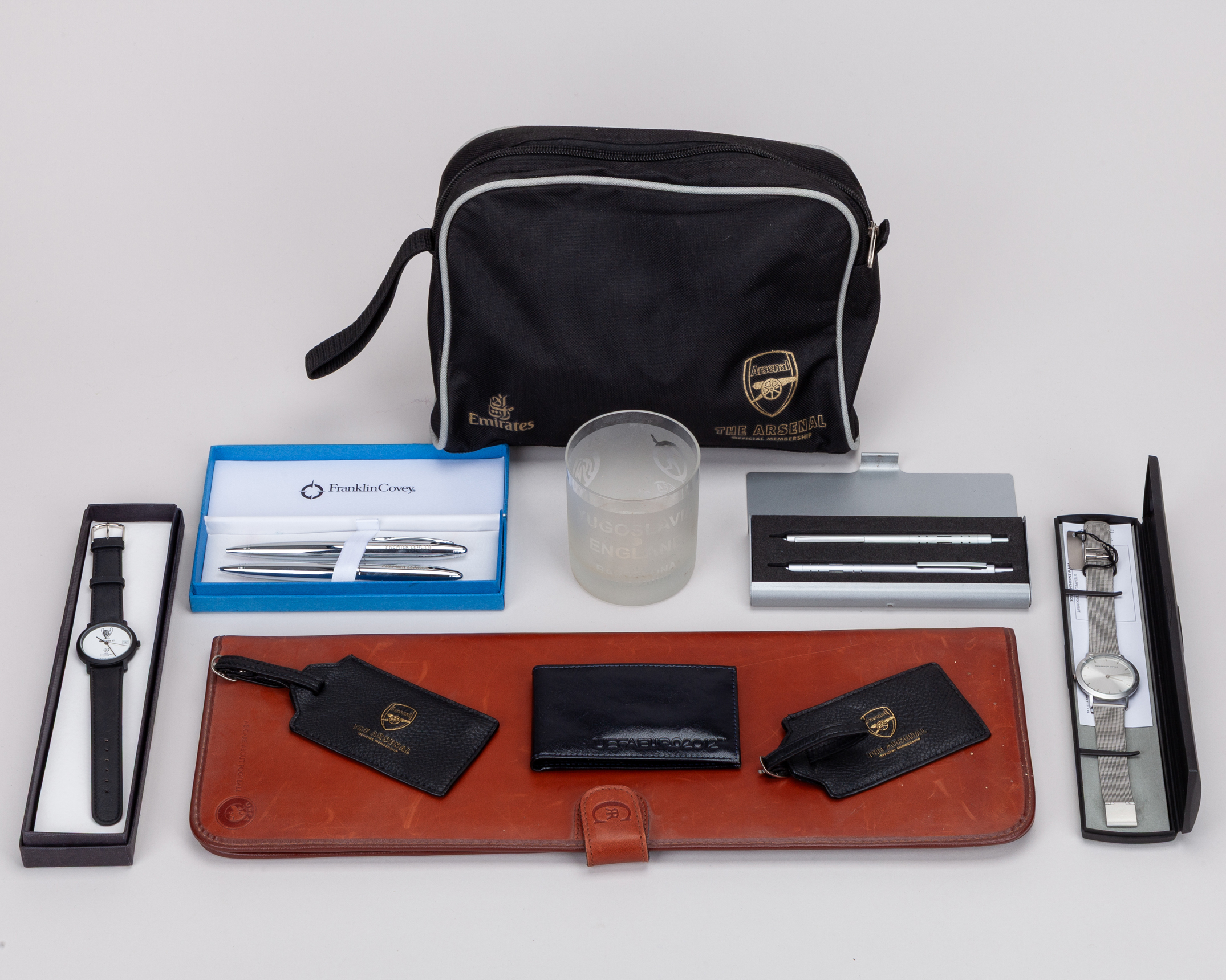 David Dein collection of football related wristwatches, tokens, pens, badges, framed tickets