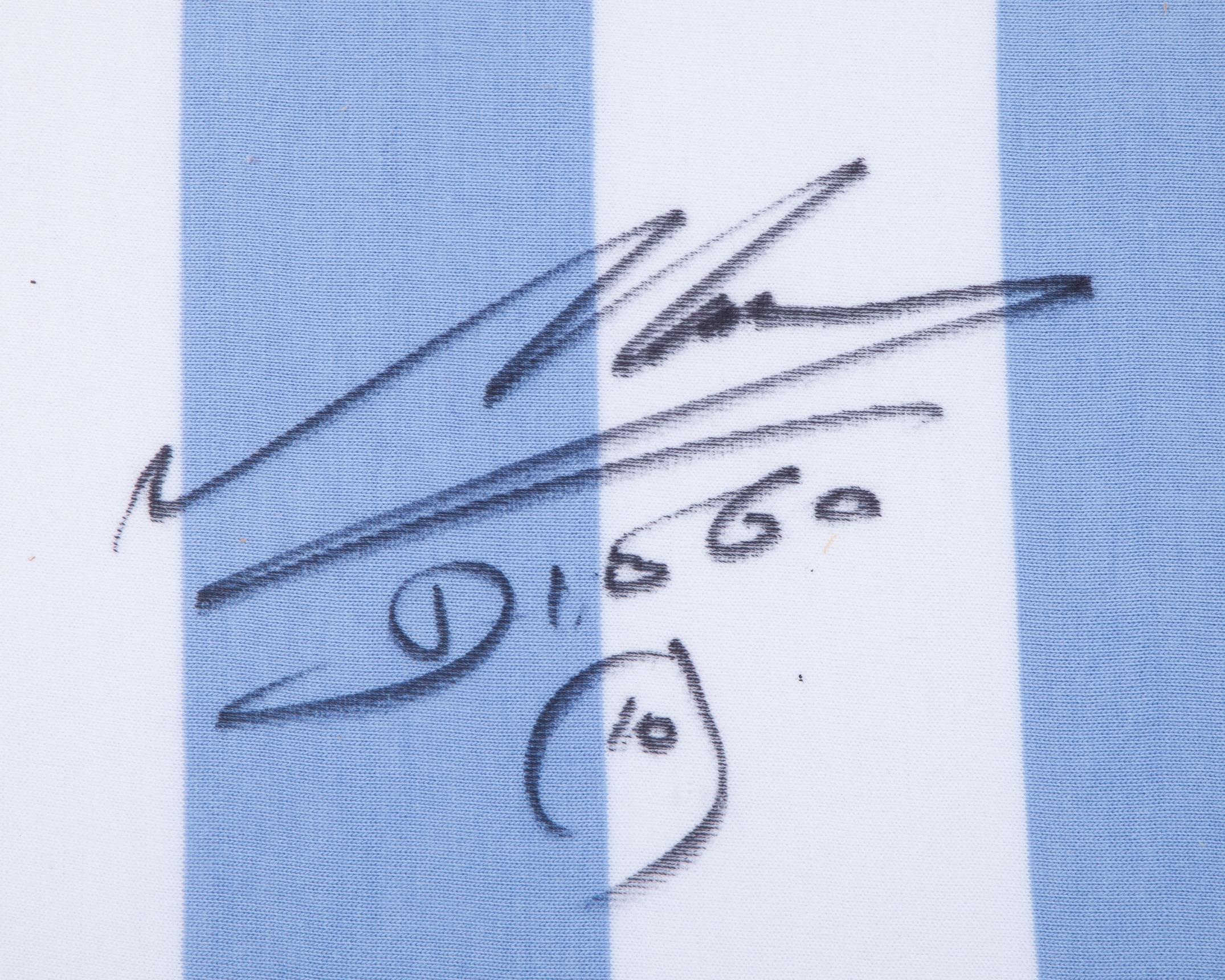 Diego Maradona autographed blue and white Argentina replica short-sleeved shirt display