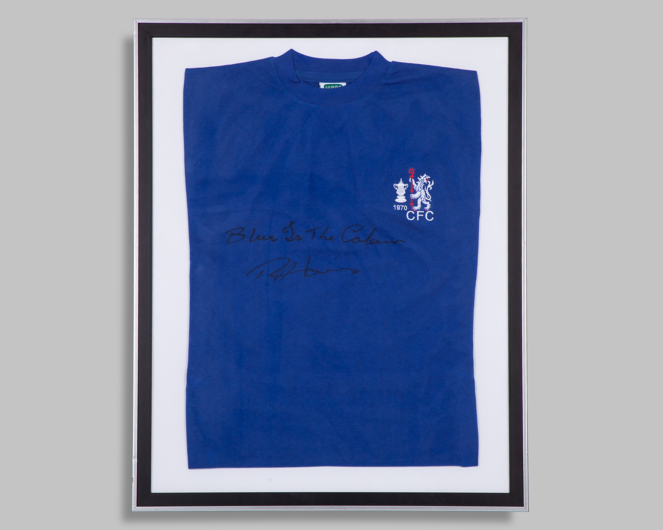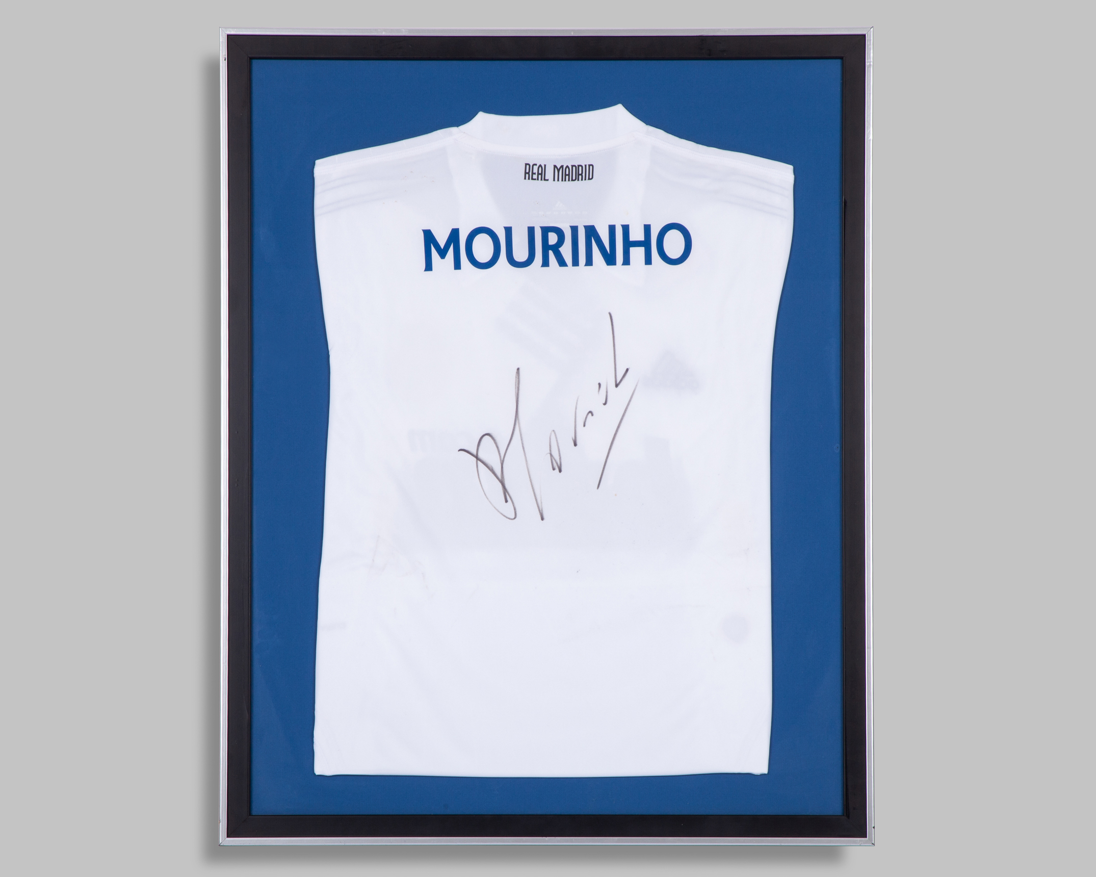 signed and inscribed ‘Blue Is The Colour’, with COA issued by A1 Sporting Memorabilia, mounted, framed & glazed, 76 by 60cm.; sold together with a white Real Madrid t-shirt signed by Jose Mourinho, mounted framed * glazed, 75 by 60cm. (2)