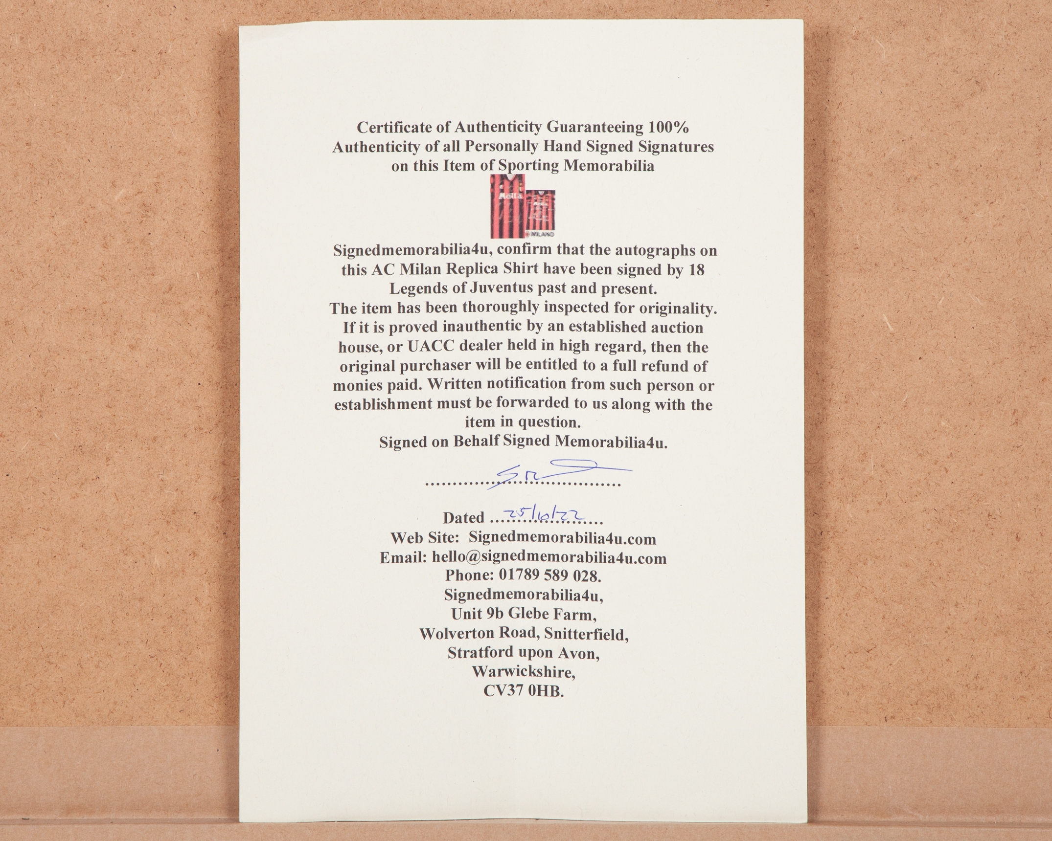 A red and black AC Milan autographed replica shirt display