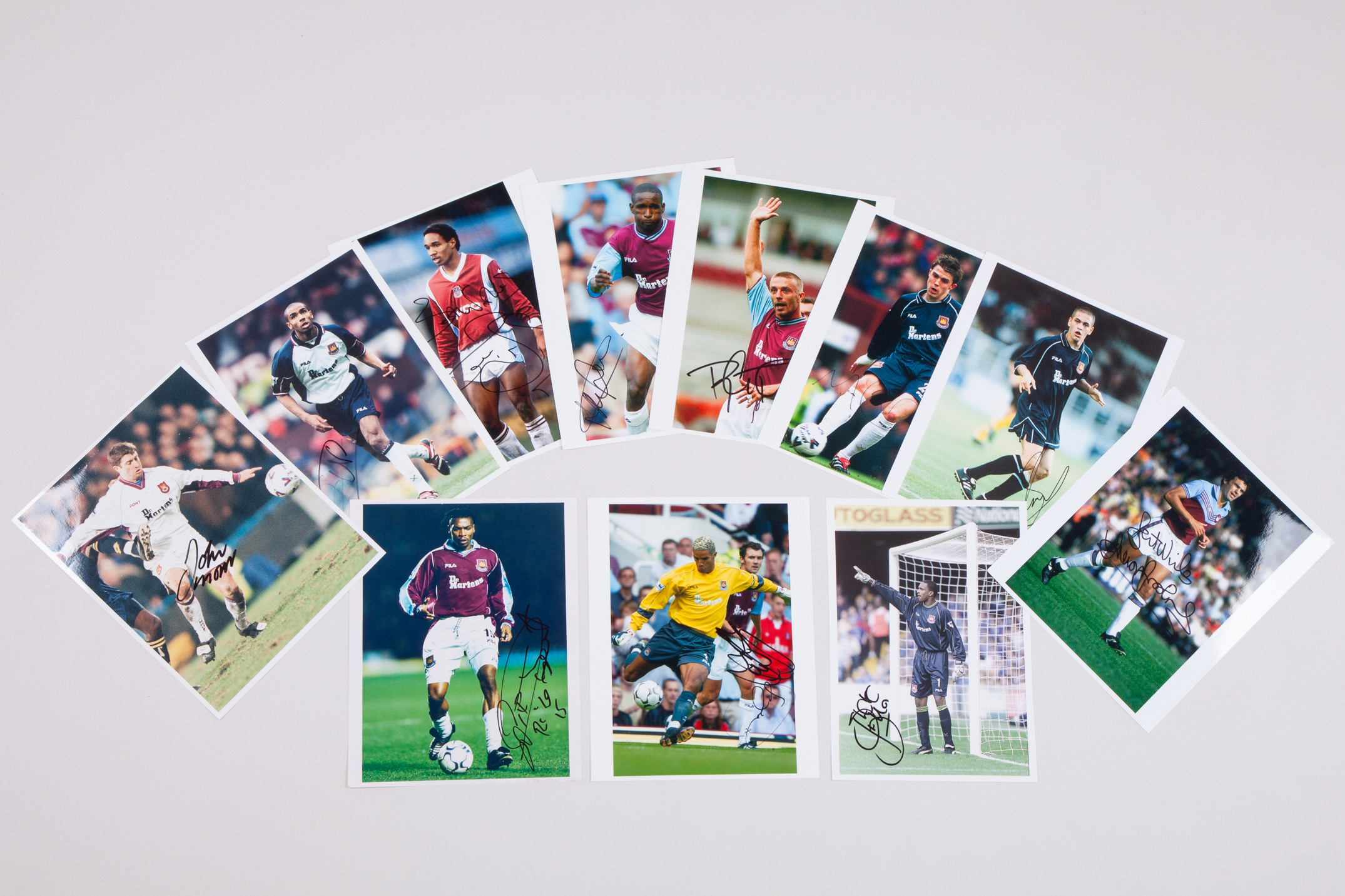 A collection of twenty-five autographed West Ham United photographs, including Trevor Brooking, Paul Ince and Mark Noble
