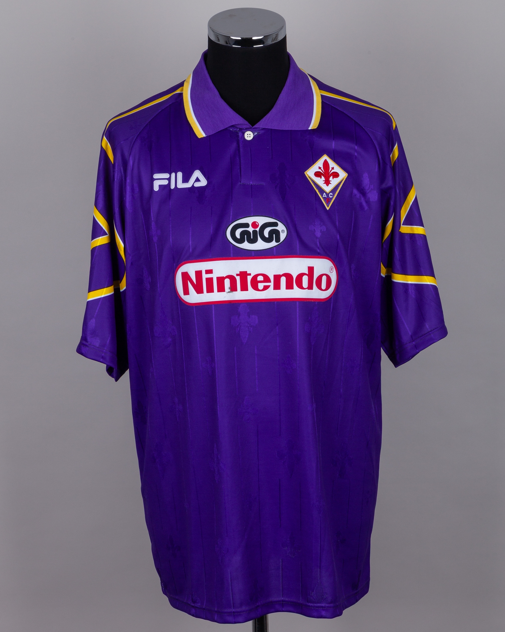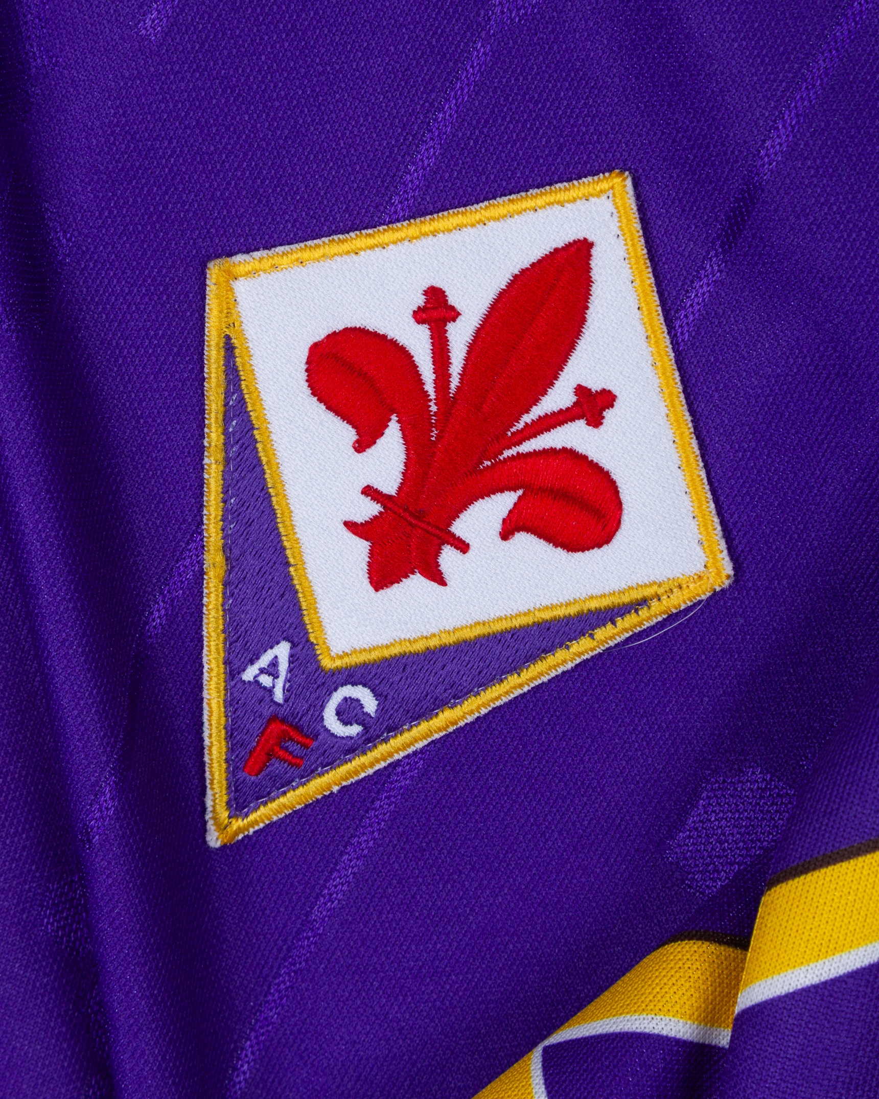 Pasquale Padalino purple and yellow No.5 Fiorentina short-sleeved shirt, 1997-98