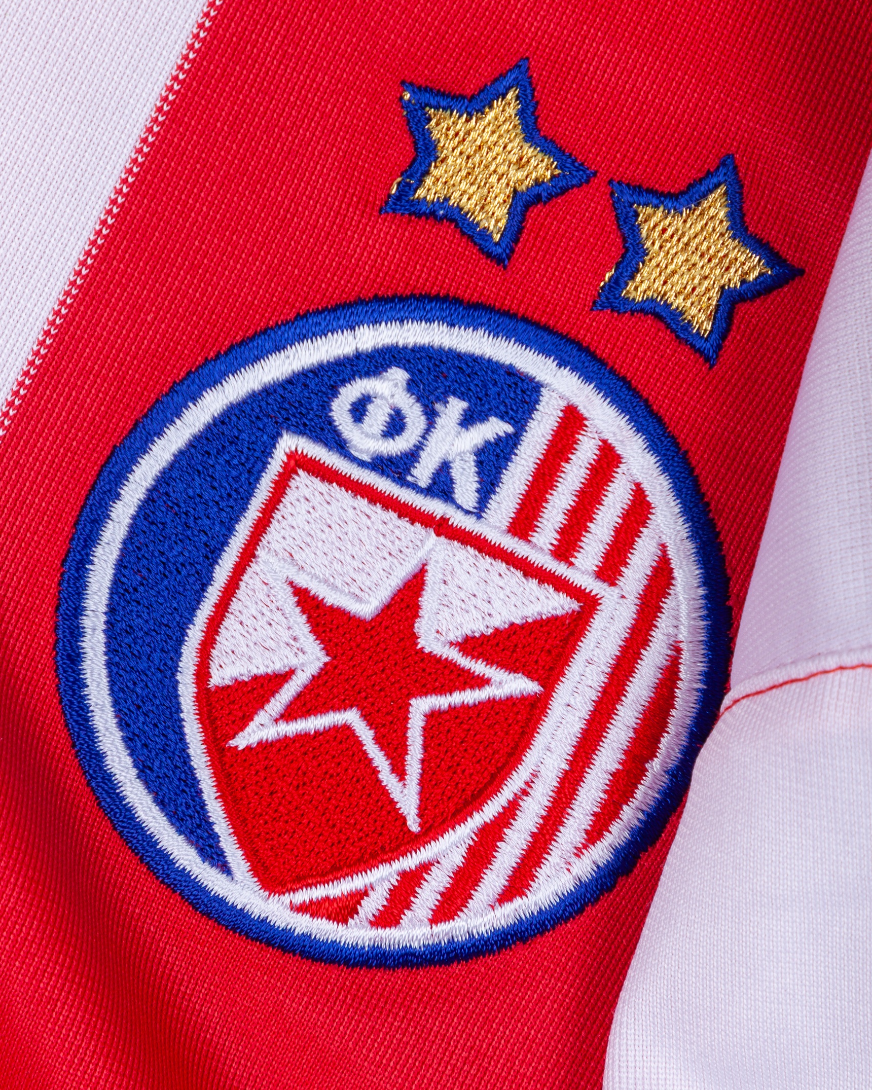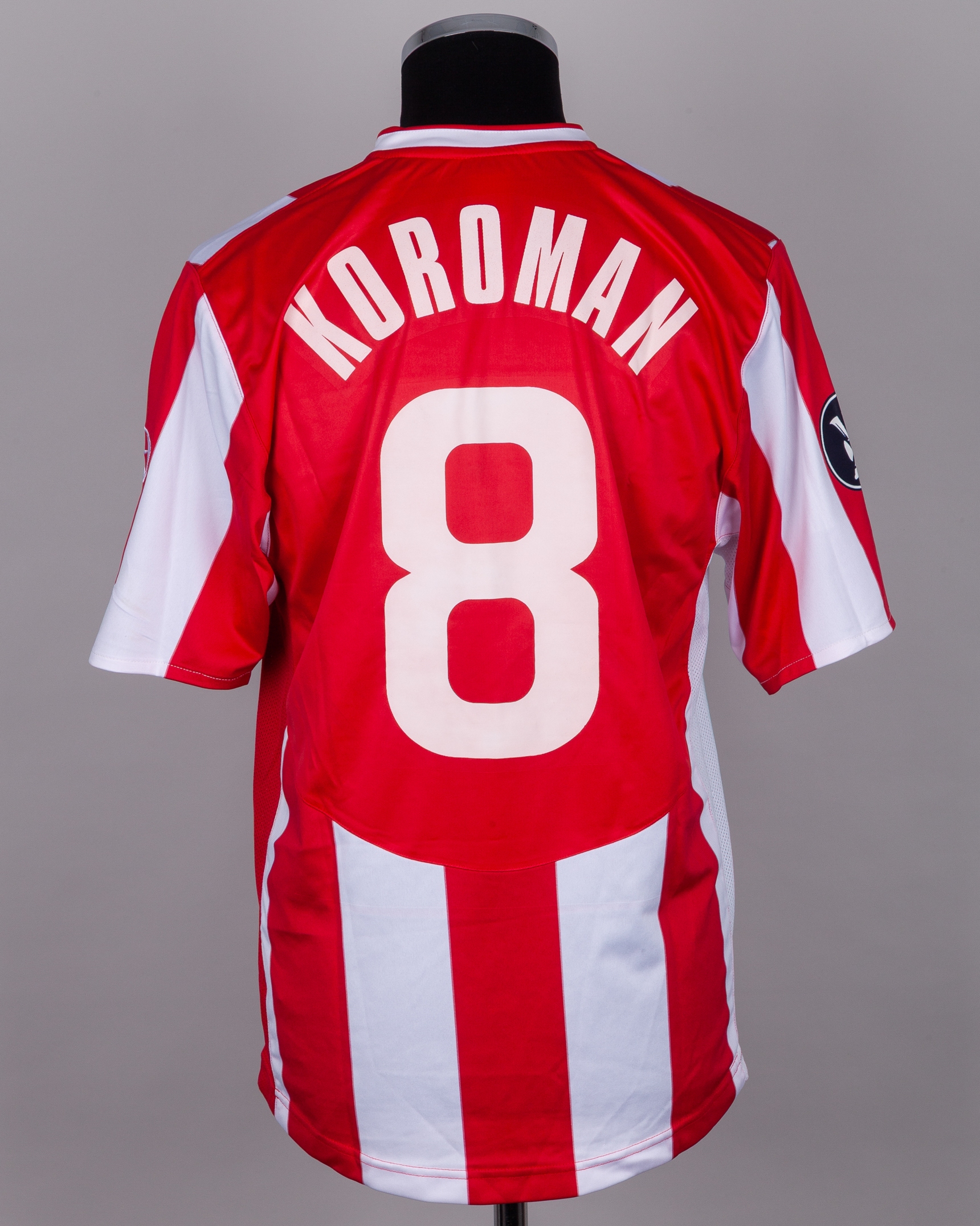 Ognjen Koroman red and white No.8 Red Star Belgrade short-sleeved shirt, 2007-08