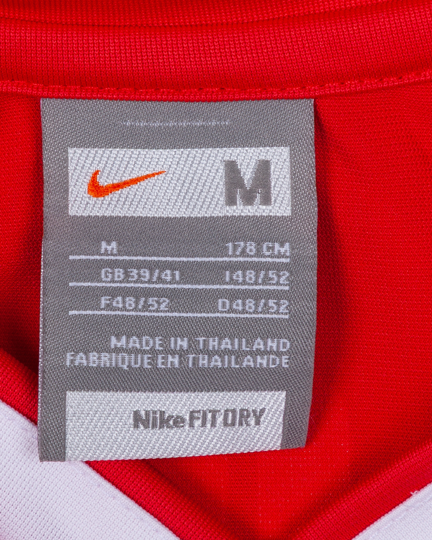 Ognjen Koroman red and white No.8 Red Star Belgrade short-sleeved shirt, 2007-08, Nike, M, with v-neck collar and embroidered badge , the reverse lettered KOROMAN, the right sleeve with UEFA Cup flash