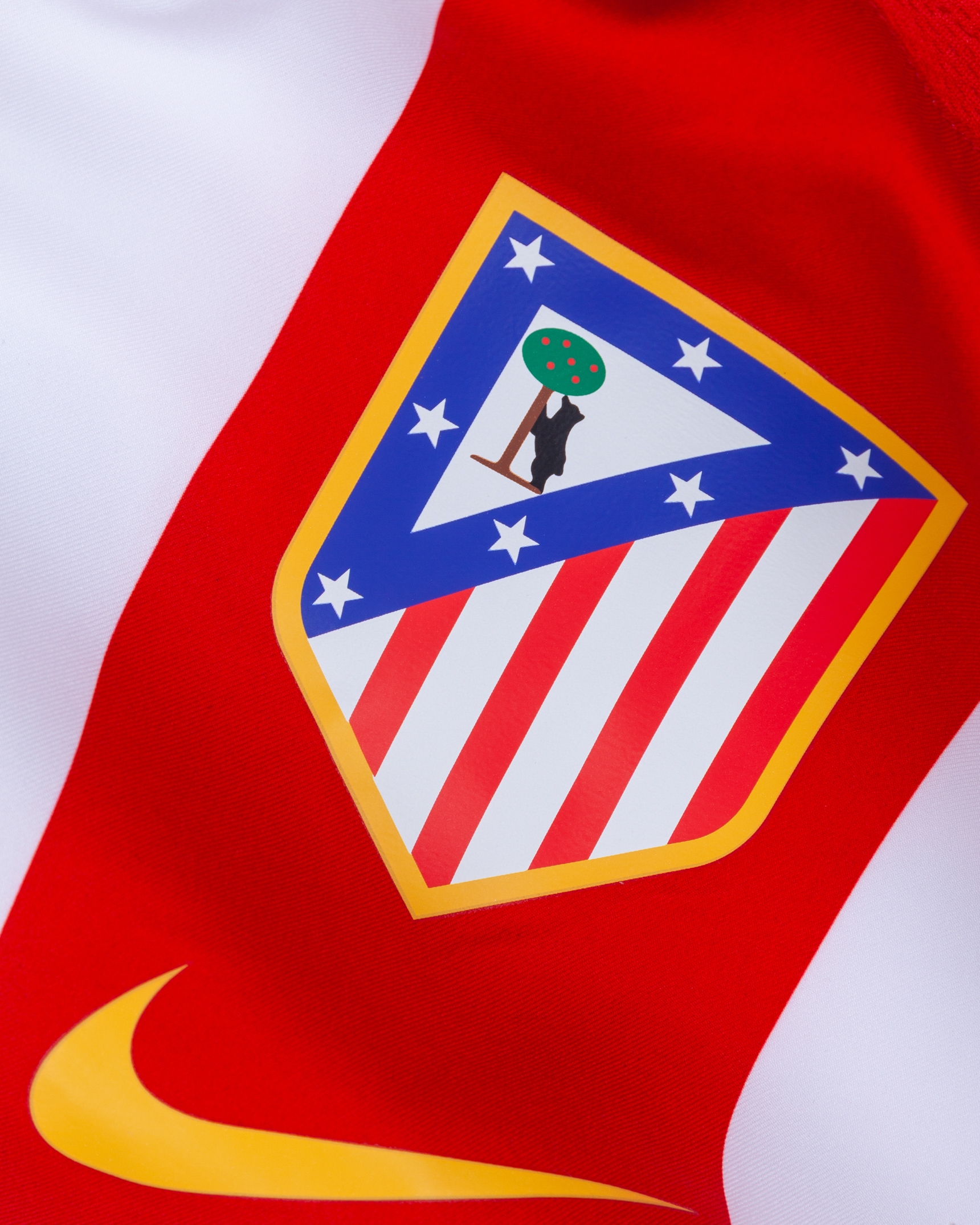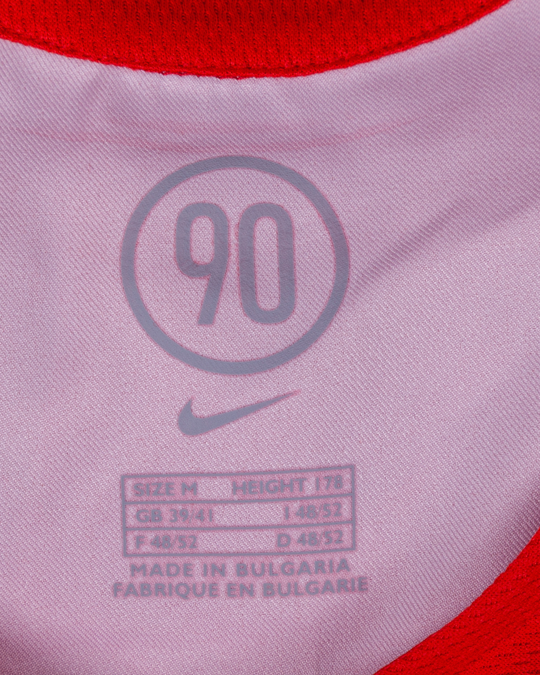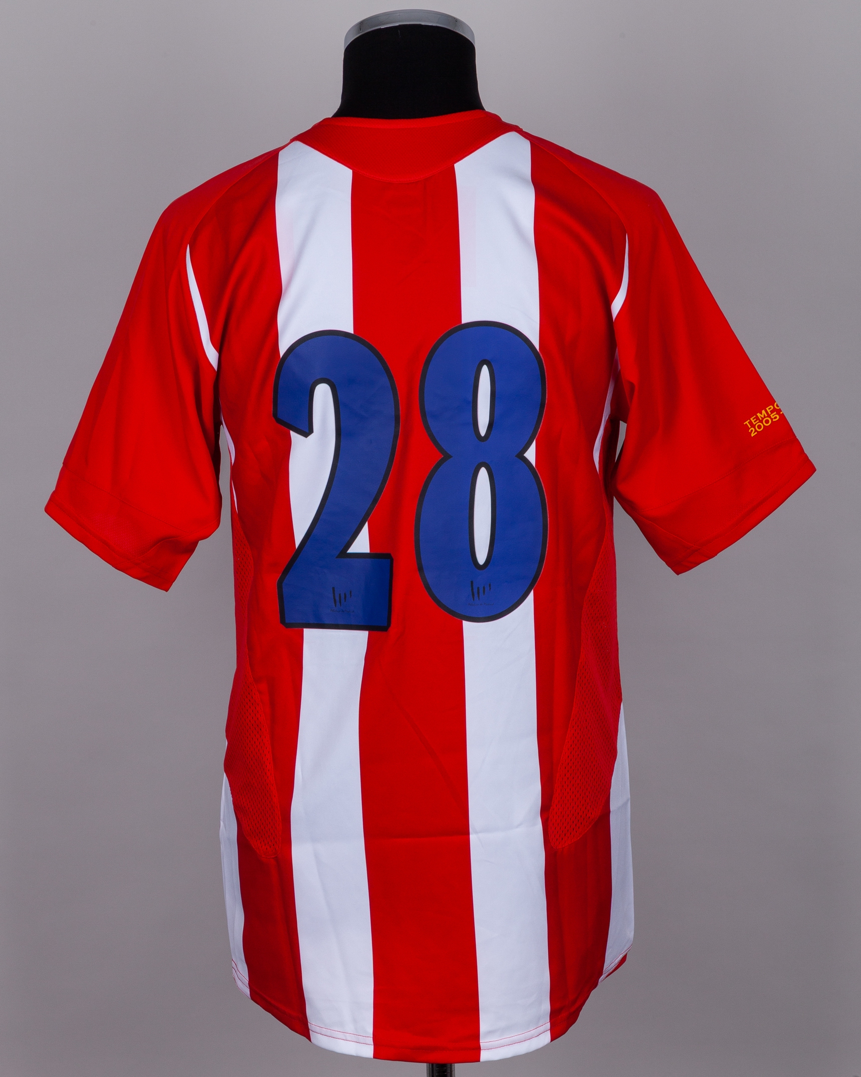 Manu Del Moral red and white No.28 Atletico Madrid short-sleeved shirt, 2005-06, Nike, M, with crew-neck collar and printed badge
