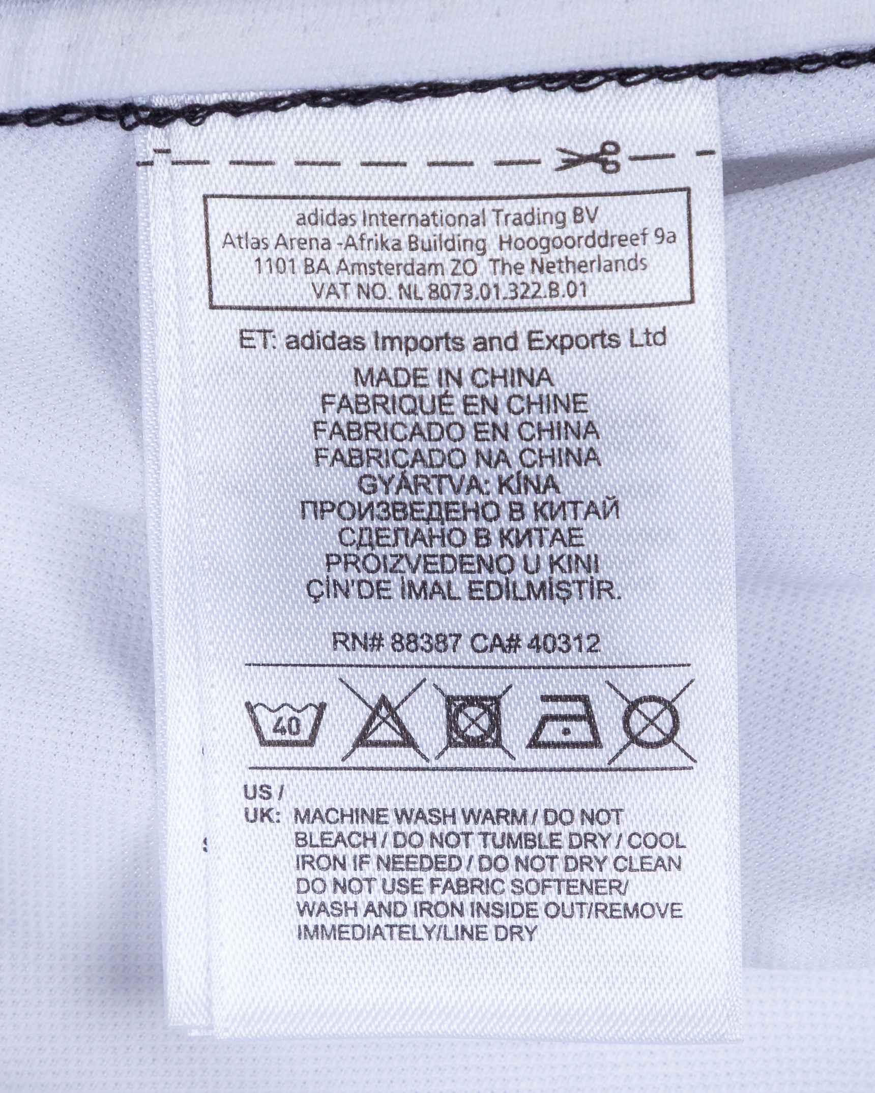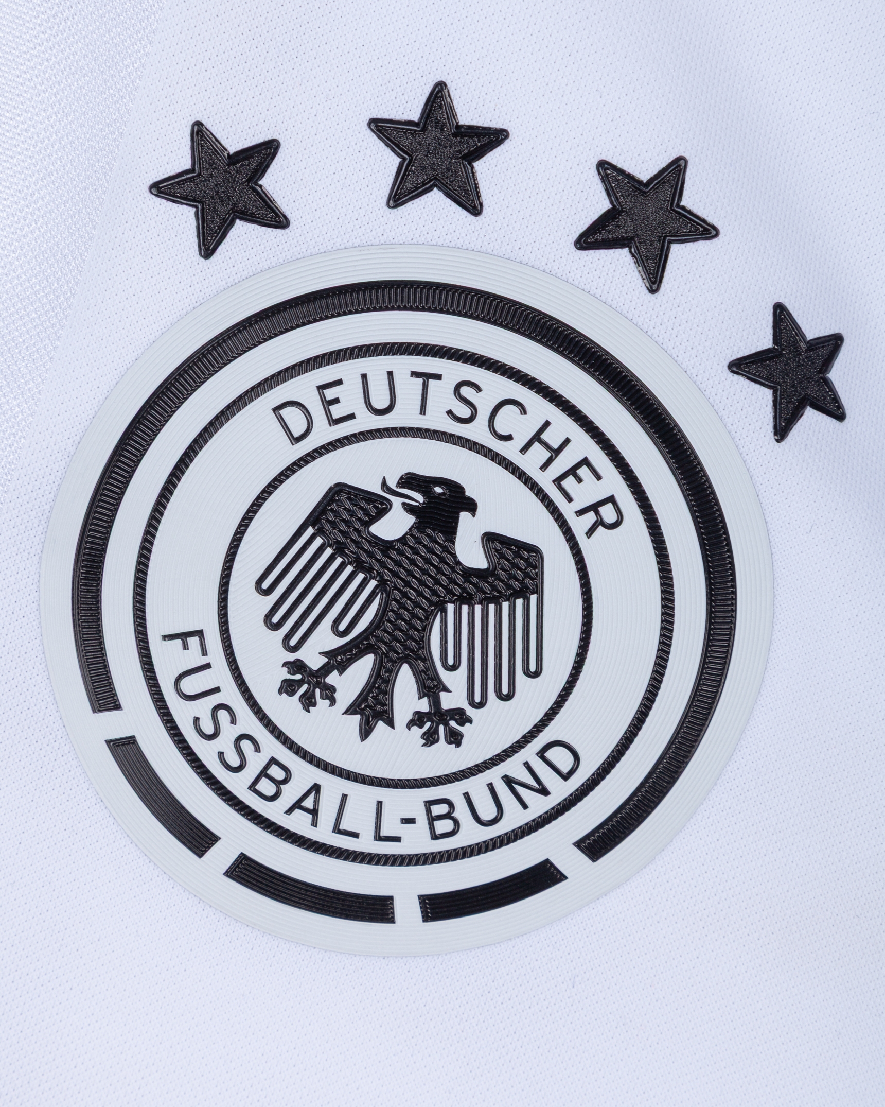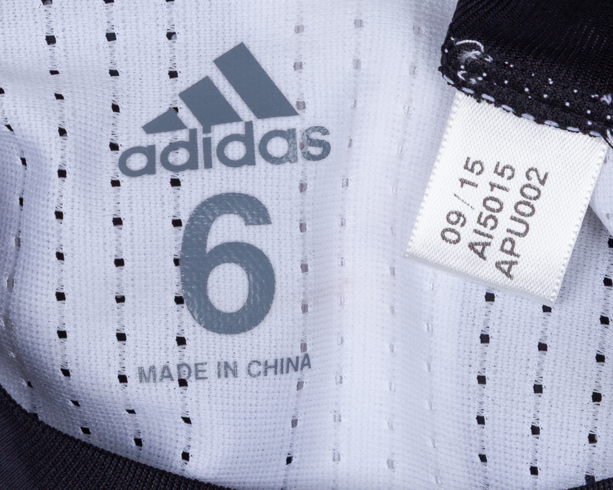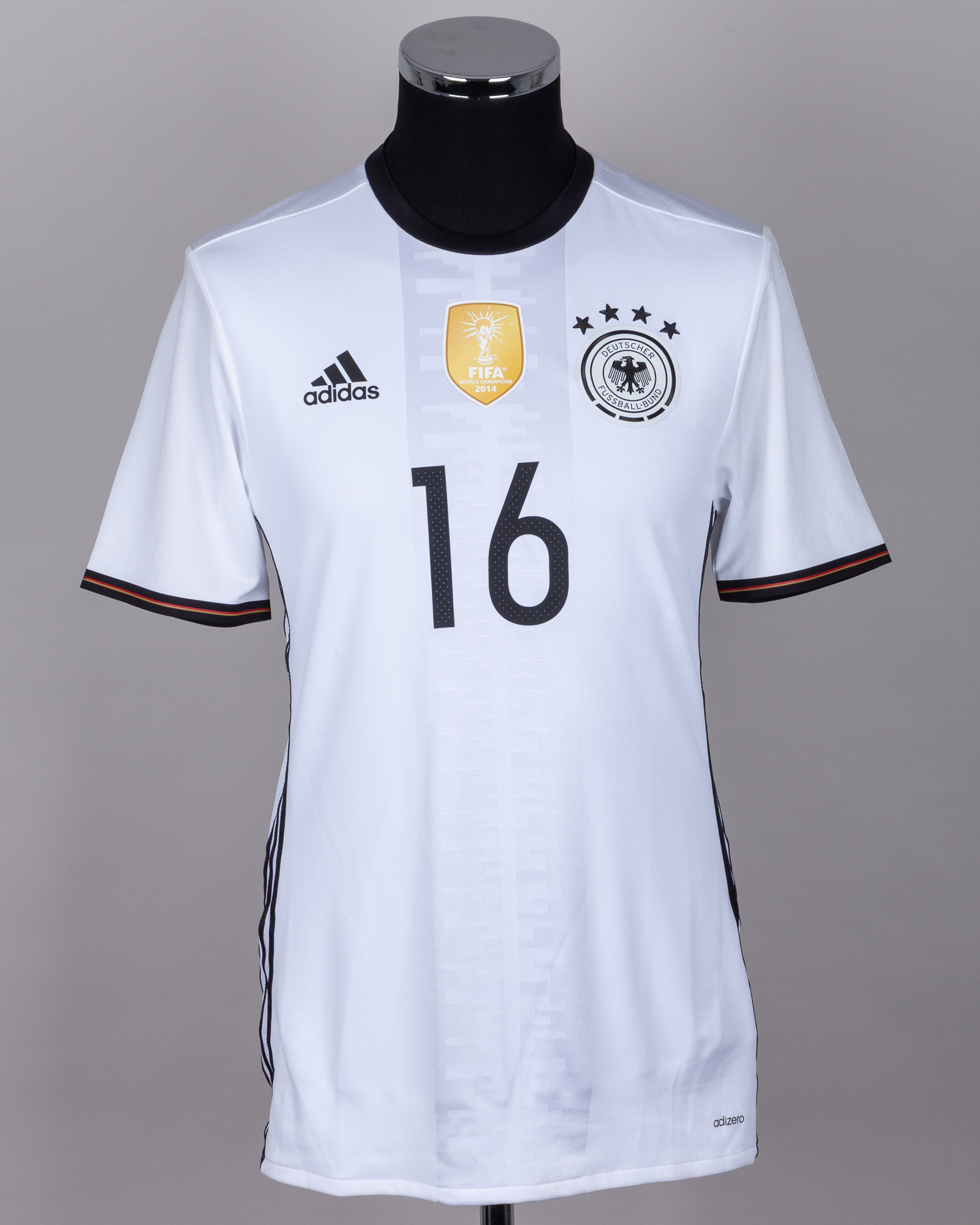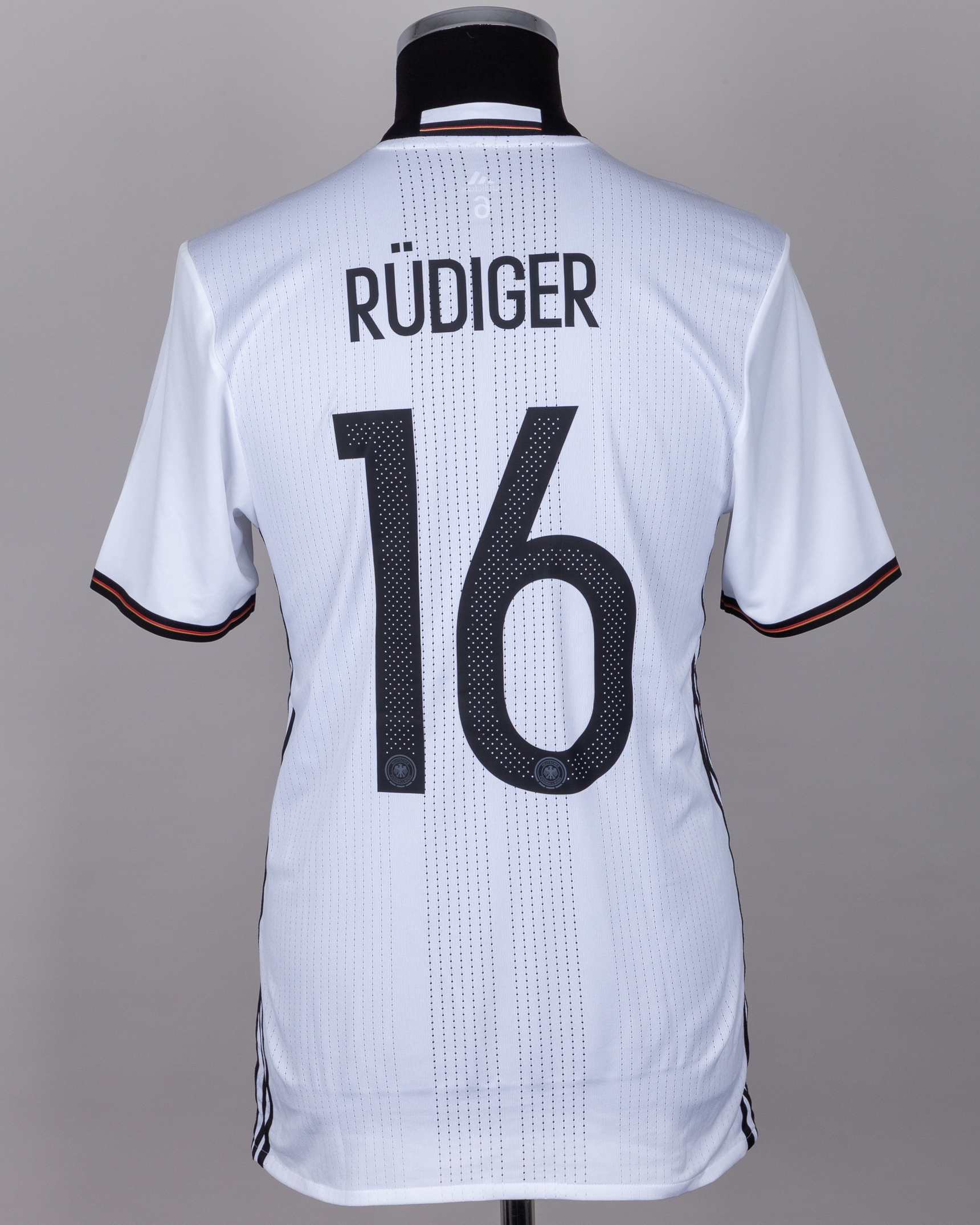 Antonia Rudiger white No.16 Germany v. Italy short-sleeved shirt, 2016, Adidas, 6, with crew-neck collar and printed badge, with FIFA World Champions 2014 badge, the reverse lettered RUDIGER