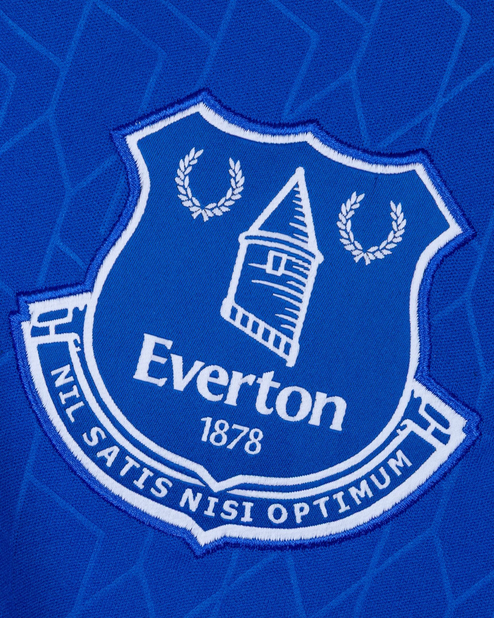 Michael Keane blue No.5 Everton short-sleeved shirt, 2022, Hummel, L with crew-neck collar and embroidered cloth badge inscribed Everton 1878 NIL SATIS NISI OPTIMUM, with the reversed letters Keane, right arm flash Premier League No room for racism, left arm flash BOXT LIFE and embroidered poppy on the front, staining on front and right hand side