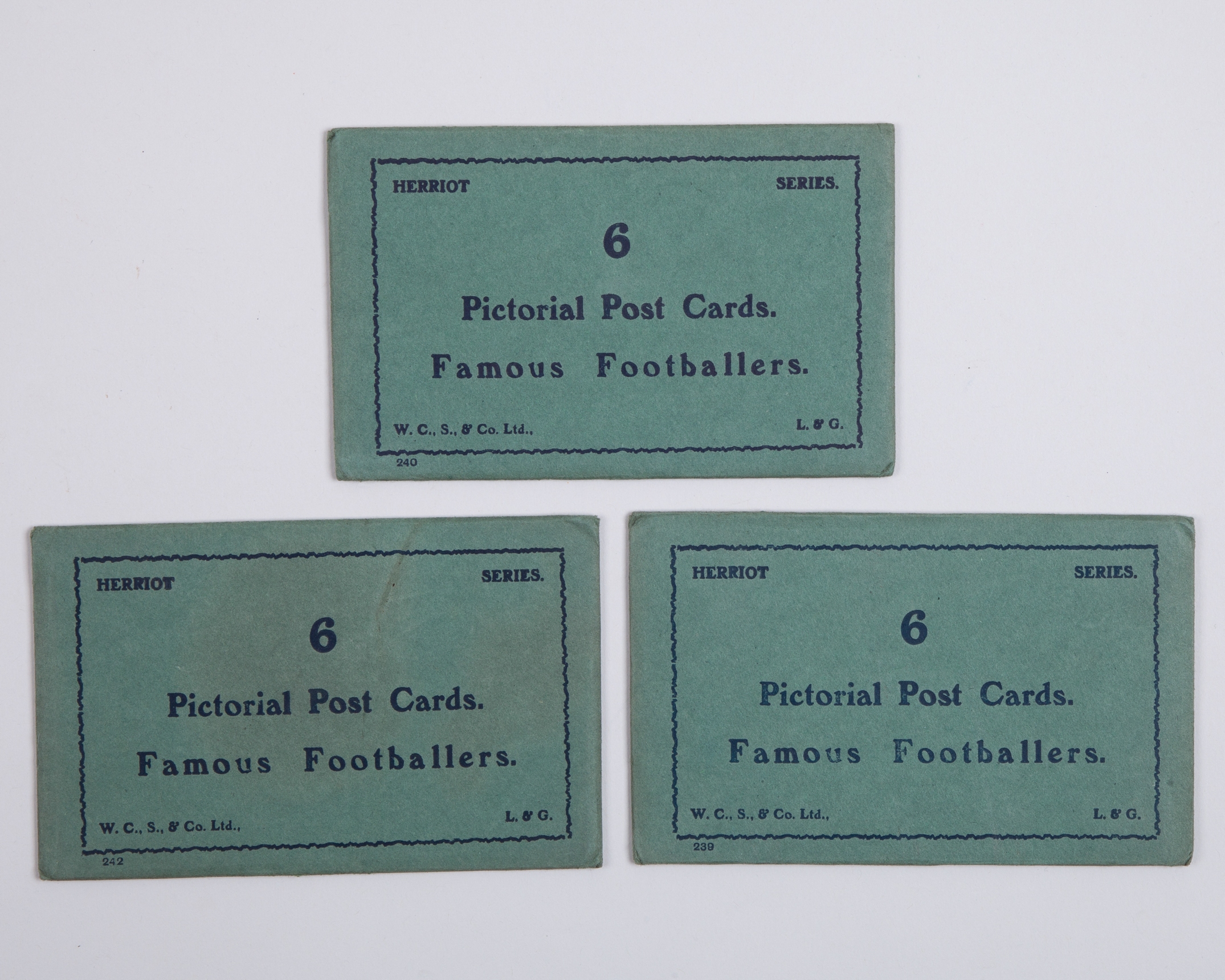 Eighteen Herriot Series Famous Footballers postcards, in three envelopes, W.C..S. & Co Ltd