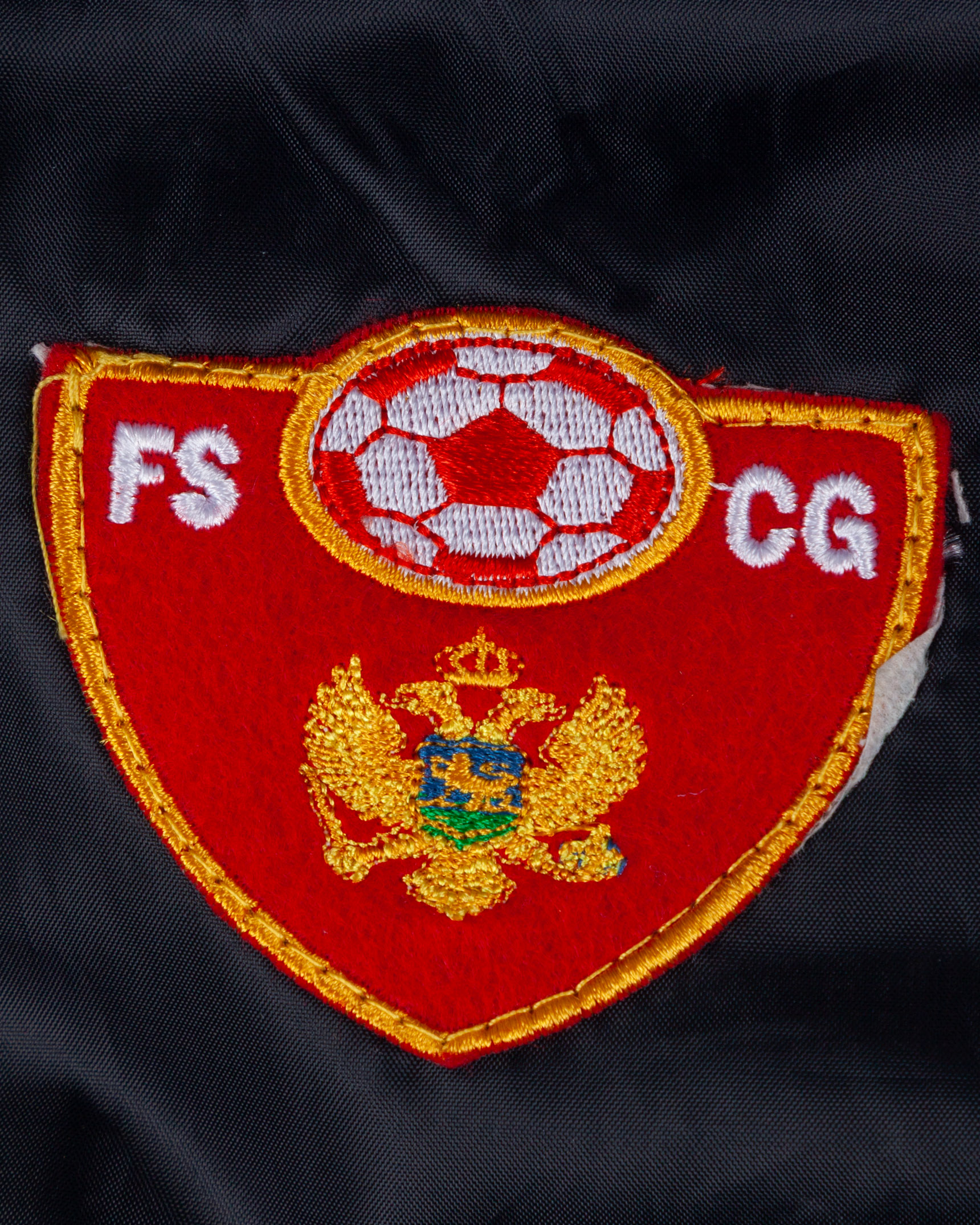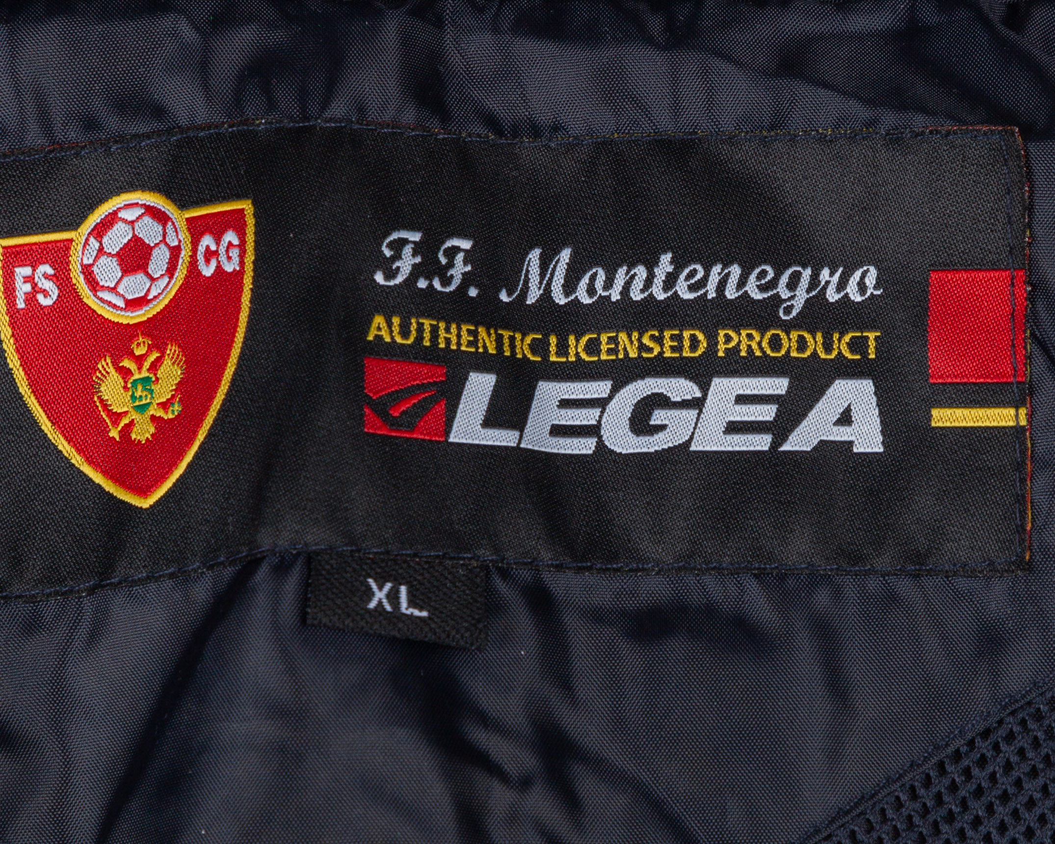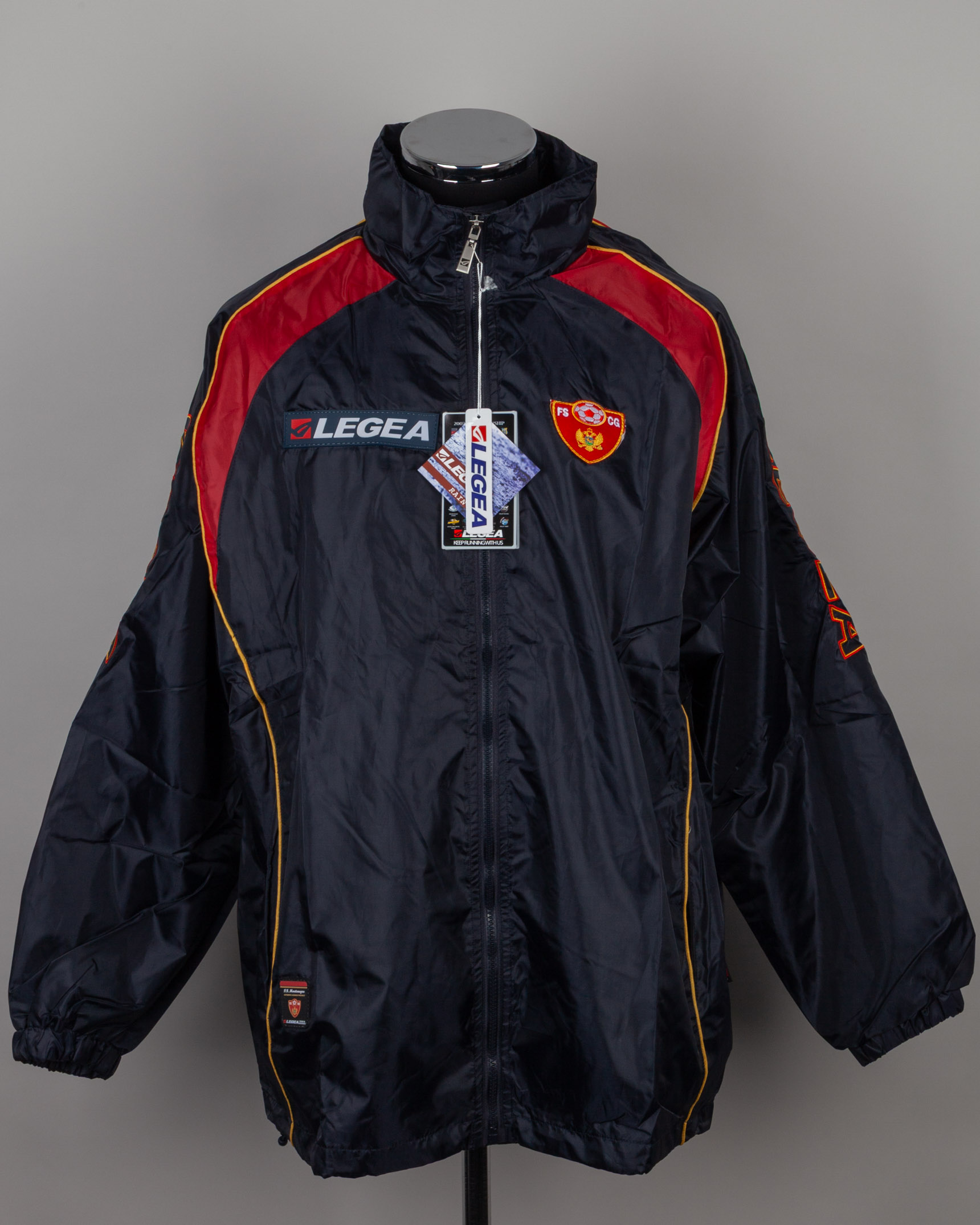 Blue, red and yellow Montenegro tracksuit top, Legea, XL, with zip-up front embroidered cloth badge inscribed FS CG