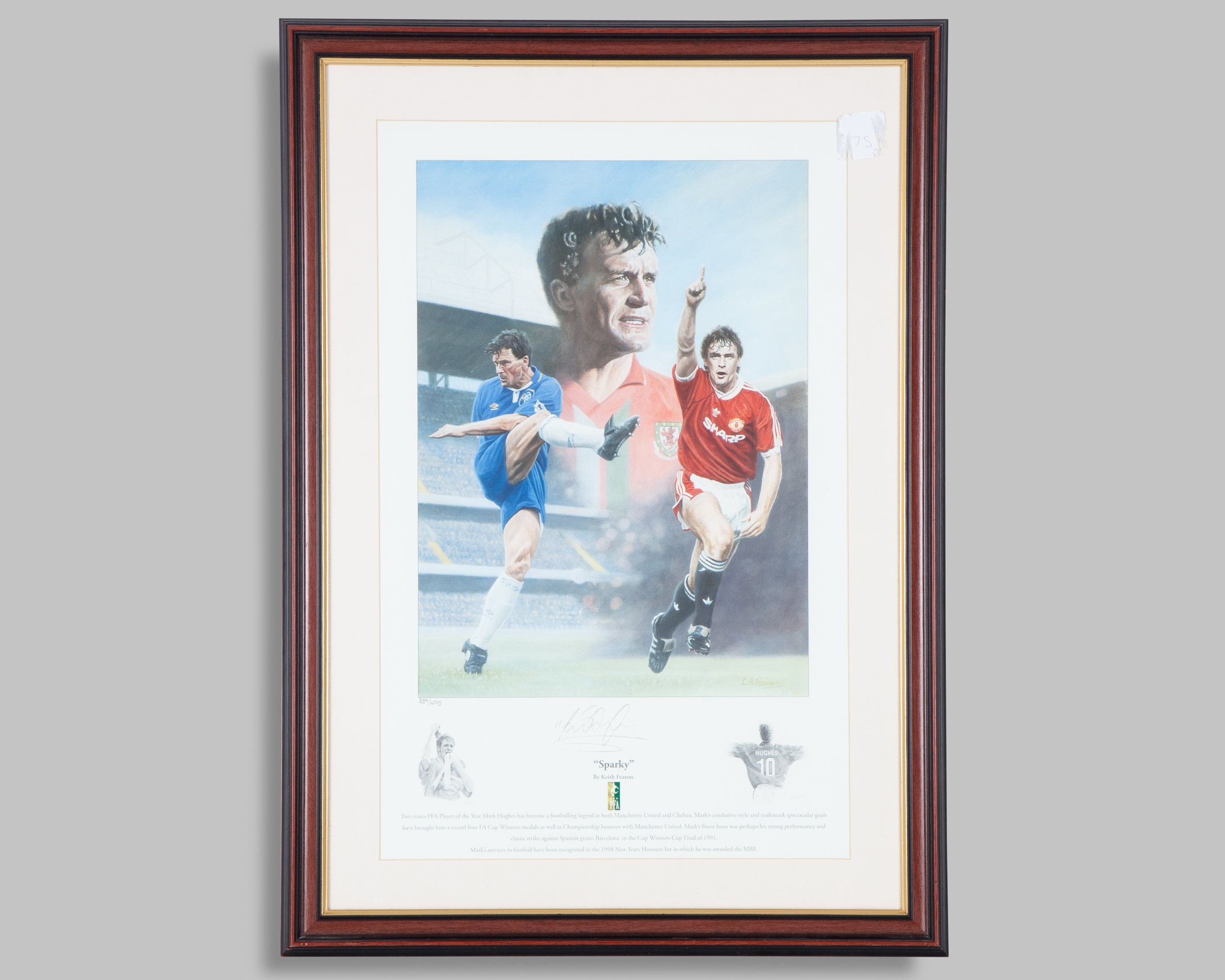 A Sparky by Keith Fearon autographed limited edition print, 339/495, autographed by Mark Hughes, framed and glazed, 52x73cm