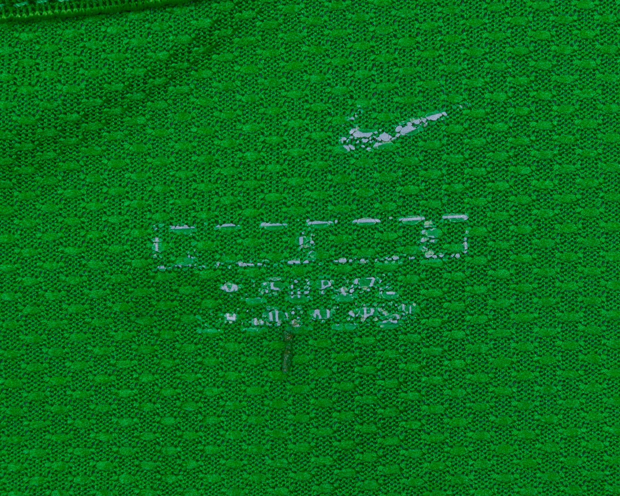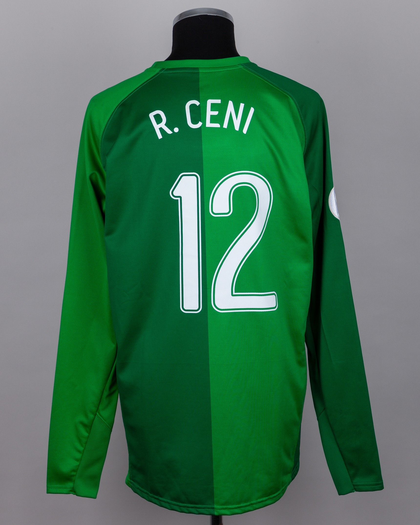 Rogerio Ceni green No.12 Brazil goalkeeper shirt 2006, Nike, with crew-neck collar and printed badge, the reveres lettered R.CENI, the right sleeve with FIFA World Cup Germany 2006 flash, badge worn