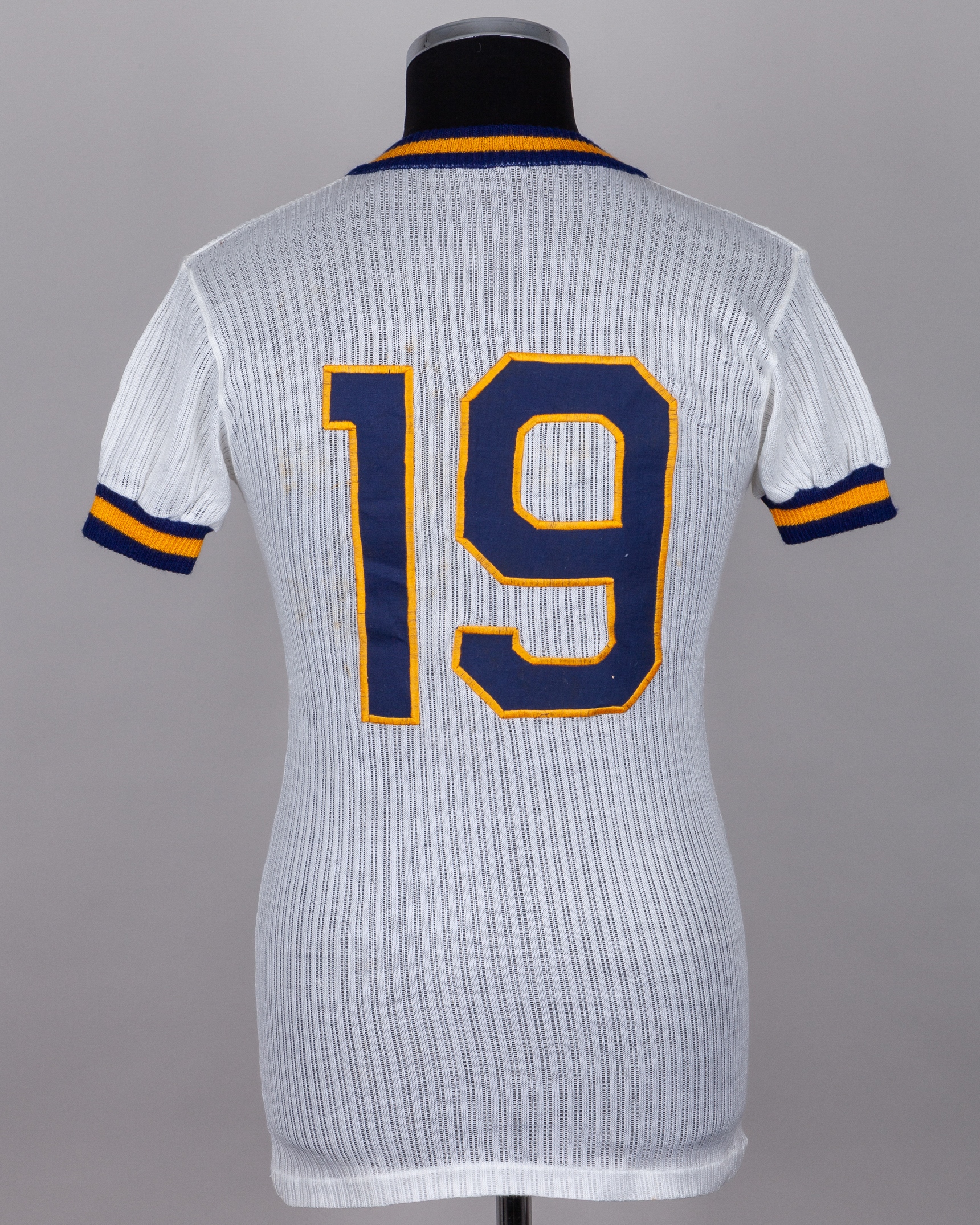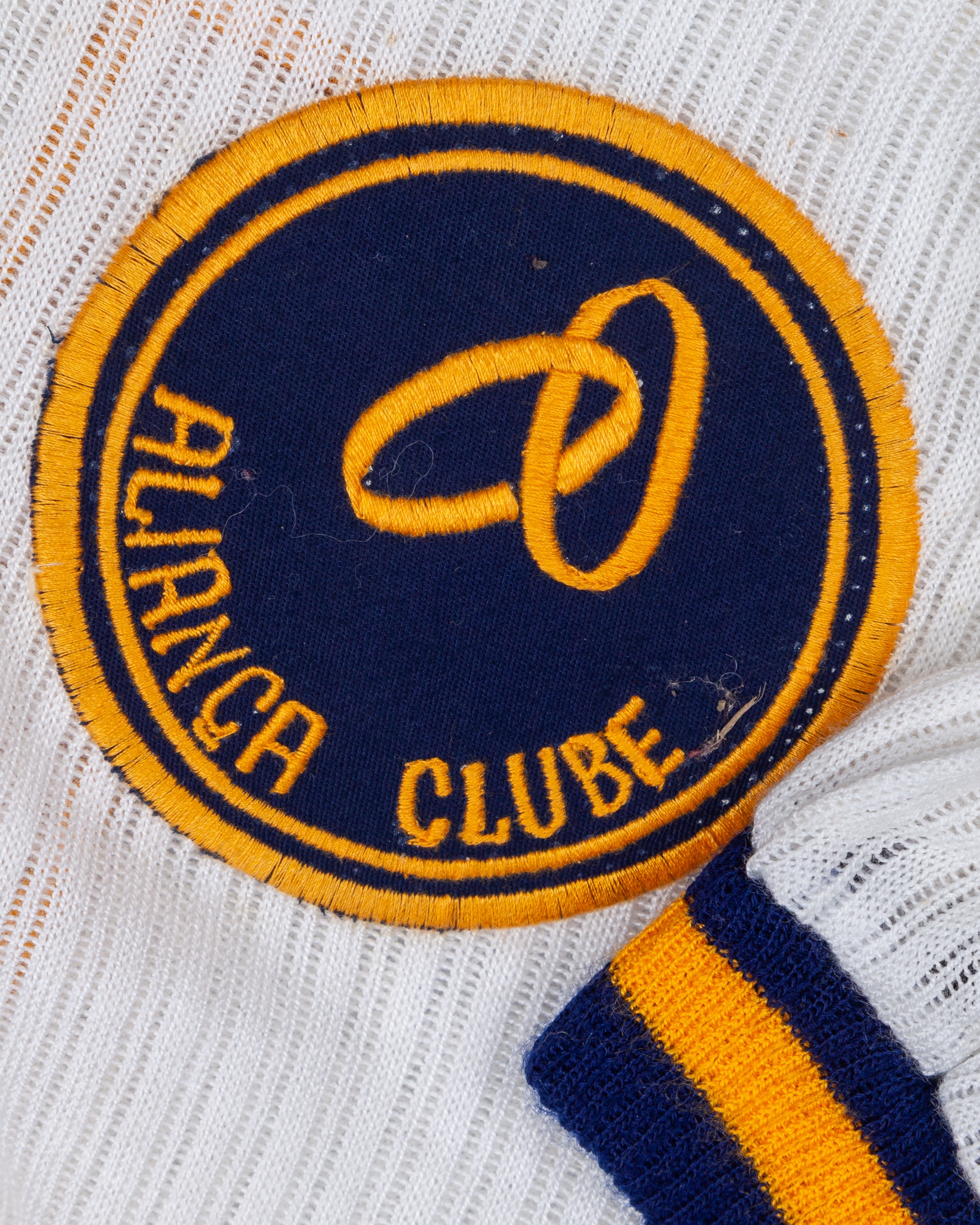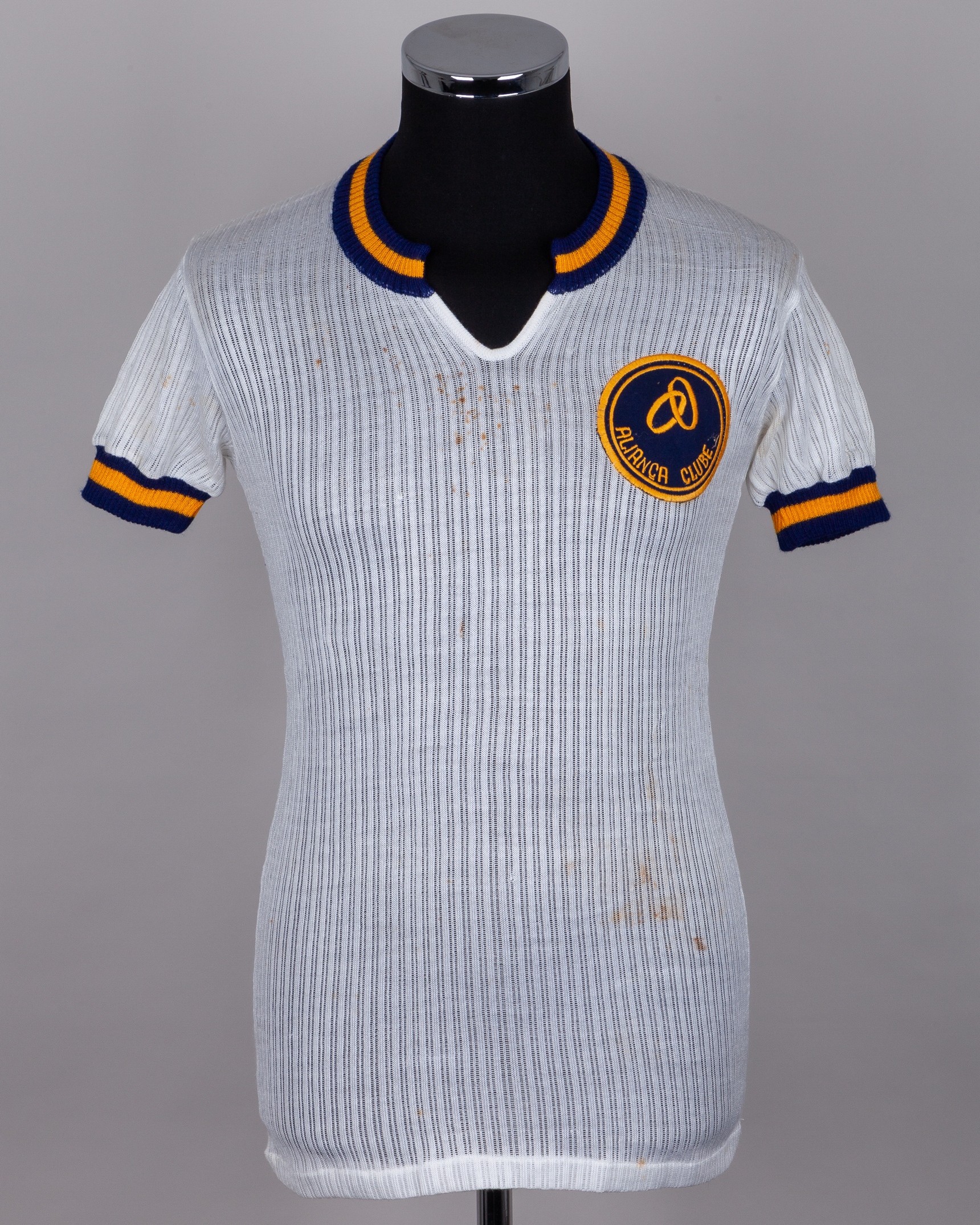 White, blue and yellow No.19 Aliancia Clube short-sleeved shirt, c.1970s