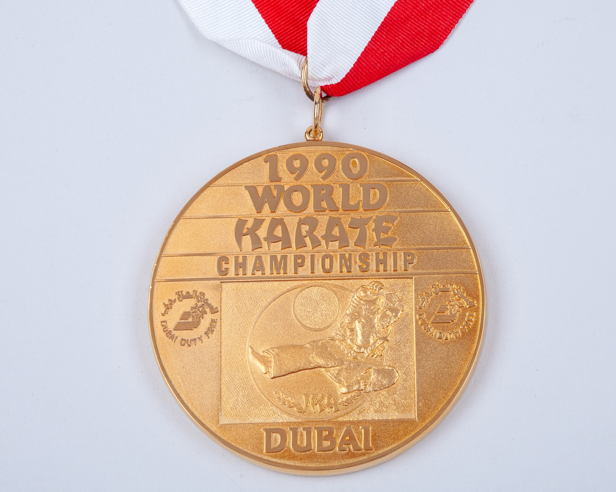 Large yellow-metal 1990 World Karate Championship medal