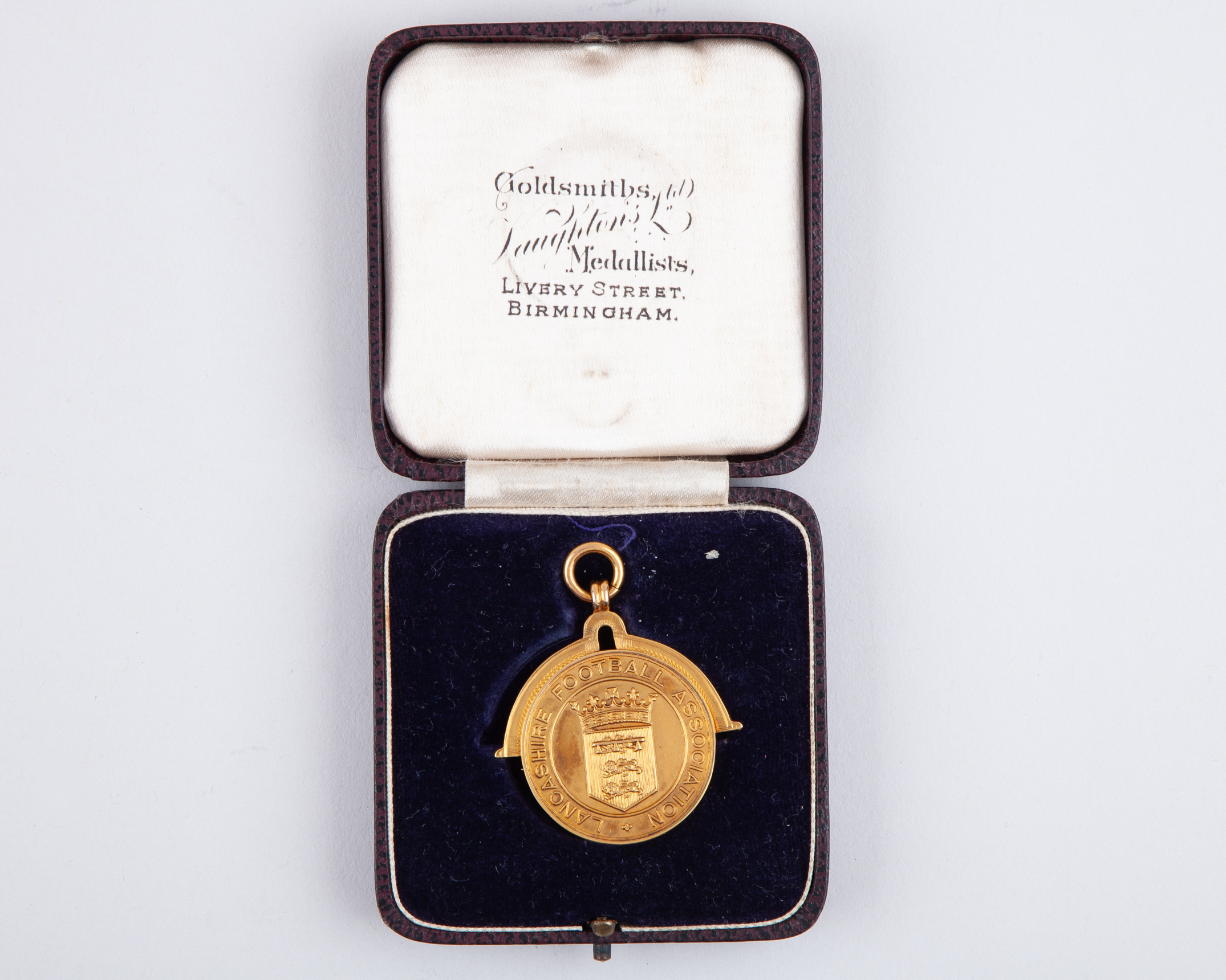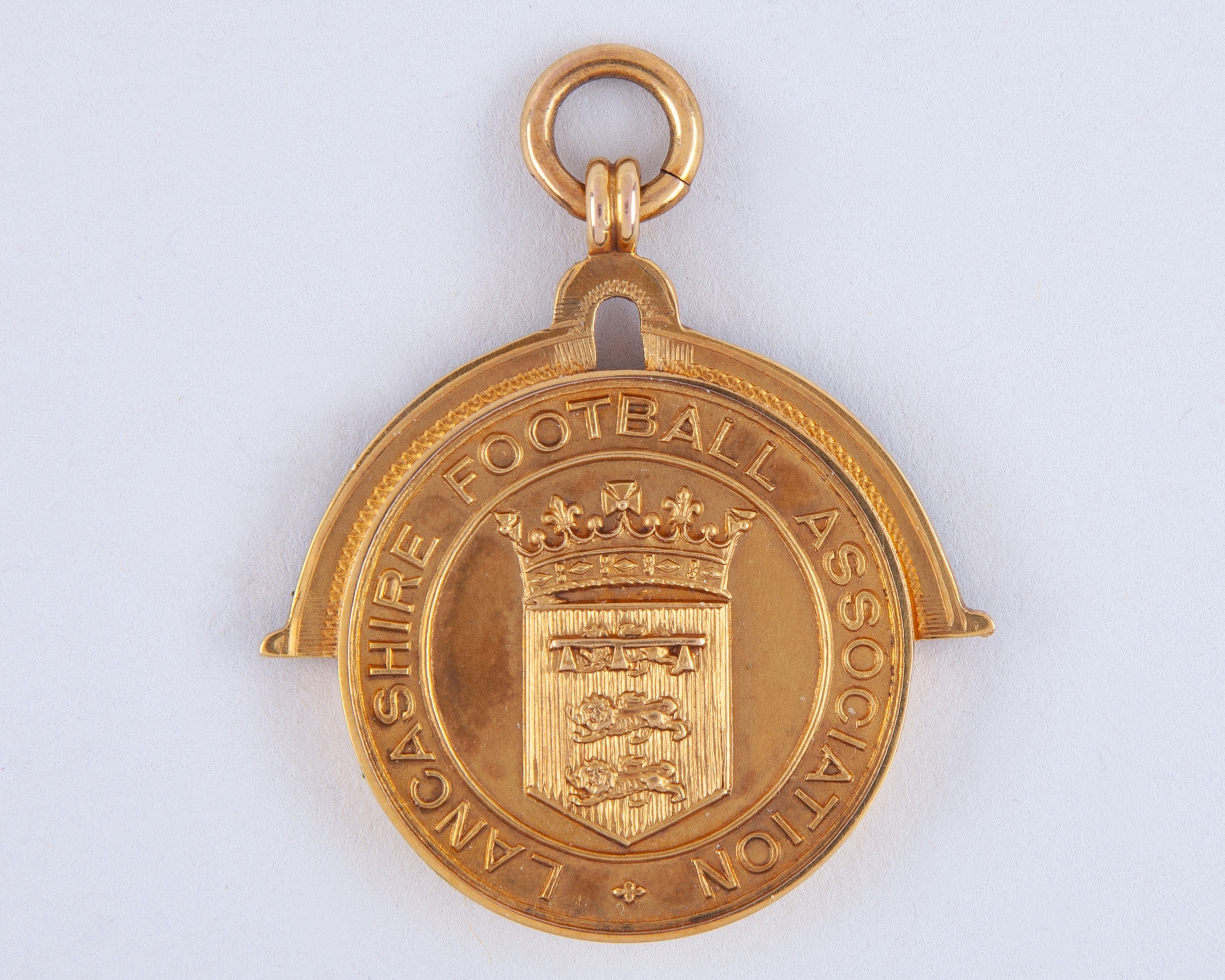 Jack Rowley 9ct gold Lancashire Football Association Winners medal, 1937-38