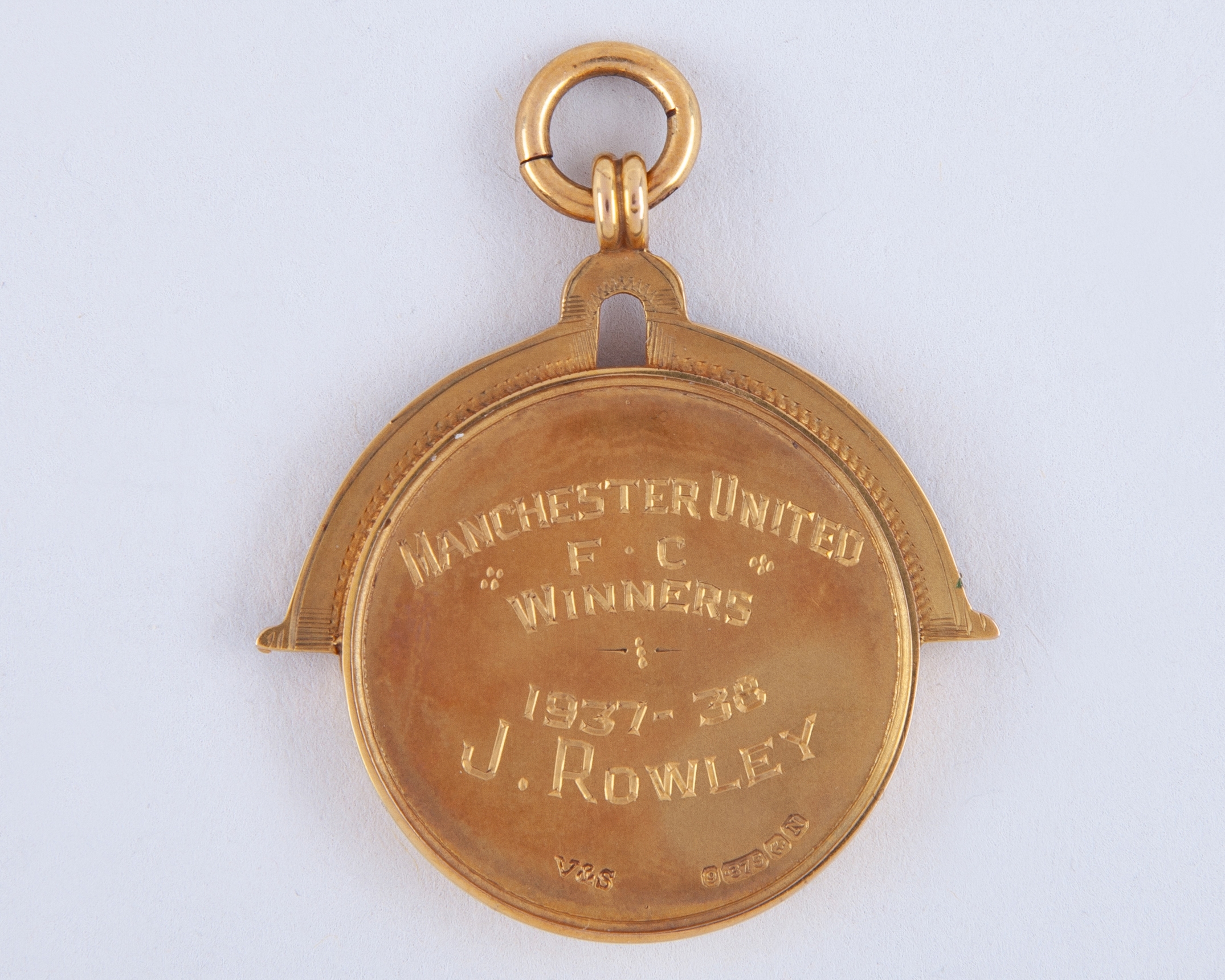 Jack Rowley 9ct gold Lancashire Football Association Winners medal, 1937-38, the obverse inscribed LANCASHIRE FOOTBALL ASSOCIATION, the reverse inscribed MANCHESTER UNITED F.C. WINNERS, 1937-38 J. ROWLEY, in original fitted case, in original fitted case