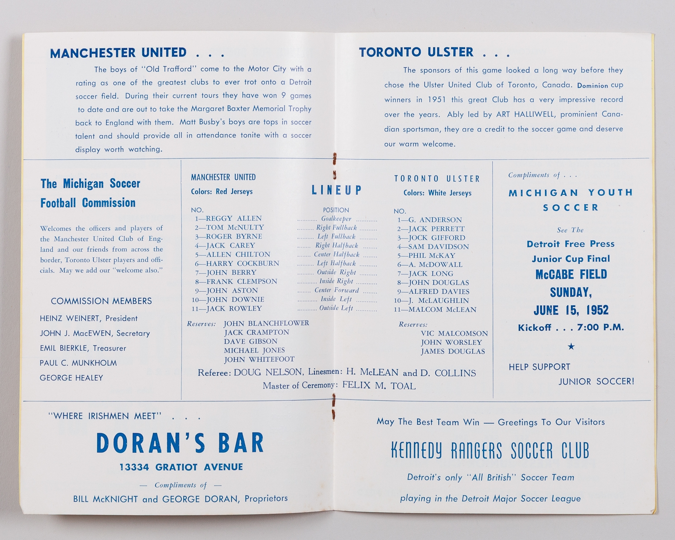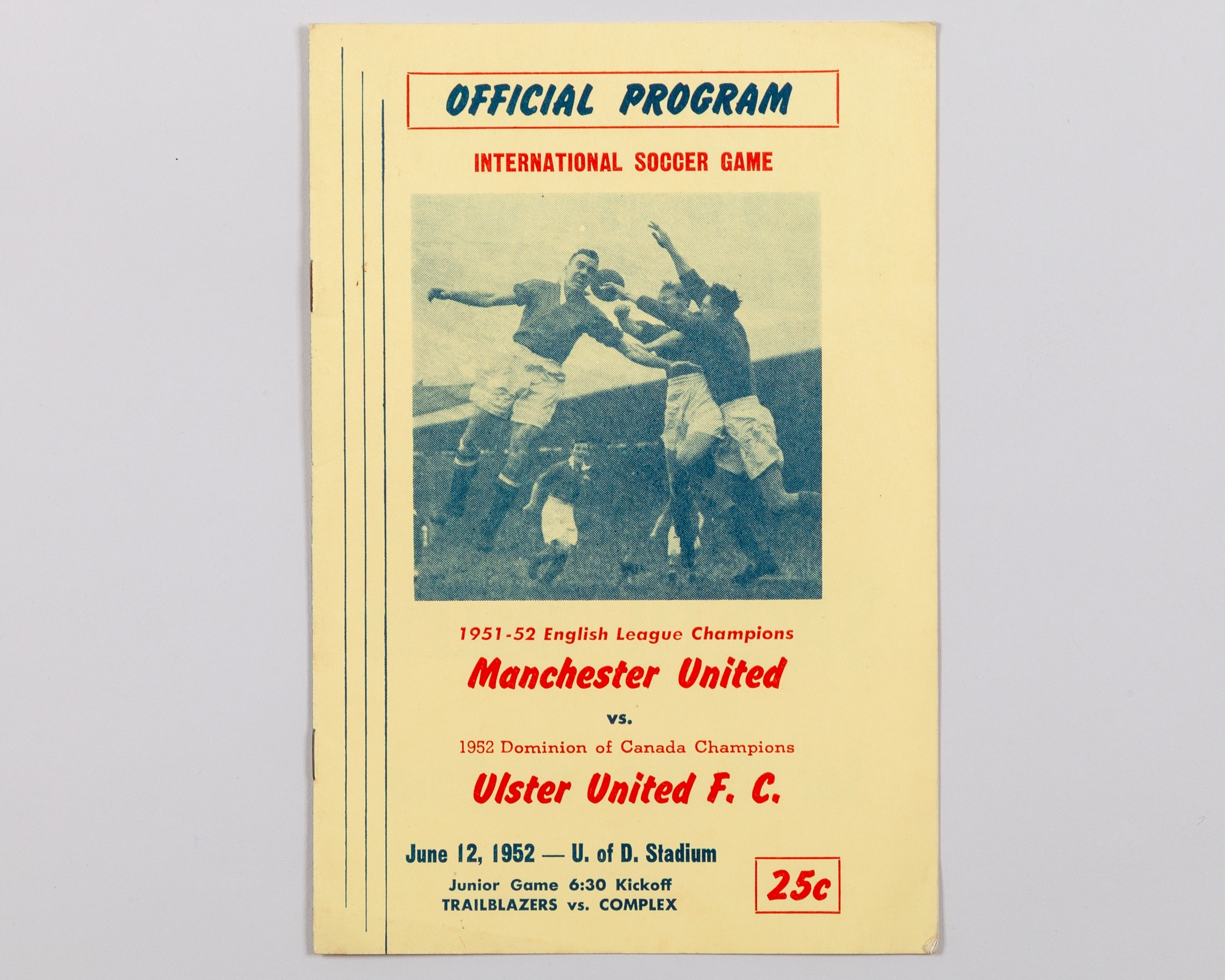 Jack Rowley scarce Ulster United v. Manchester United Tour Match programme, 12th June 1952 played in Detroit