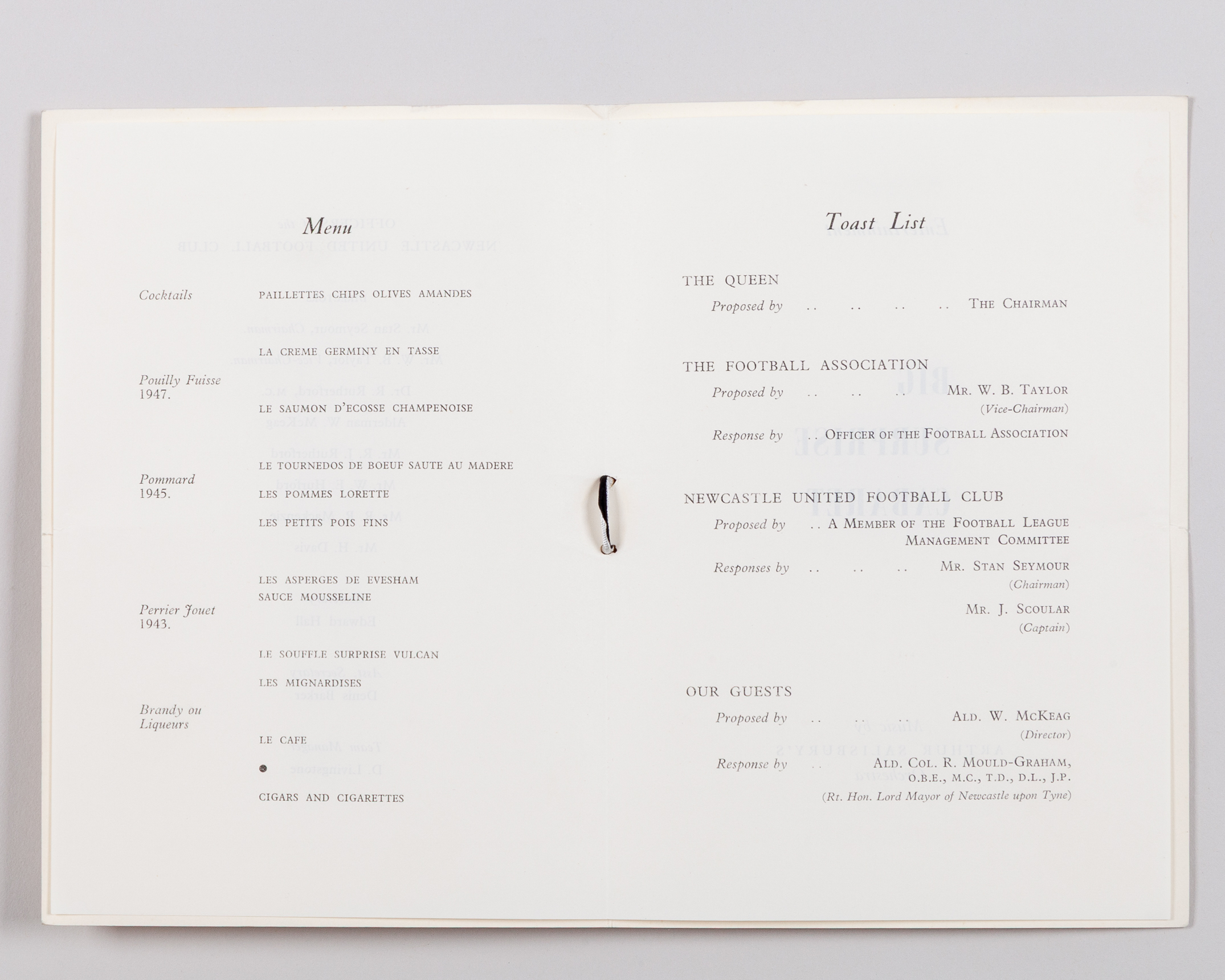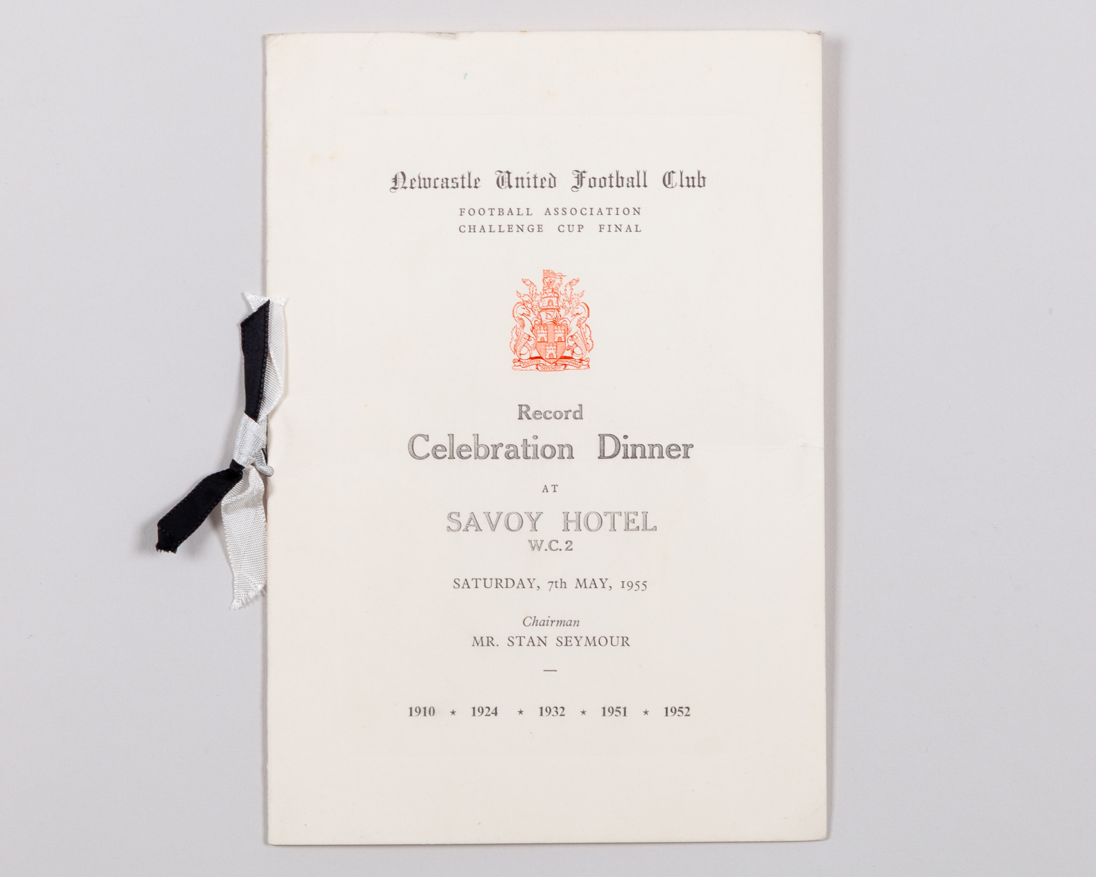 Jack Rowley a Newcastle United 1955 F.A.Cup celebration menu, held at the Savoy Hotel, 7th May 1955