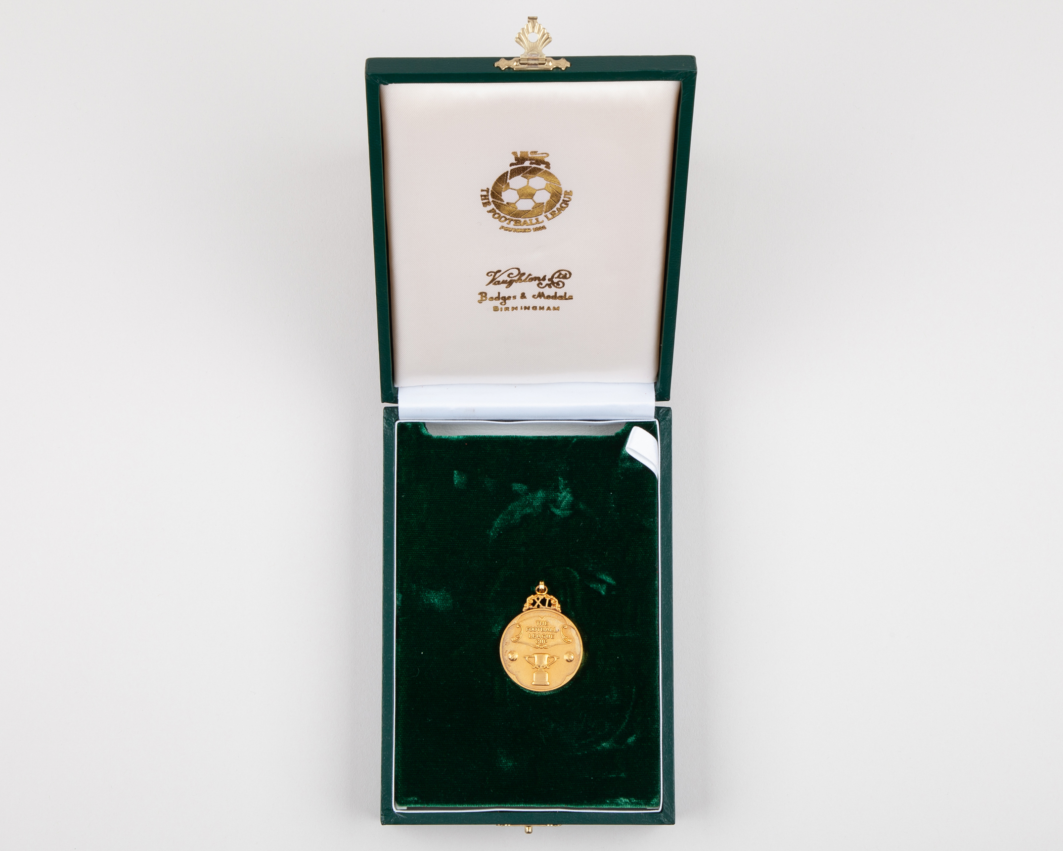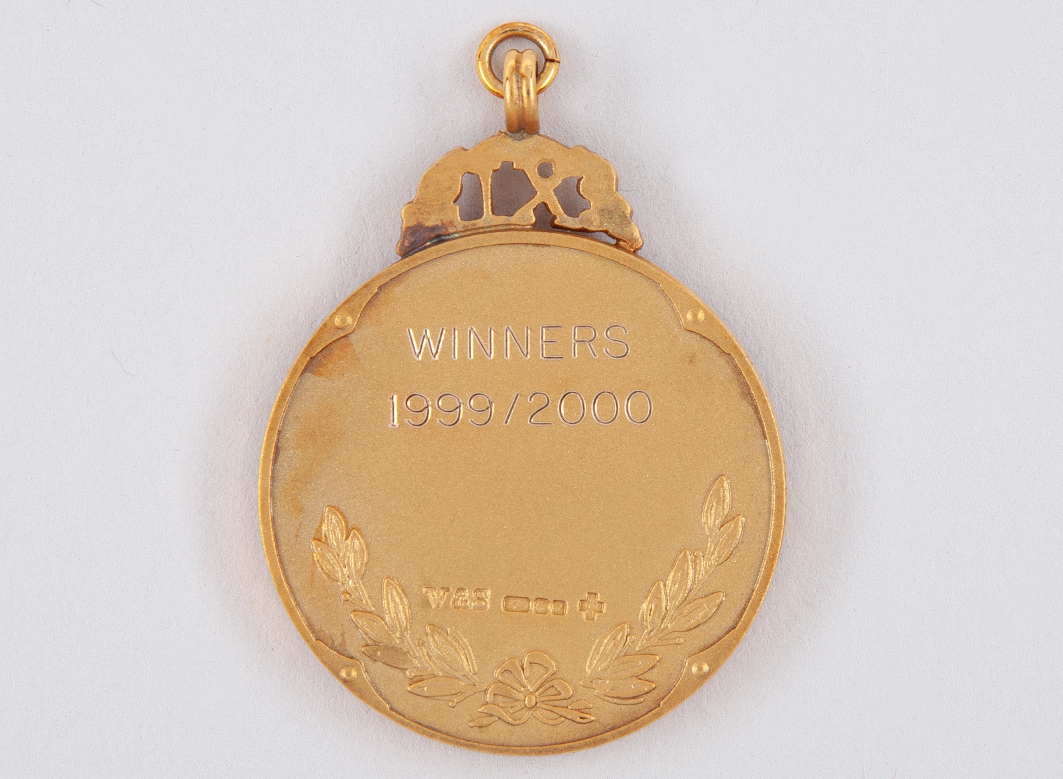 Frank Sinclair 9ct gold Leicester City v. Tranmere Rovers League Cup Final Winners, 2000, the obverse inscribed THE FOOTBALL LEAGUE CUP, the reverse inscribed WINNERS 1999/2000, in original case