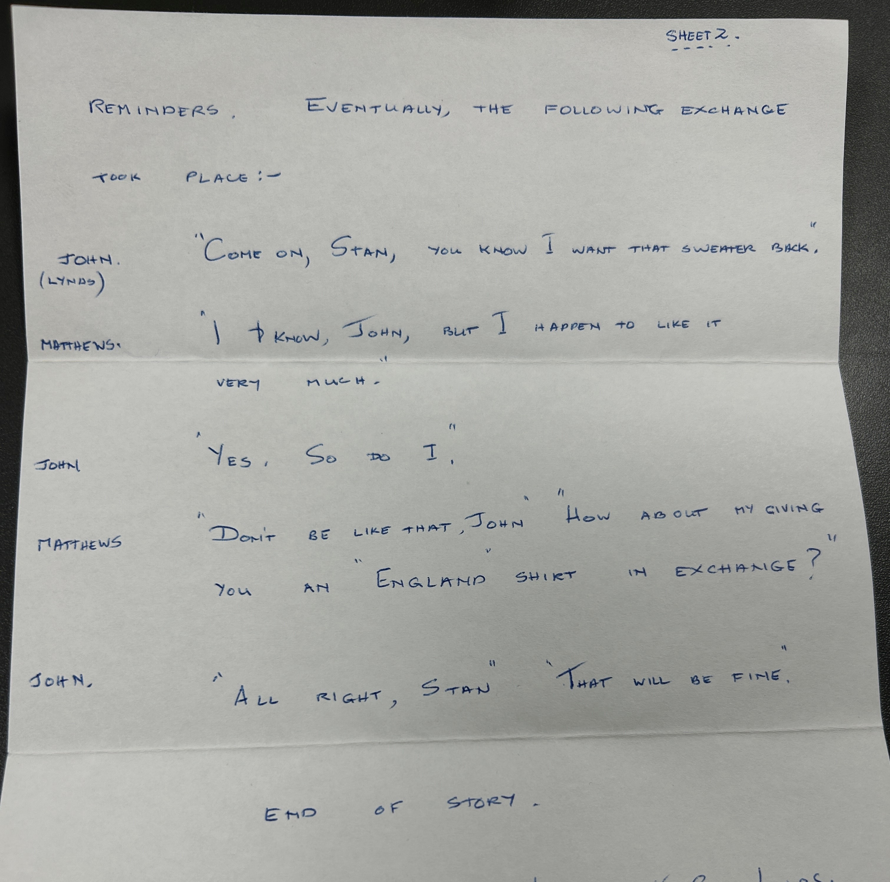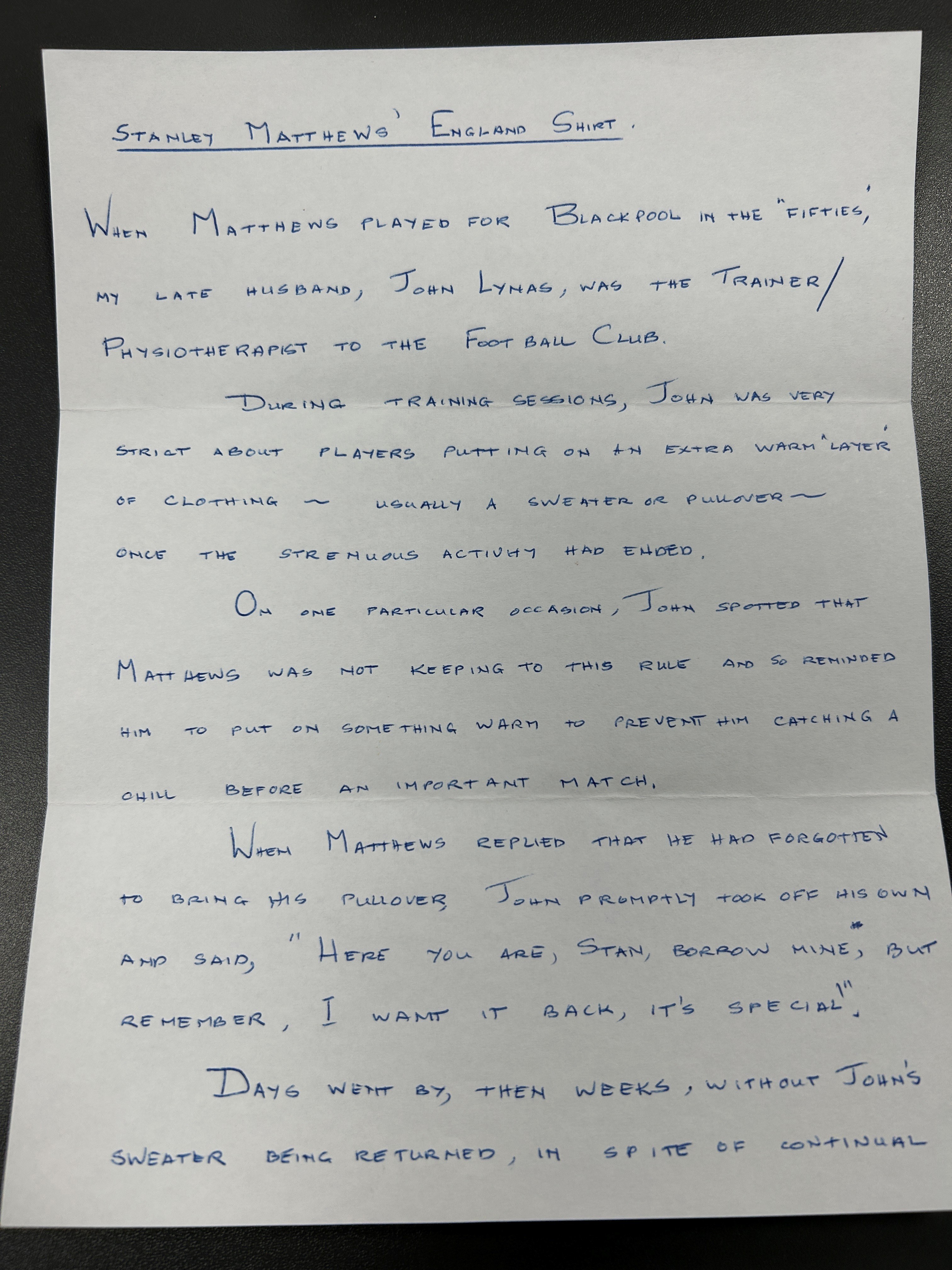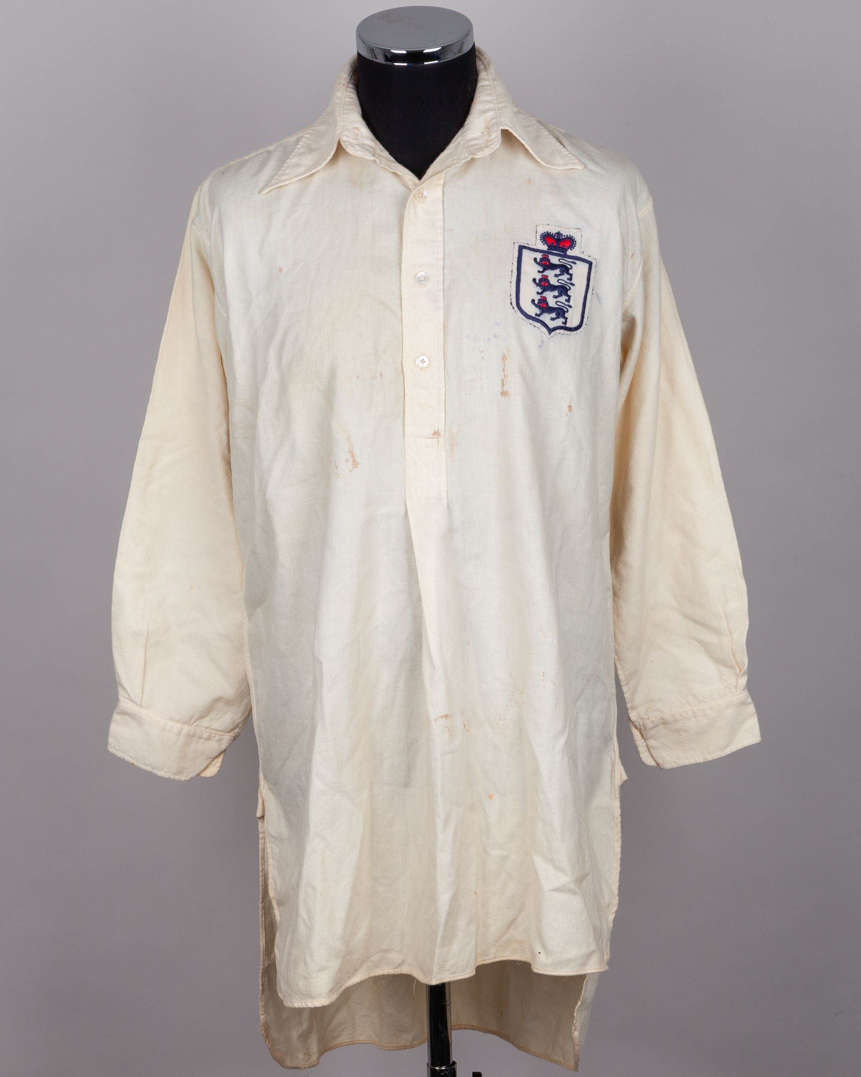 Stanley Matthews white No.7 England long-sleeved shirt, 1940s